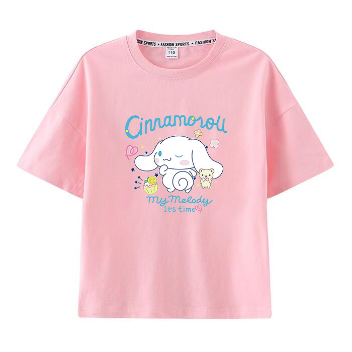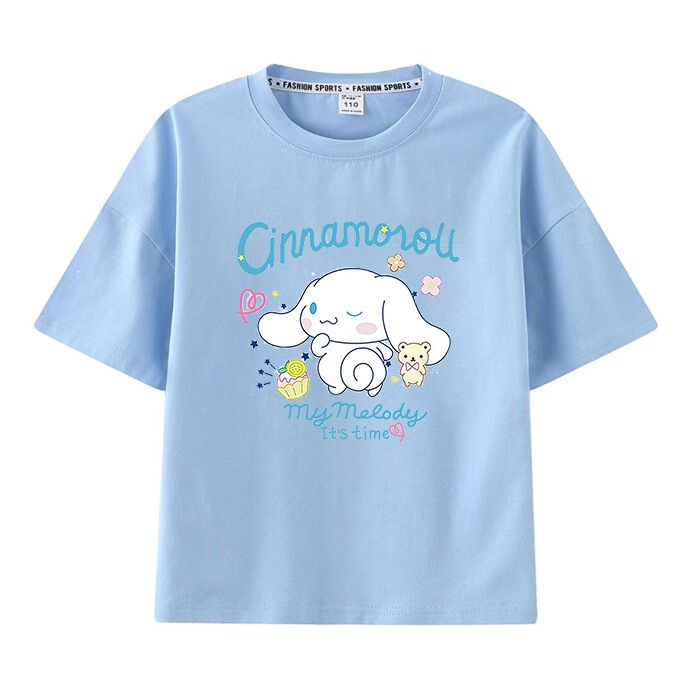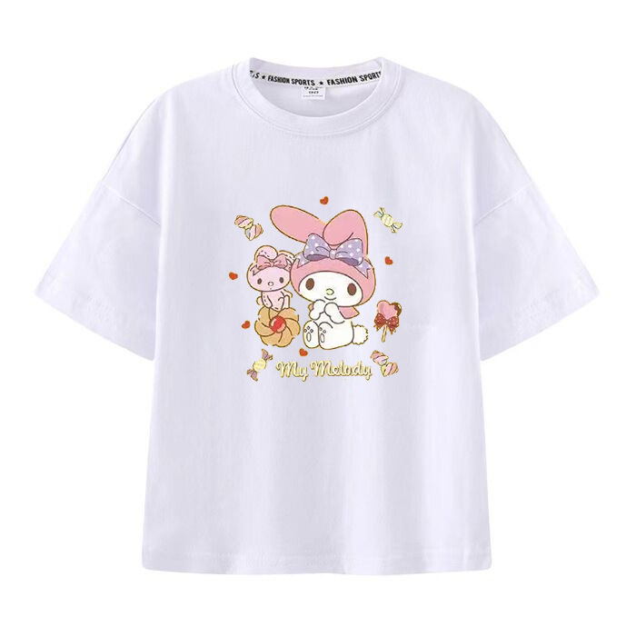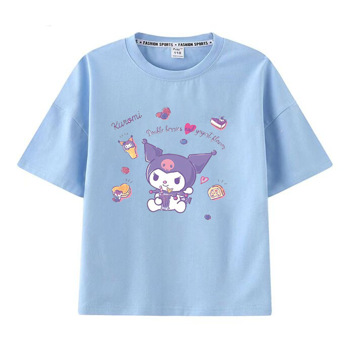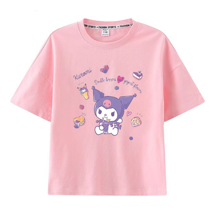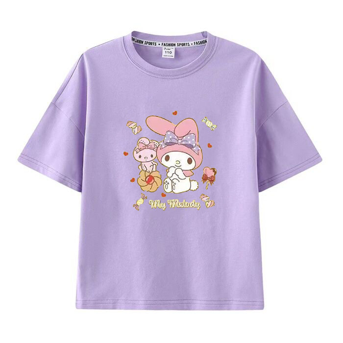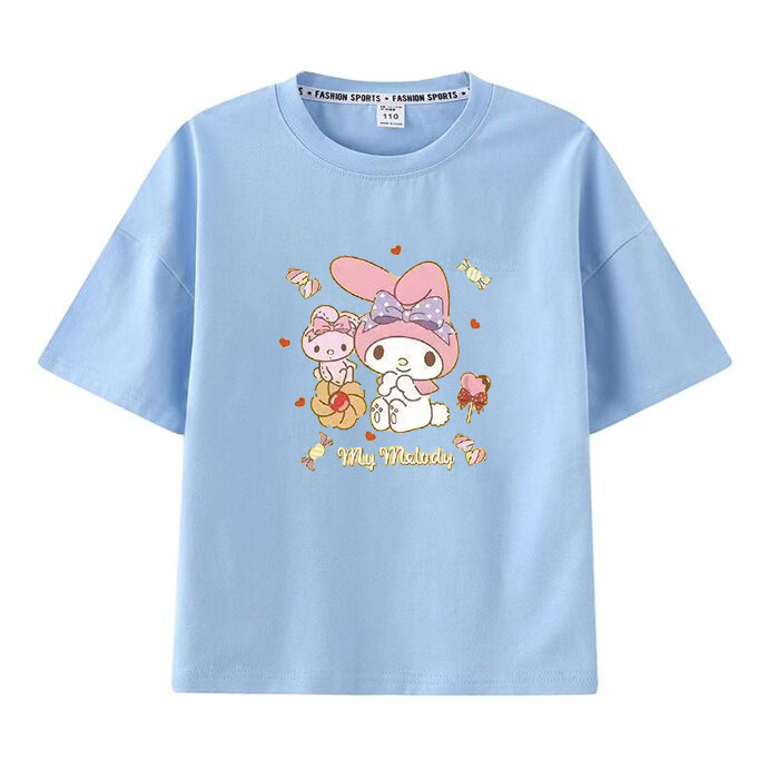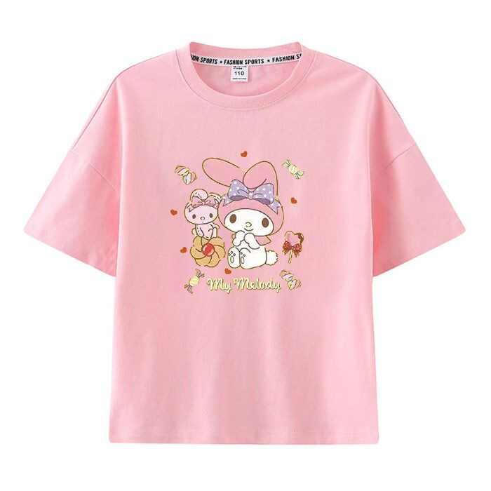 멜로디 쿠로미 소녀 반팔 티셔츠 여름 새 만화 공동 브랜드 달콤한 캐주얼 순수 코튼 대외 무역 아동 의류