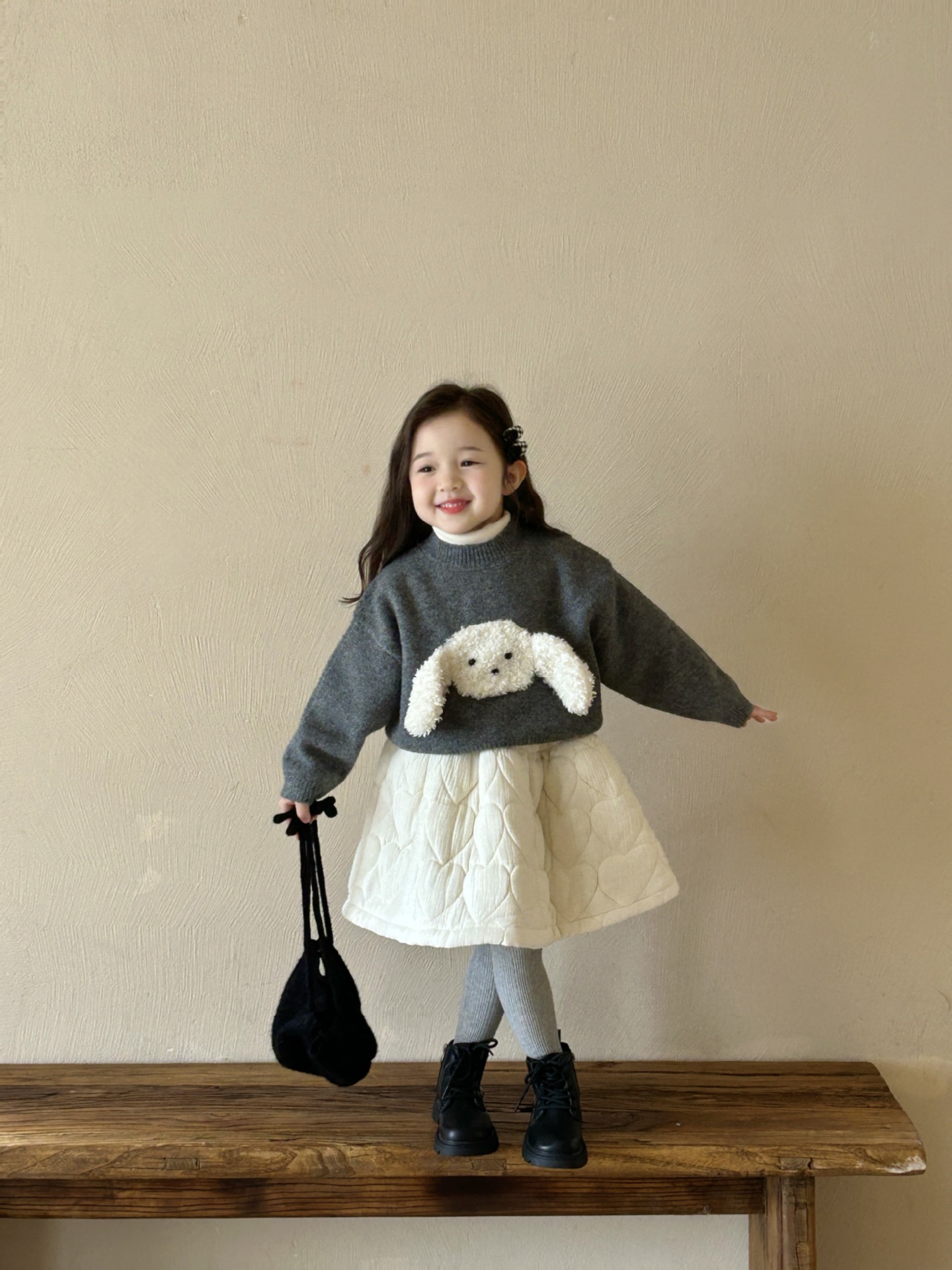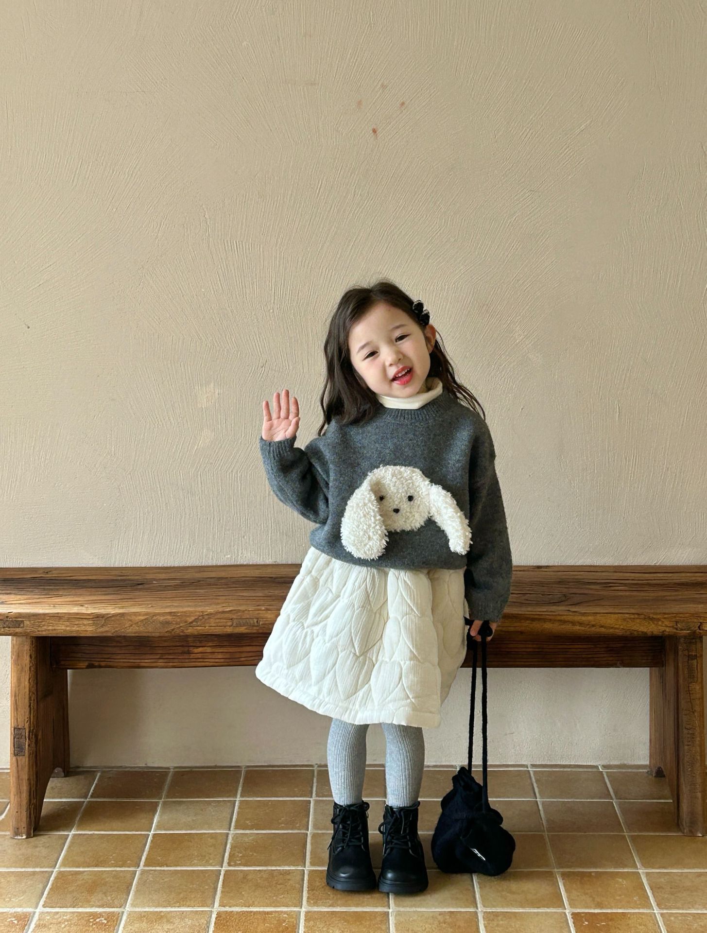 2024 여자 가을 겨울 폭발 한국 스웨터 소녀 귀여운 캐주얼 패션 어린이 짧은 토끼 스웨터스토어 가기