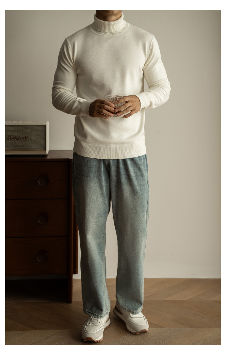 기본형 세탁기 사용 가능 양모 터틀넥 니트 남성용 이너웨어 2025 가을 겨울 신상 보온 스웨터