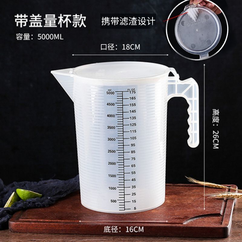 크기 측정 실린더 우유 차 가게 도구 플라스틱 대형 측정 컵 가구 뚜껑 5000 밀리타이드 무료 배송