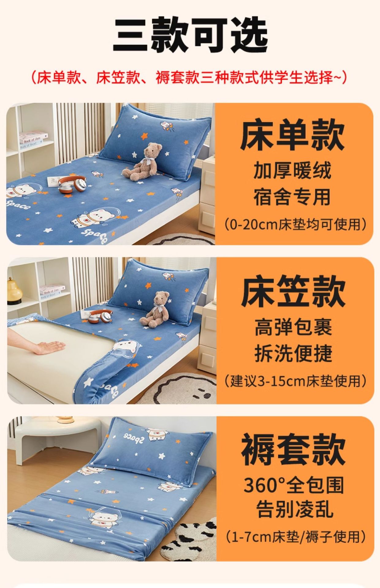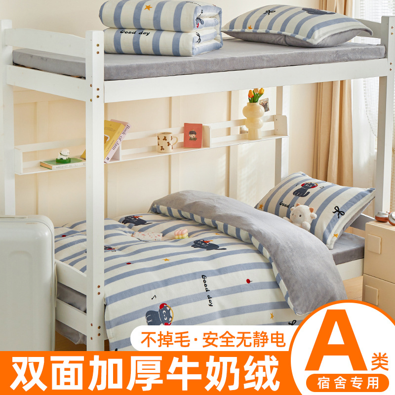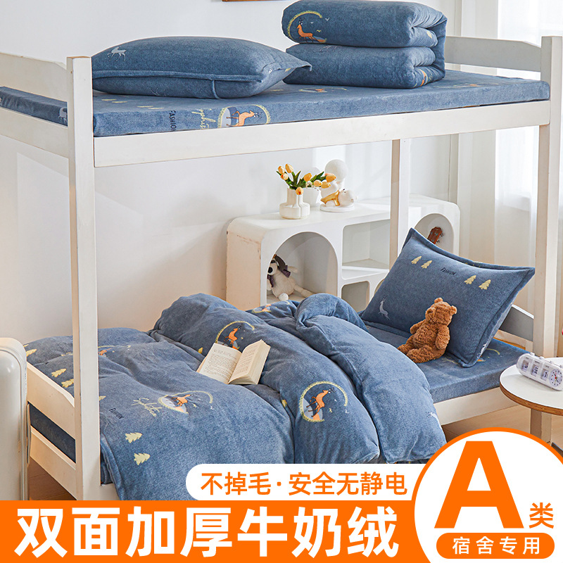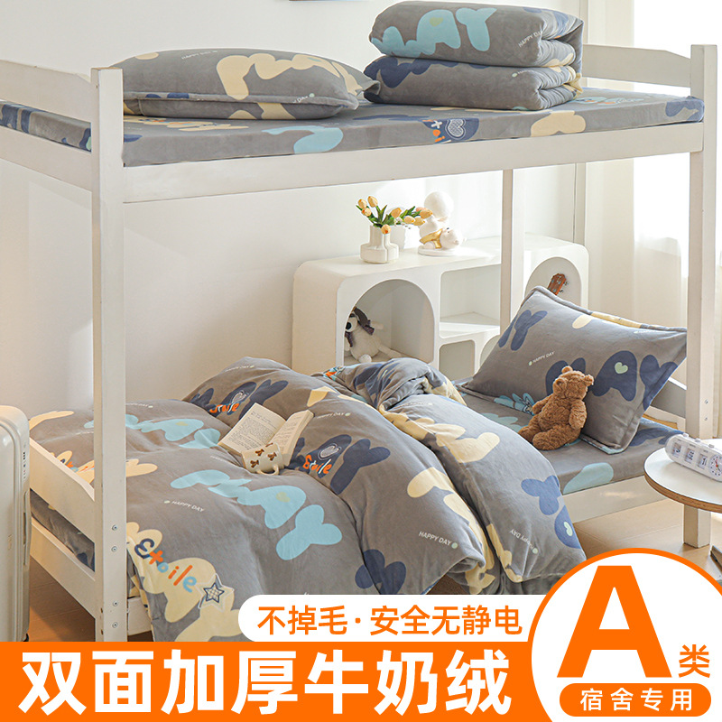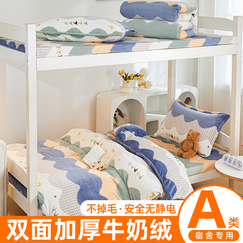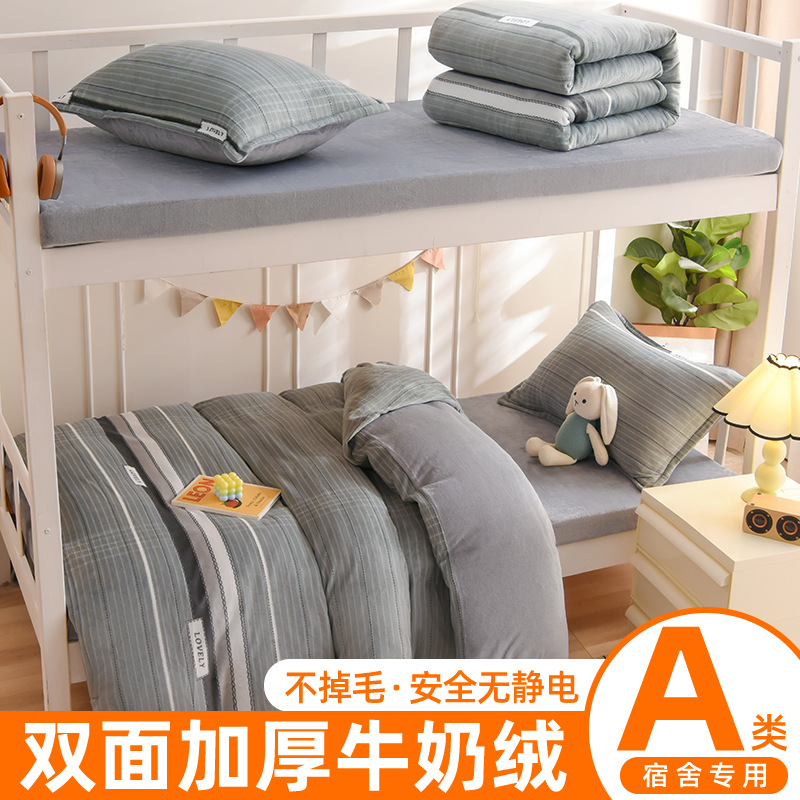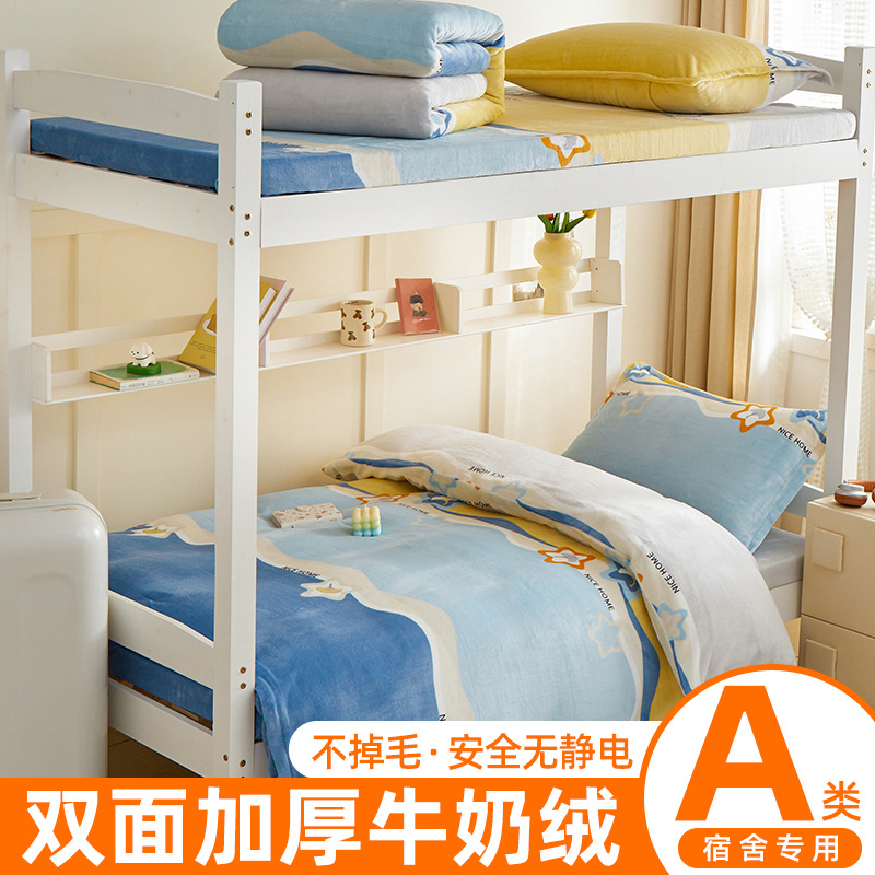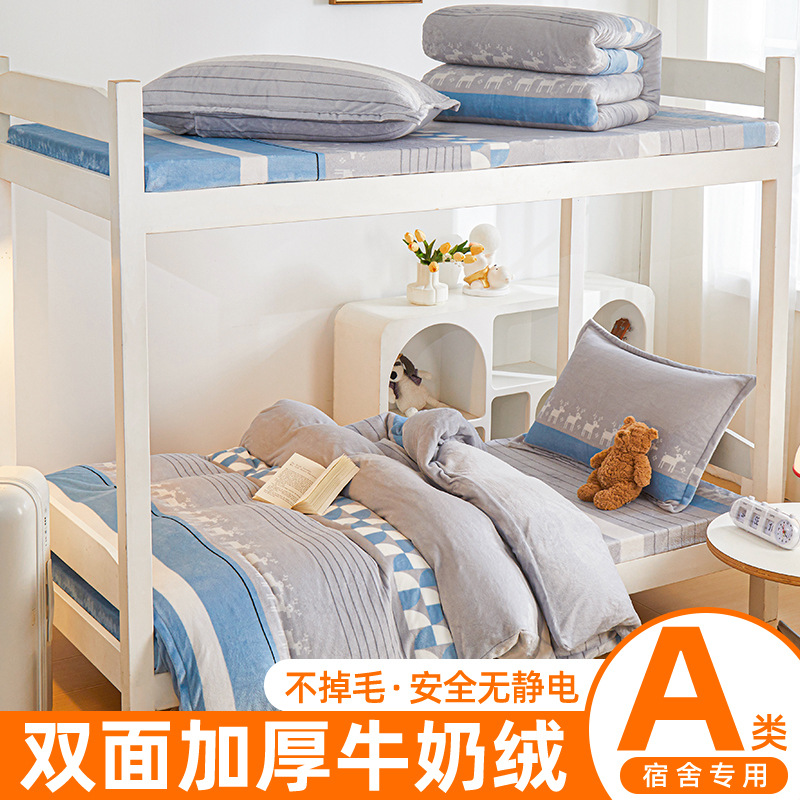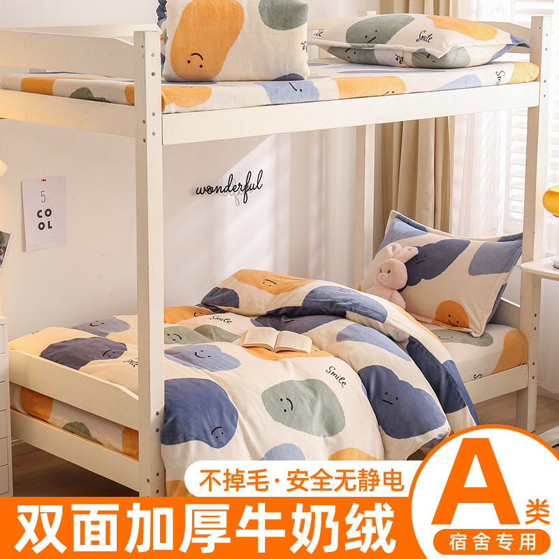 밀크 벨벳 학생 기숙사 침대 3 종 세트 겨울 기모 싱글 침대 시트 퀼트 커버 플랜지 산호 벨벳 가을과 겨울스토어 가기