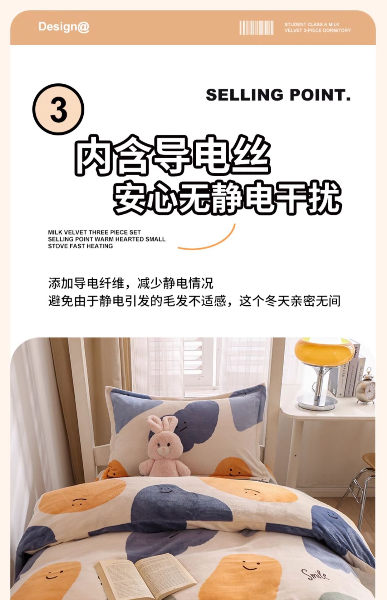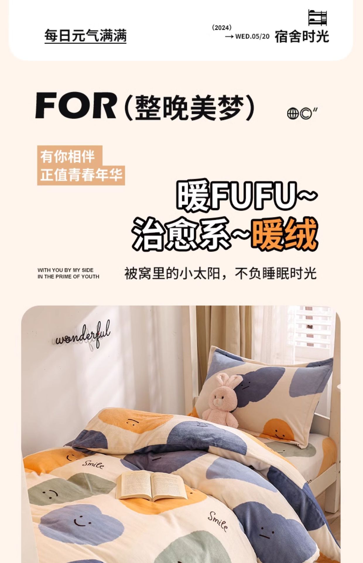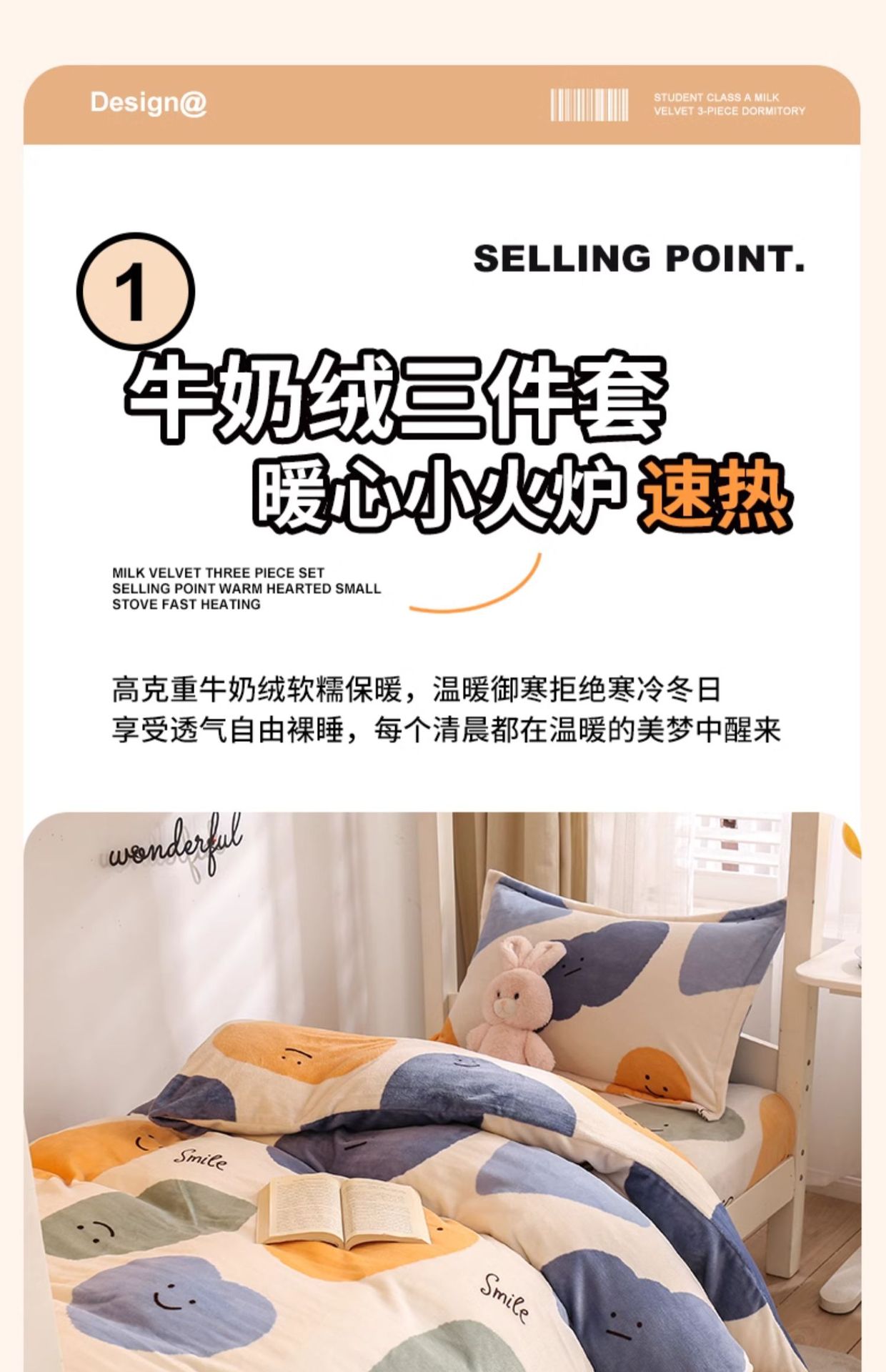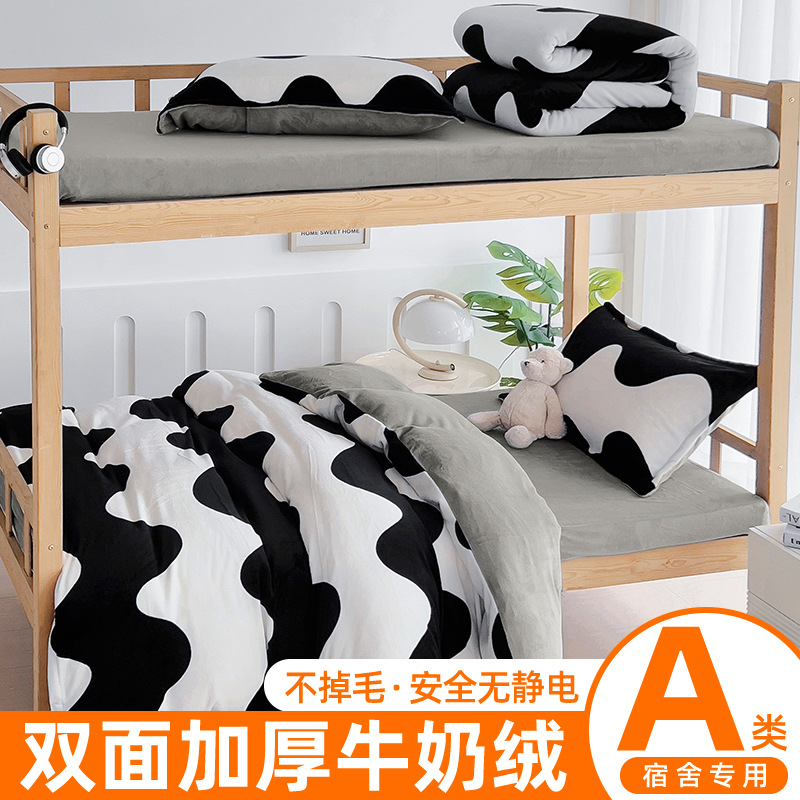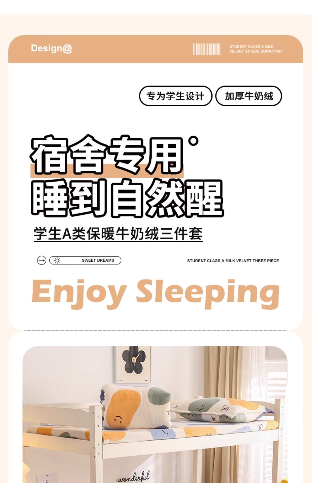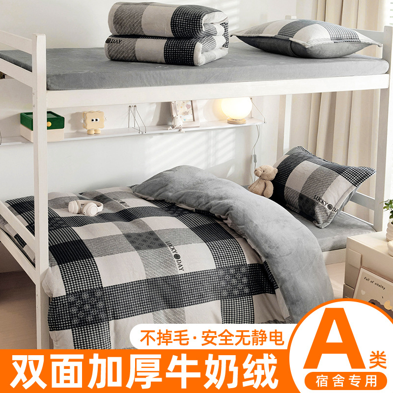 밀크 벨벳 학생 기숙사 침대 3 종 세트 겨울 기모 싱글 침대 시트 퀼트 커버 플랜지 산호 벨벳 가을과 겨울스토어 가기
