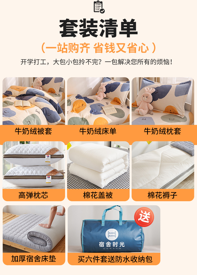 • 시트형 1.2m 침대 6종 세트(3종 세트 + 베개심 + 2.5kg 실크 이불 + 1.5kg 매트리스)