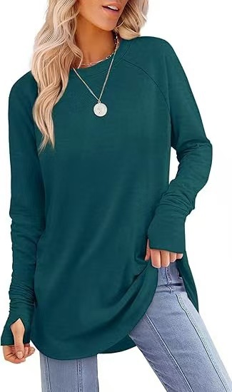 유럽과 미국 여성들을 위한 반팔 원피스, 라운드넥, 솔리드 컬러, 손가락 부분이 분리된 긴팔 상의, 루즈핏, 중간 길이, 화이트, 롱 스커트스토어 가기