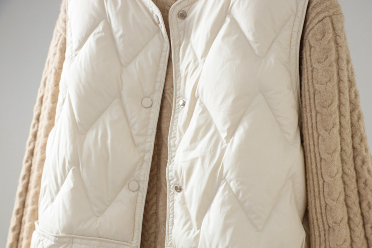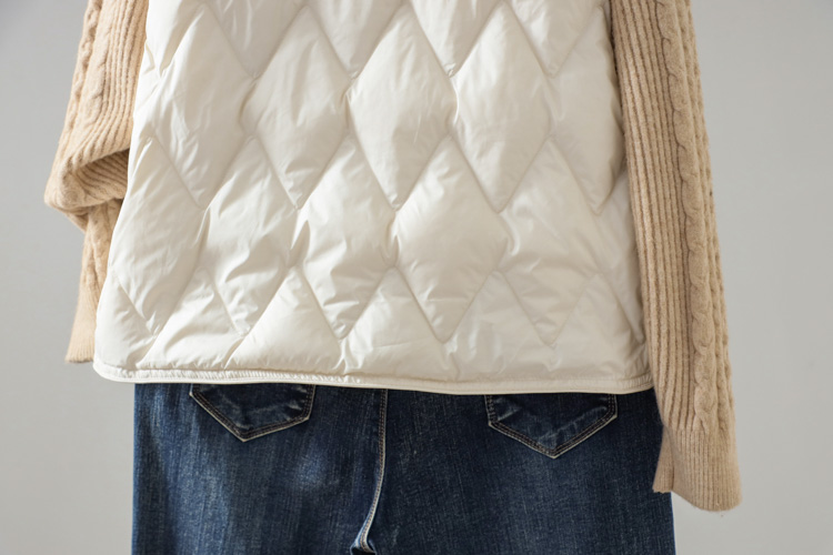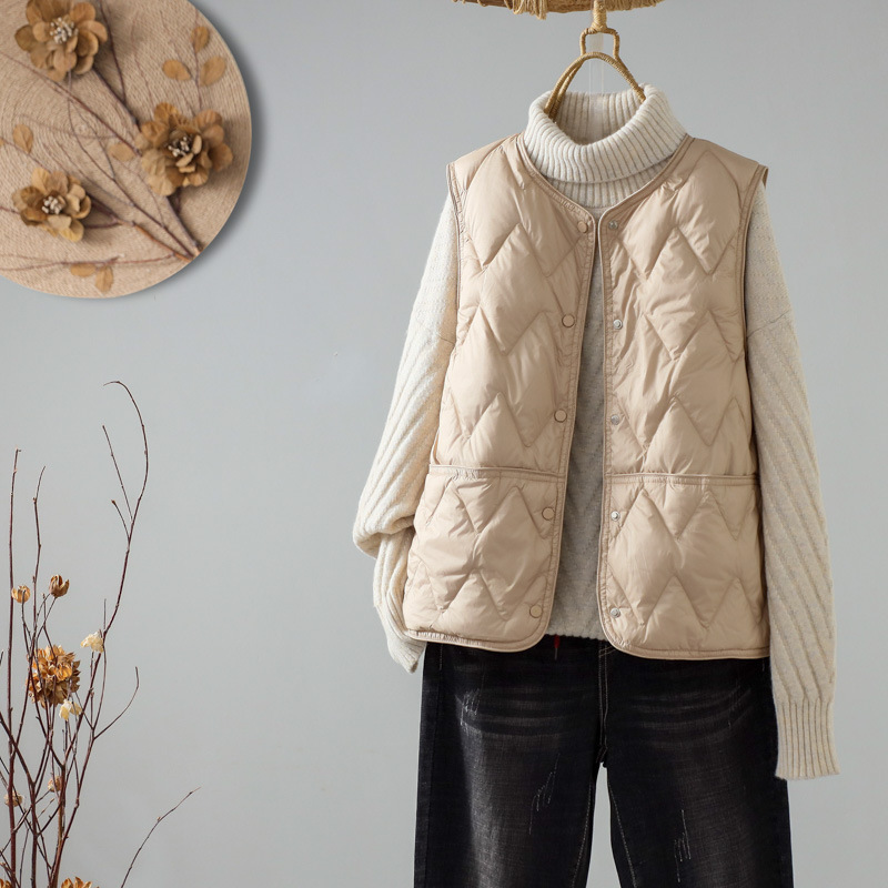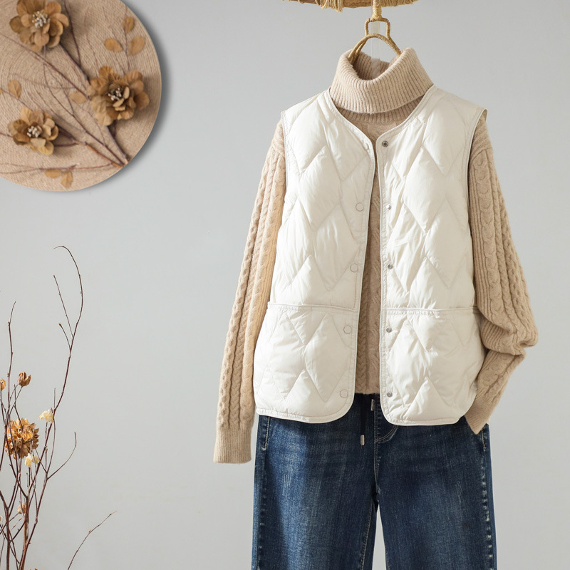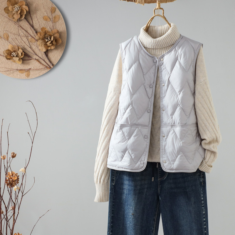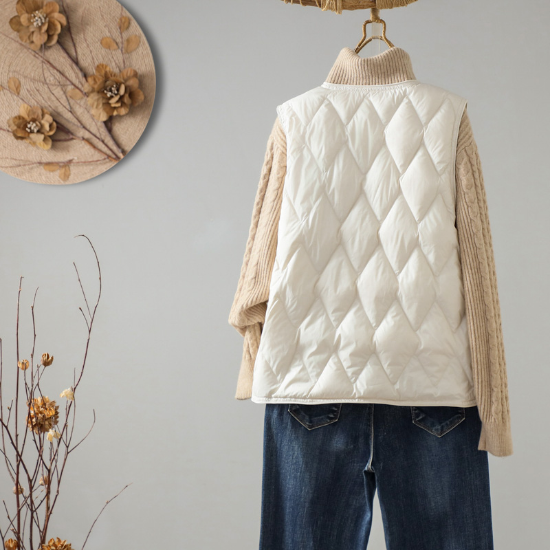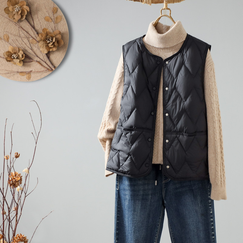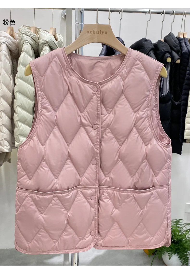 가을과 겨울 새로운 다운 조끼 여자 둥근 목 다이아몬드 간단한 90 흰 오리 따뜻한 조끼 착용스토어 가기
