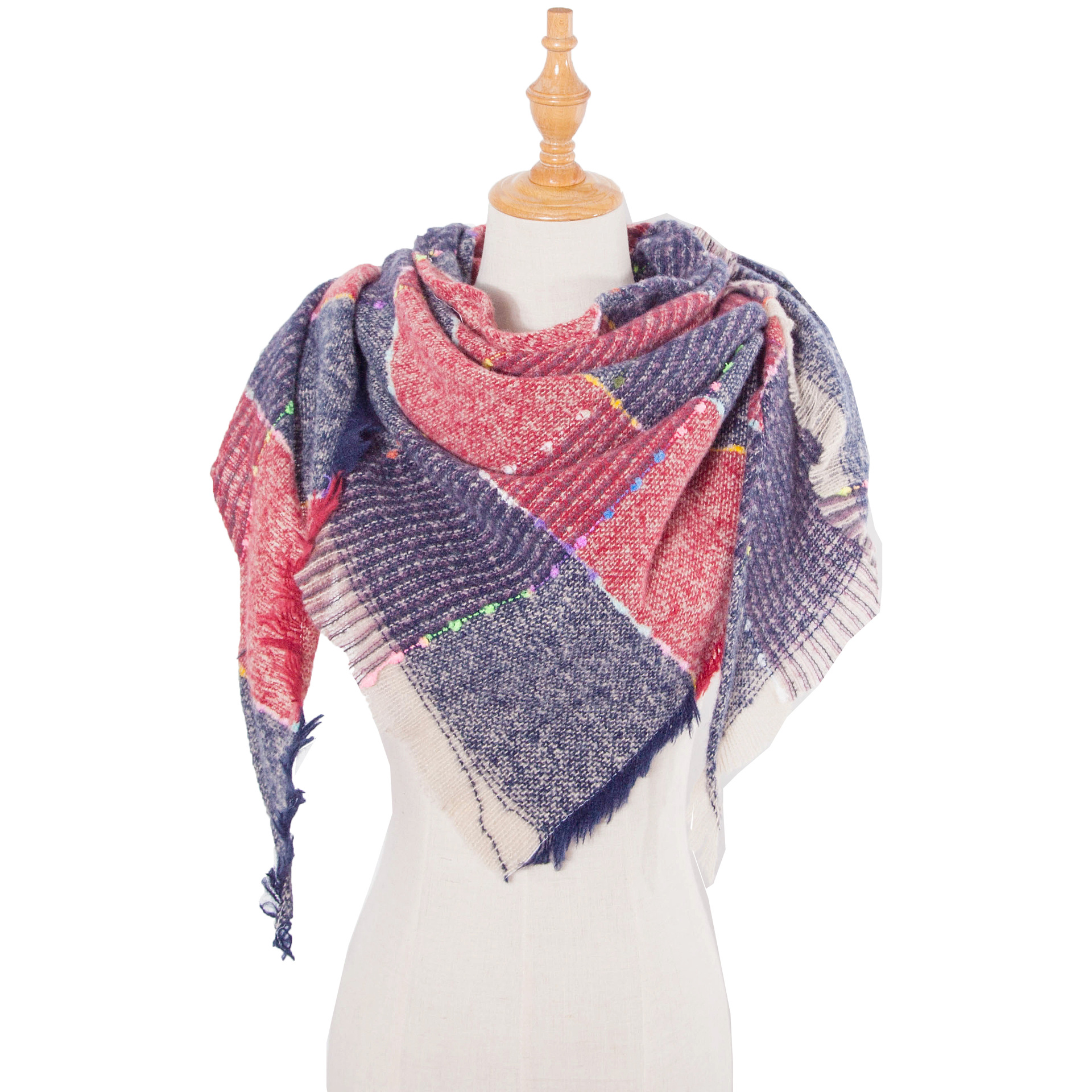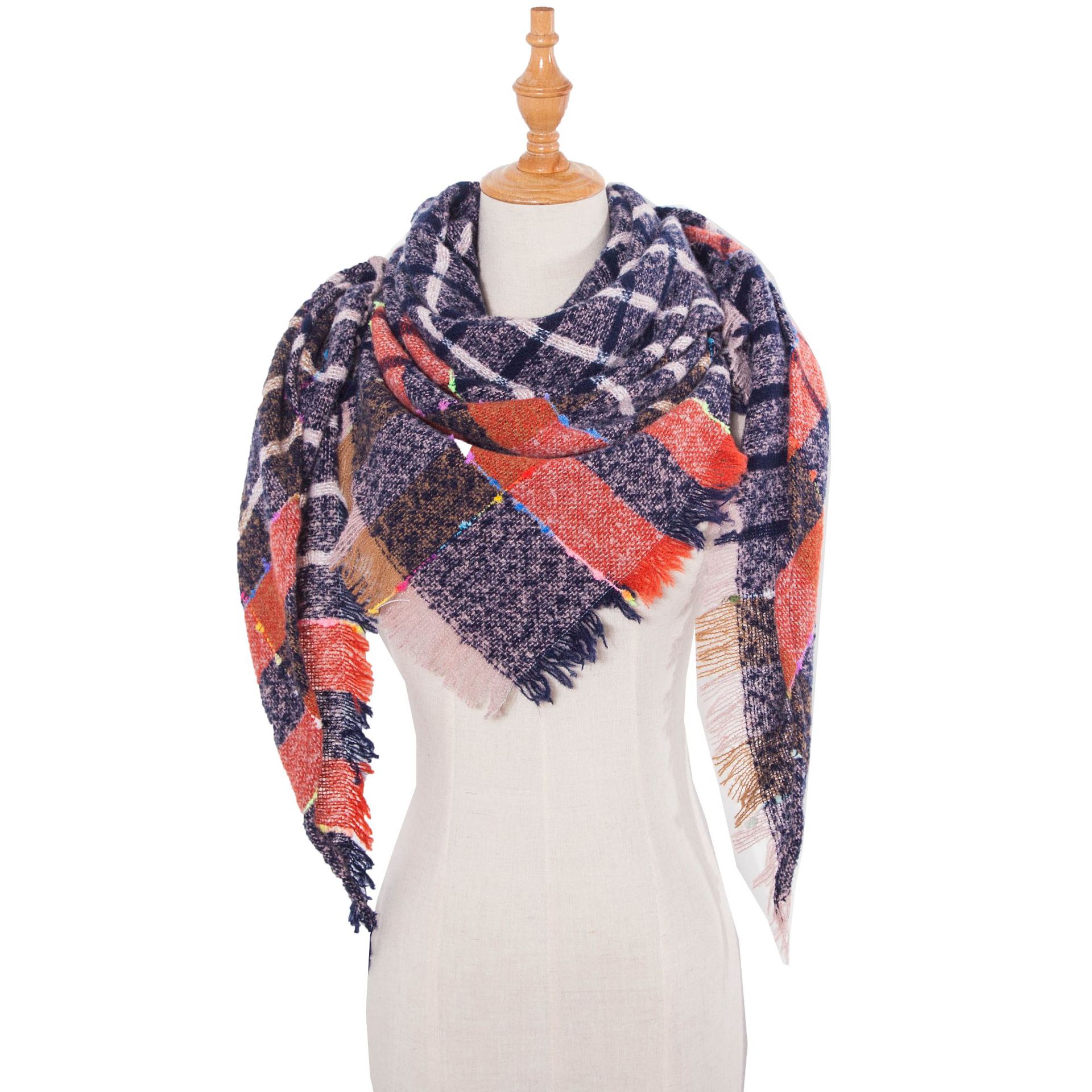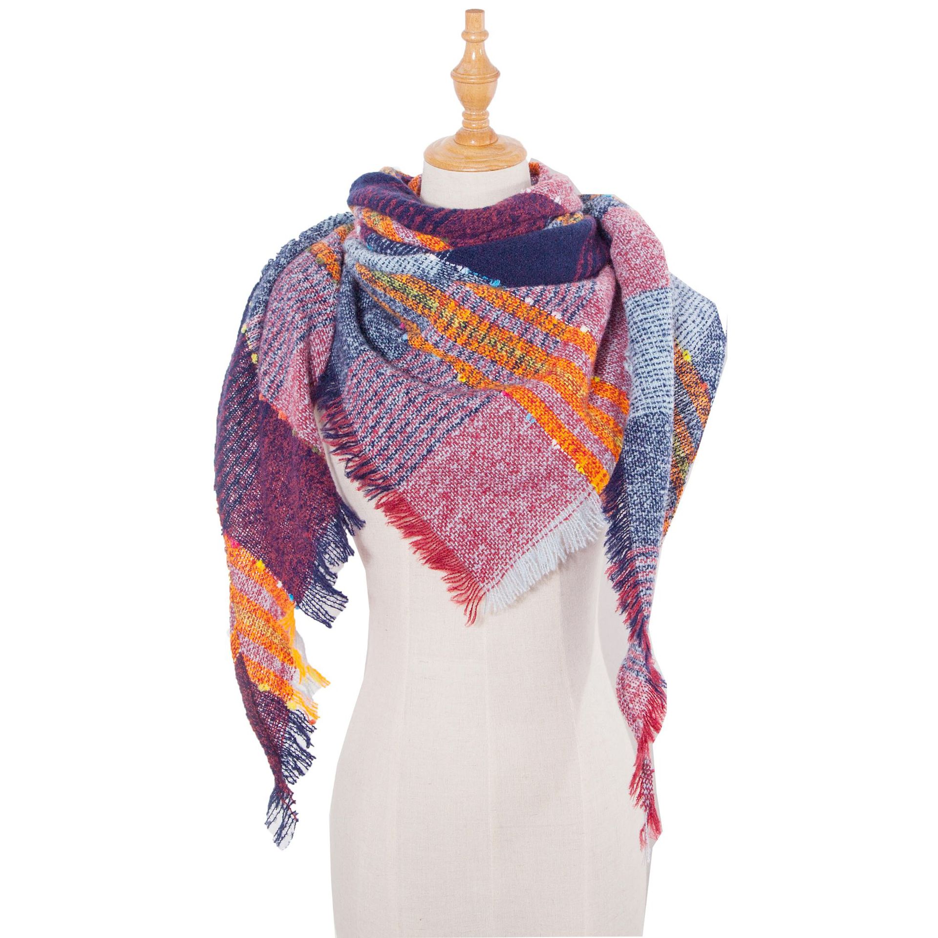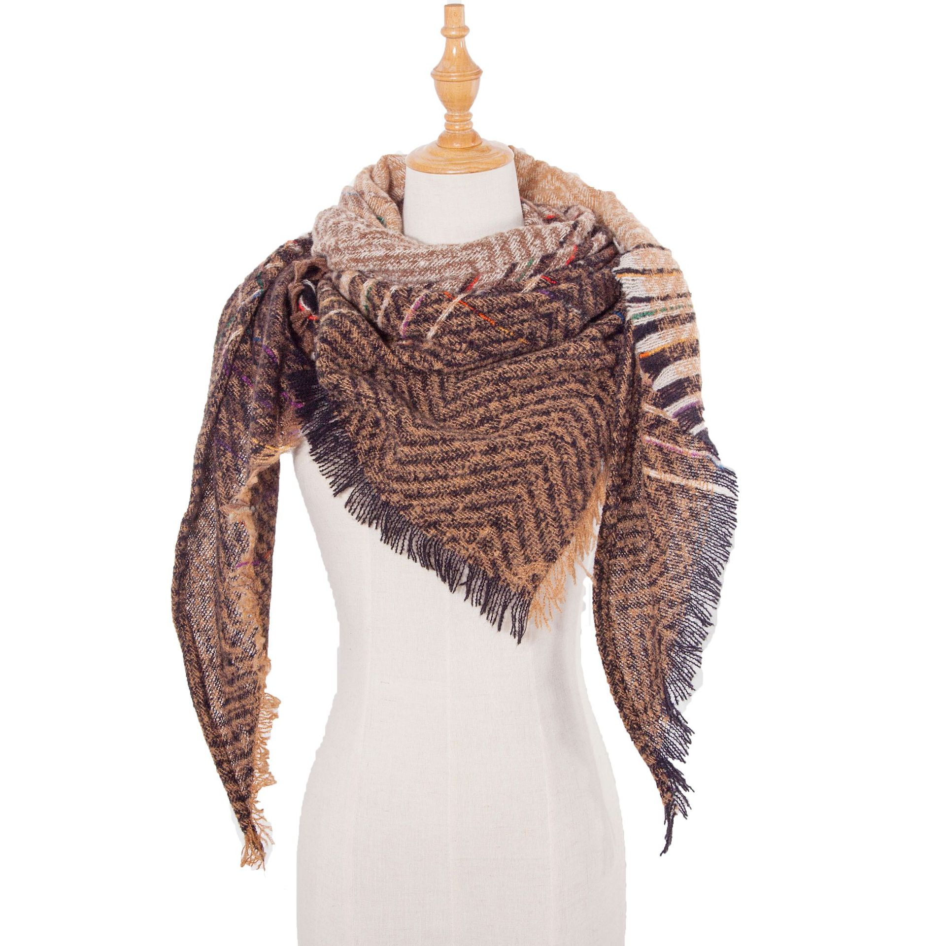 아마존 인기 유럽 및 미국 스타일 봄, 가을, 겨울 여성용 원사 혼방 폴리에스터 플로럴 패턴 삼각 숄 스카프/넥워머 제조업체스토어 가기