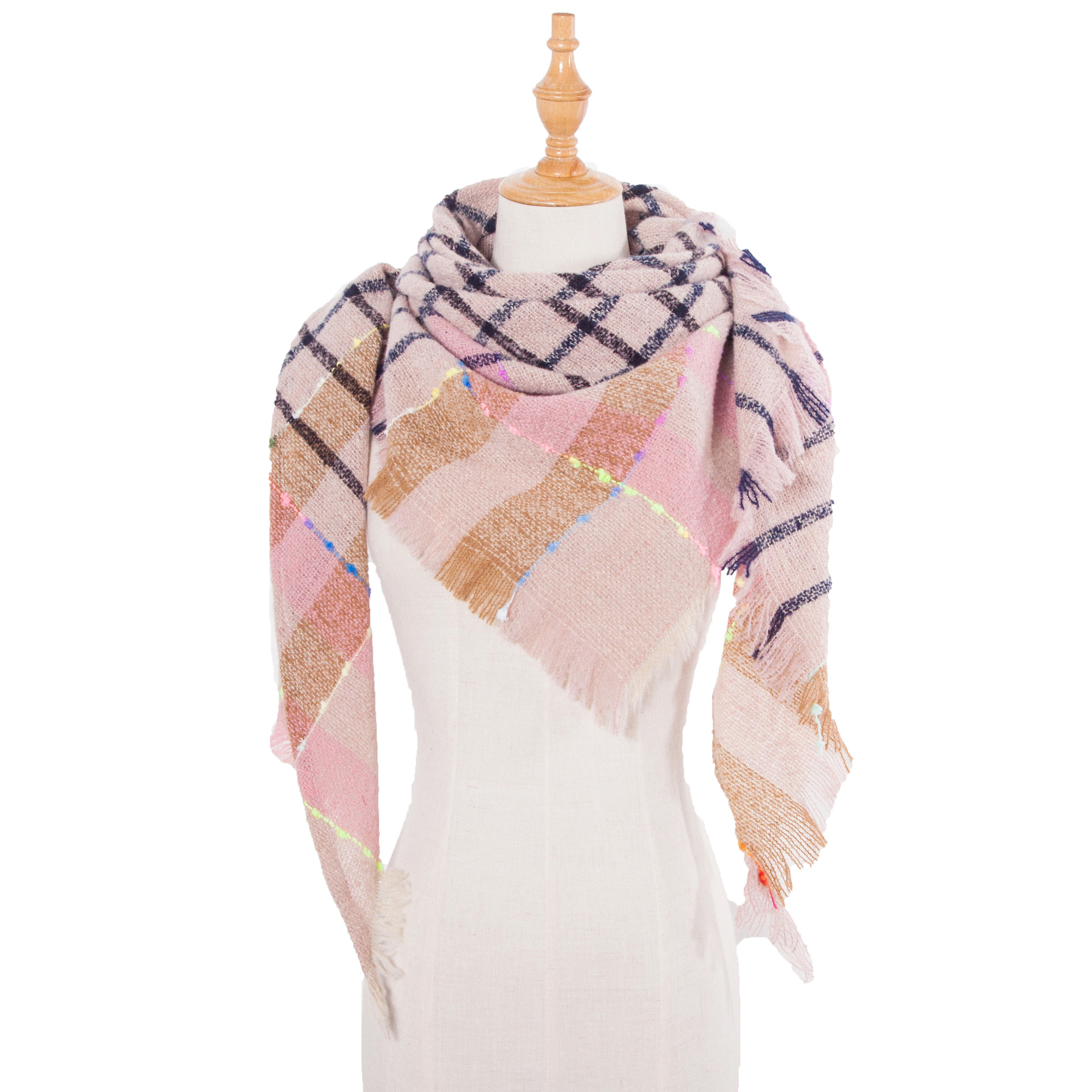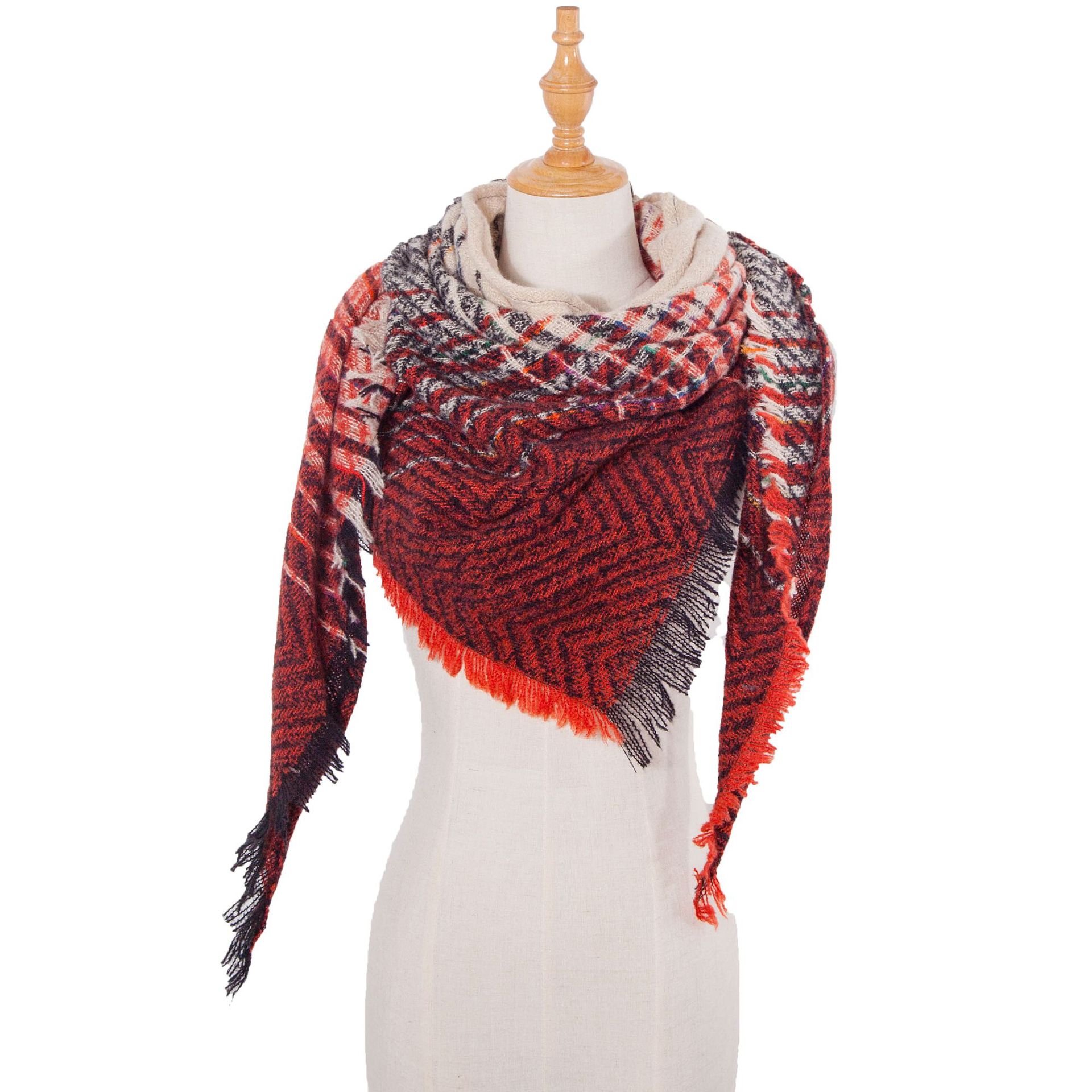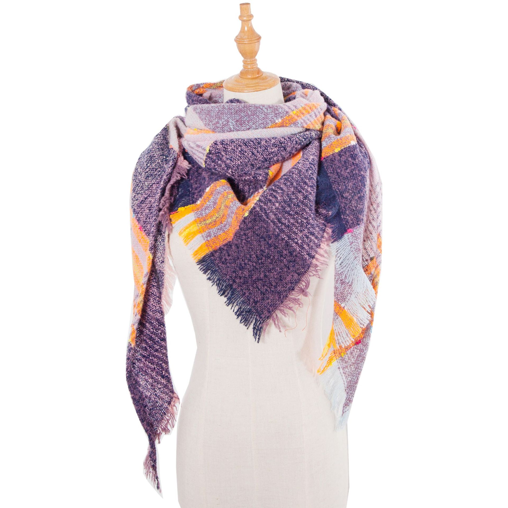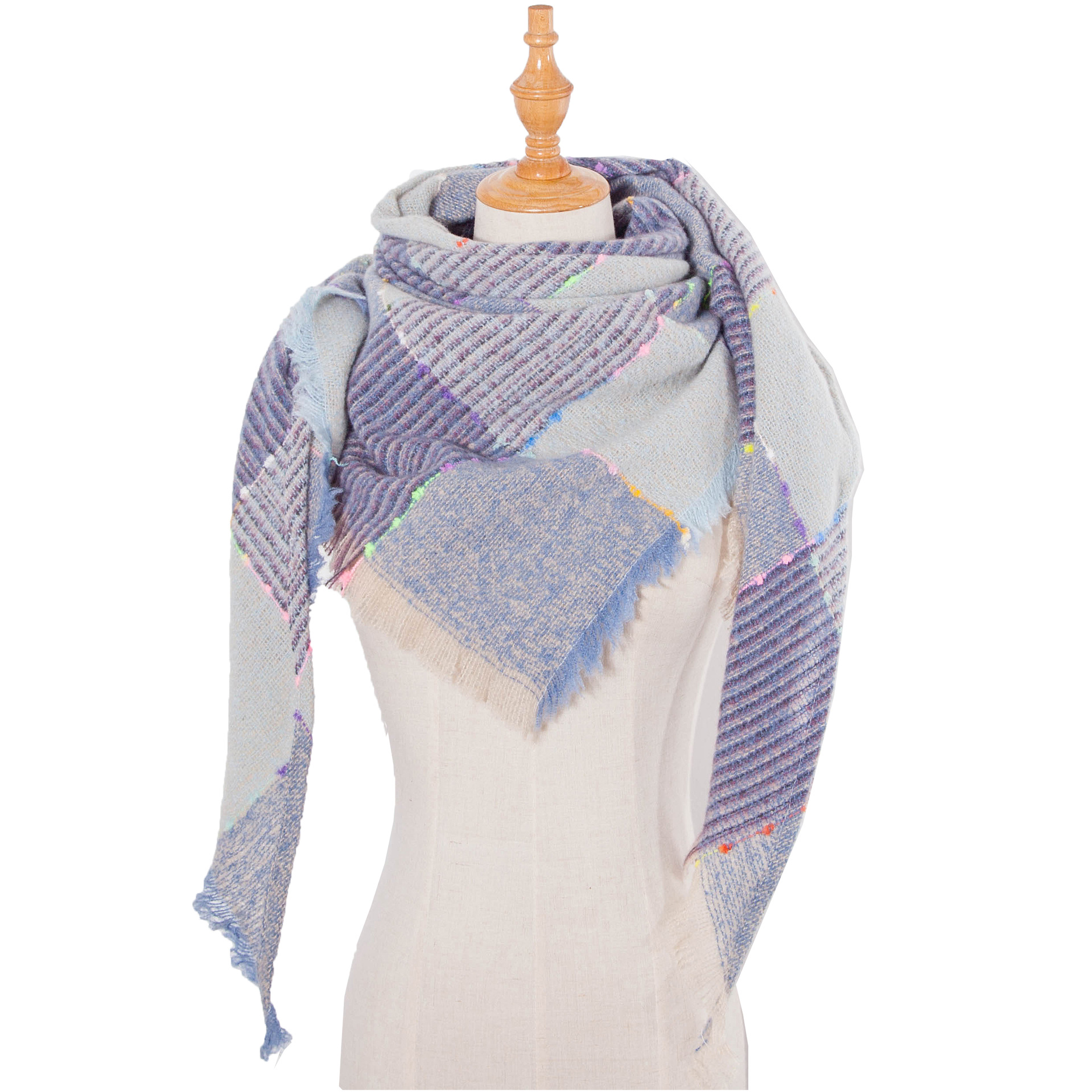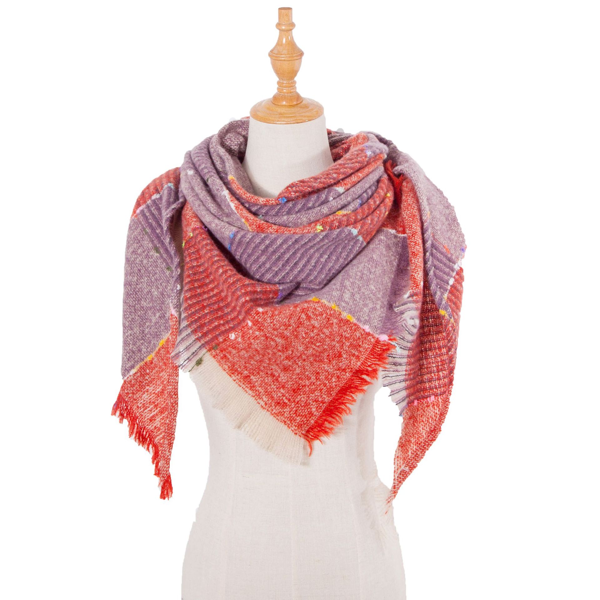 아마존 인기 유럽 및 미국 스타일 봄, 가을, 겨울 여성용 원사 혼방 폴리에스터 플로럴 패턴 삼각 숄 스카프/넥워머 제조업체스토어 가기