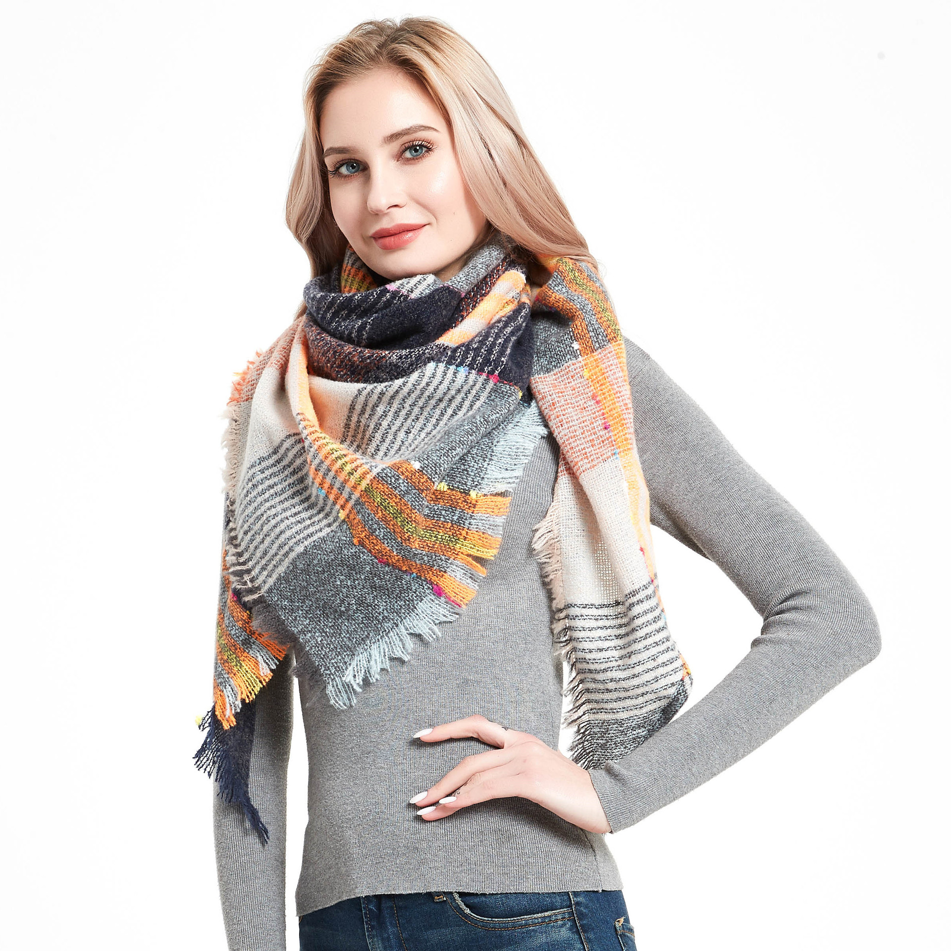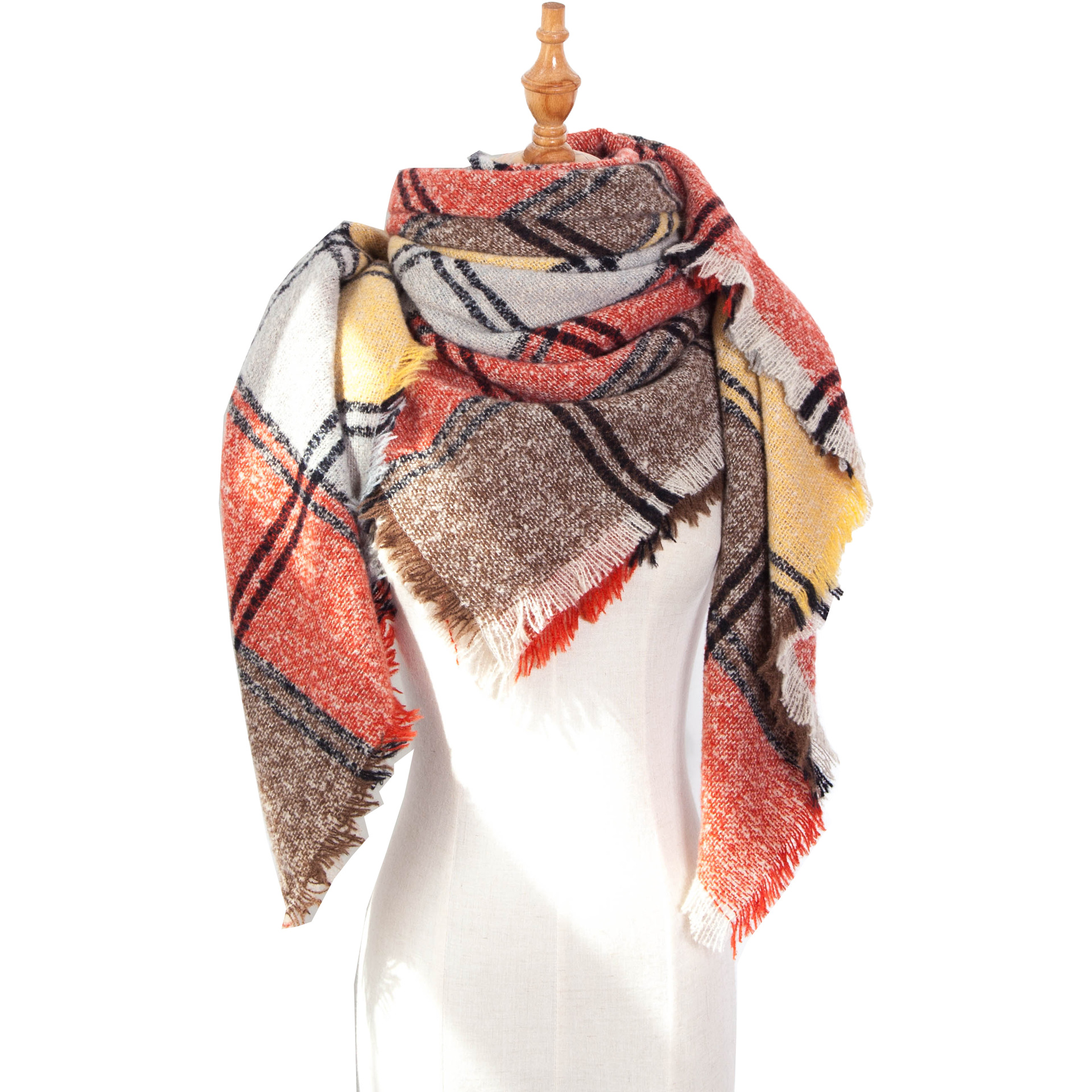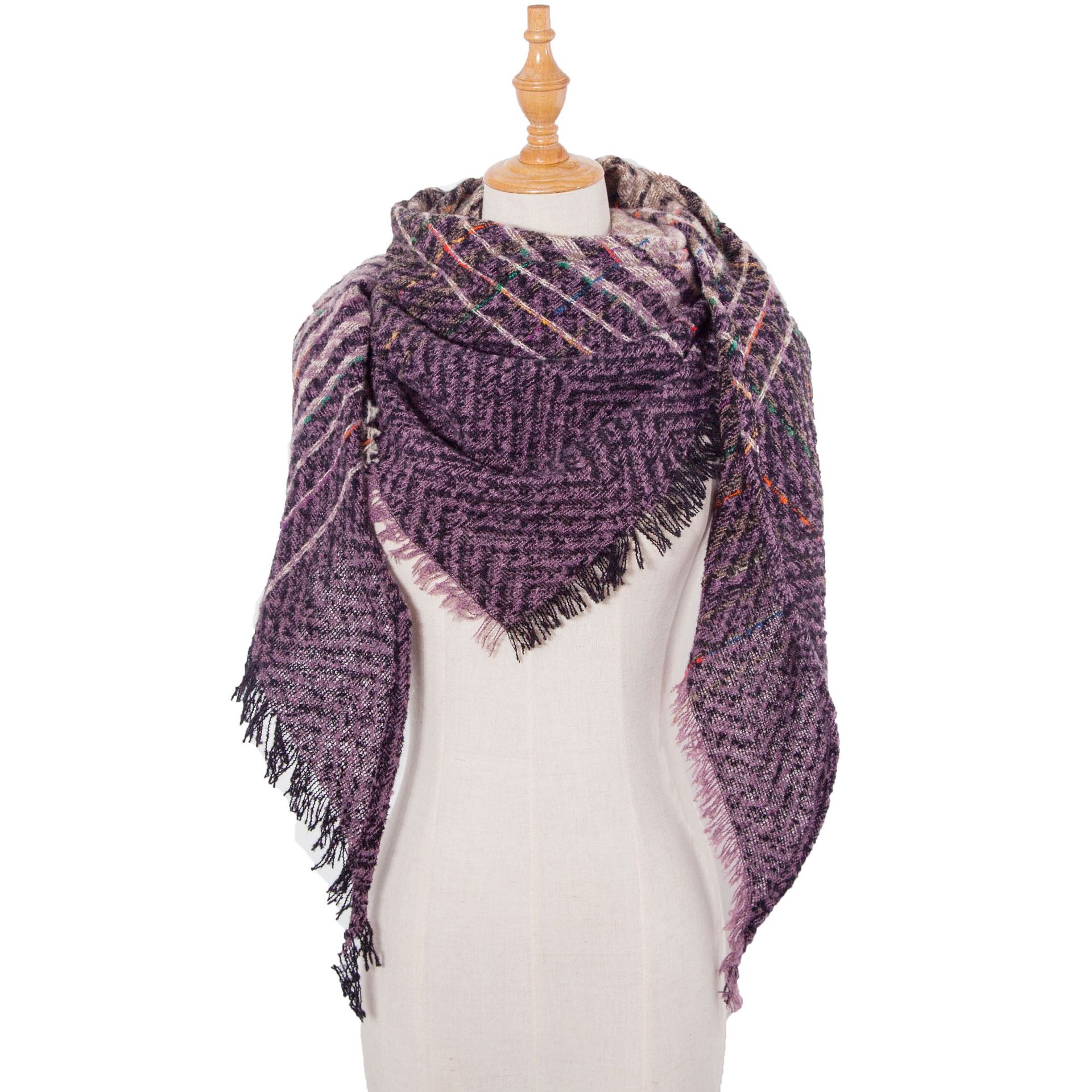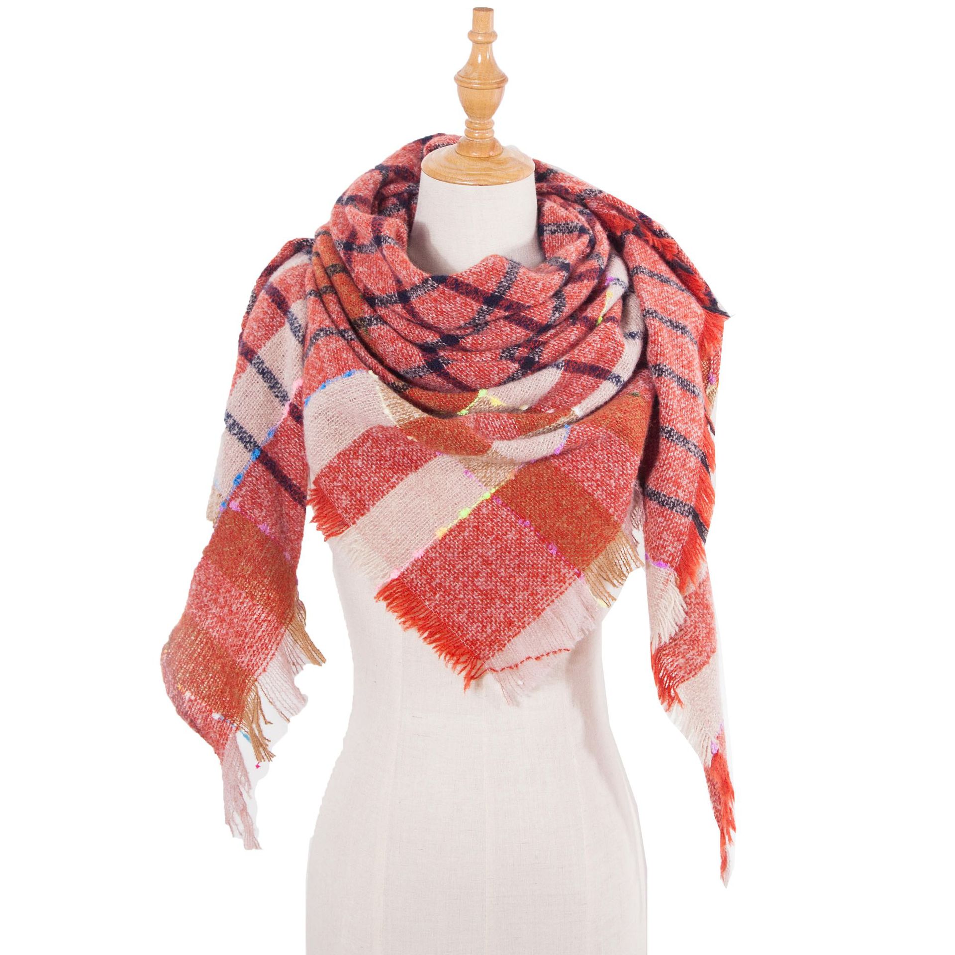 아마존 인기 유럽 및 미국 스타일 봄, 가을, 겨울 여성용 원사 혼방 폴리에스터 플로럴 패턴 삼각 숄 스카프/넥워머 제조업체스토어 가기