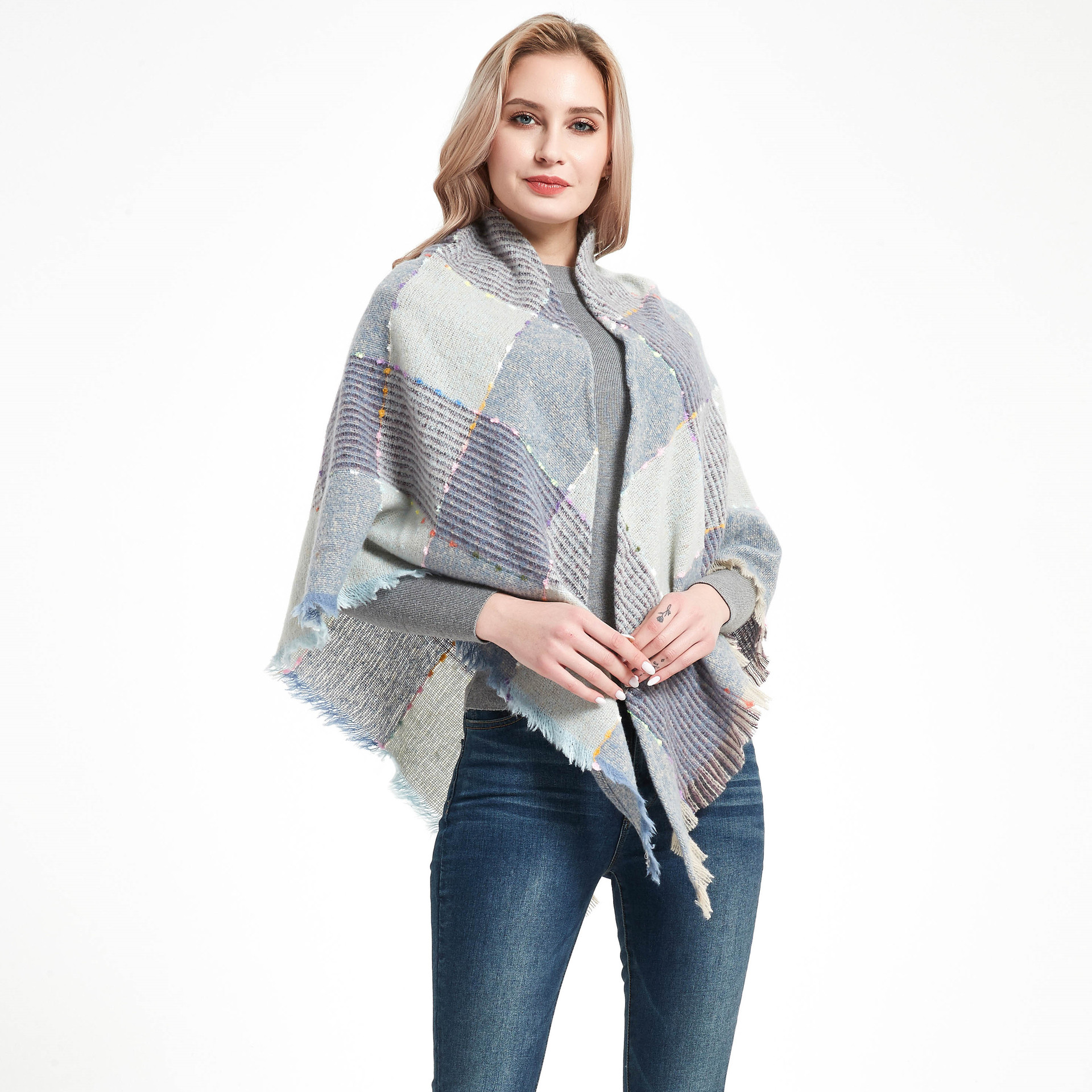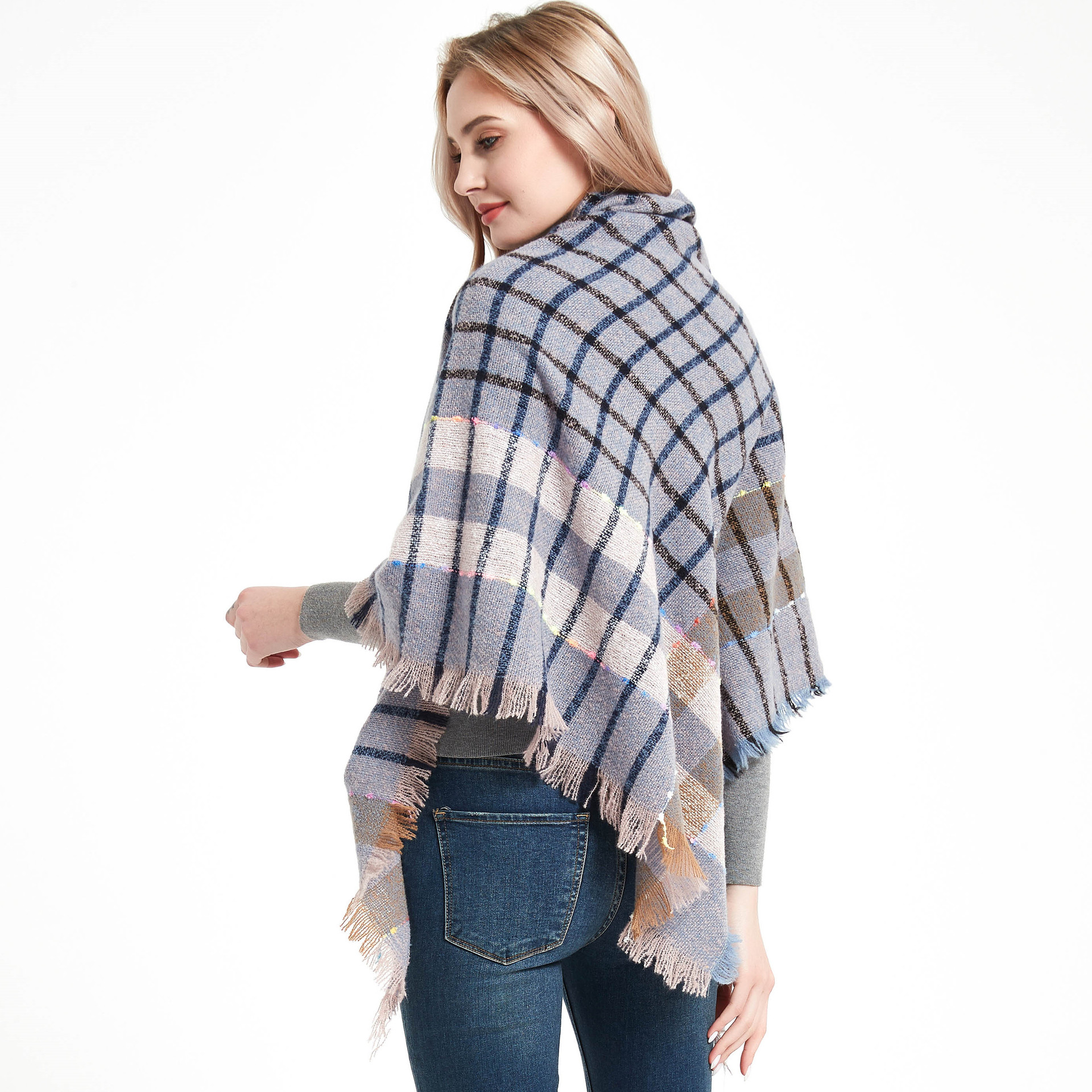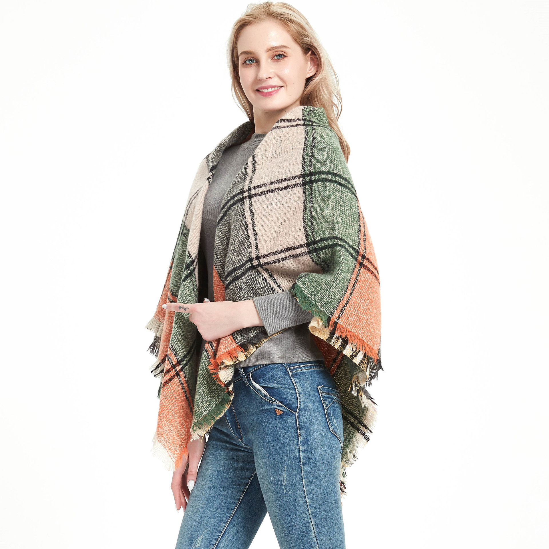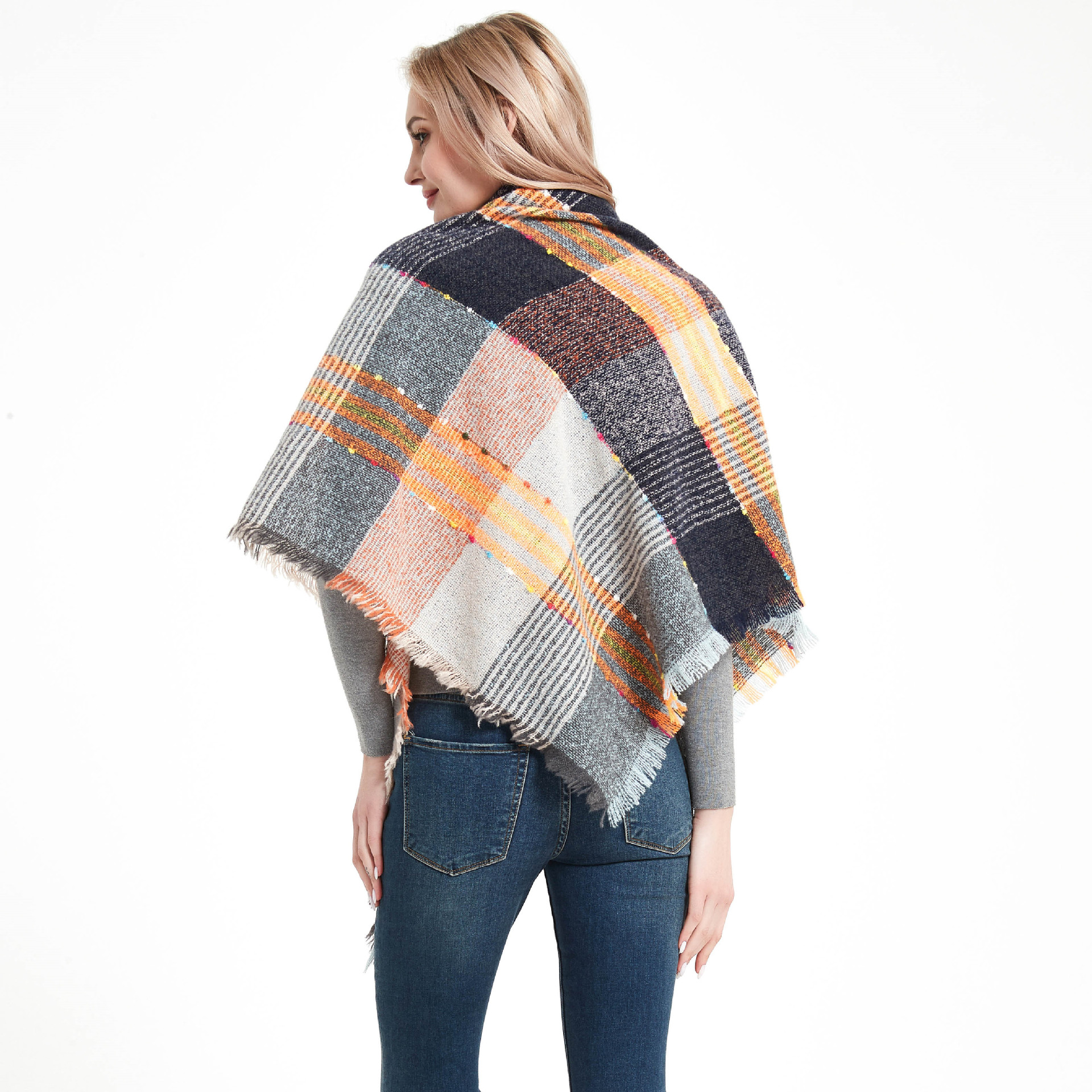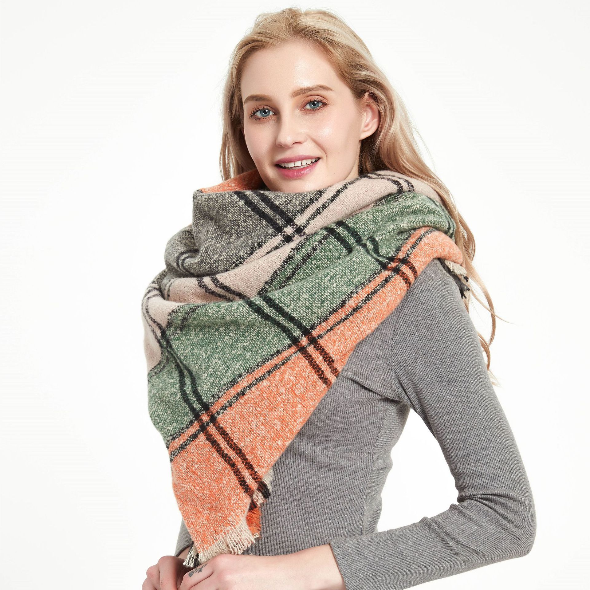 아마존 인기 유럽 및 미국 스타일 봄, 가을, 겨울 여성용 원사 혼방 폴리에스터 플로럴 패턴 삼각 숄 스카프/넥워머 제조업체스토어 가기
