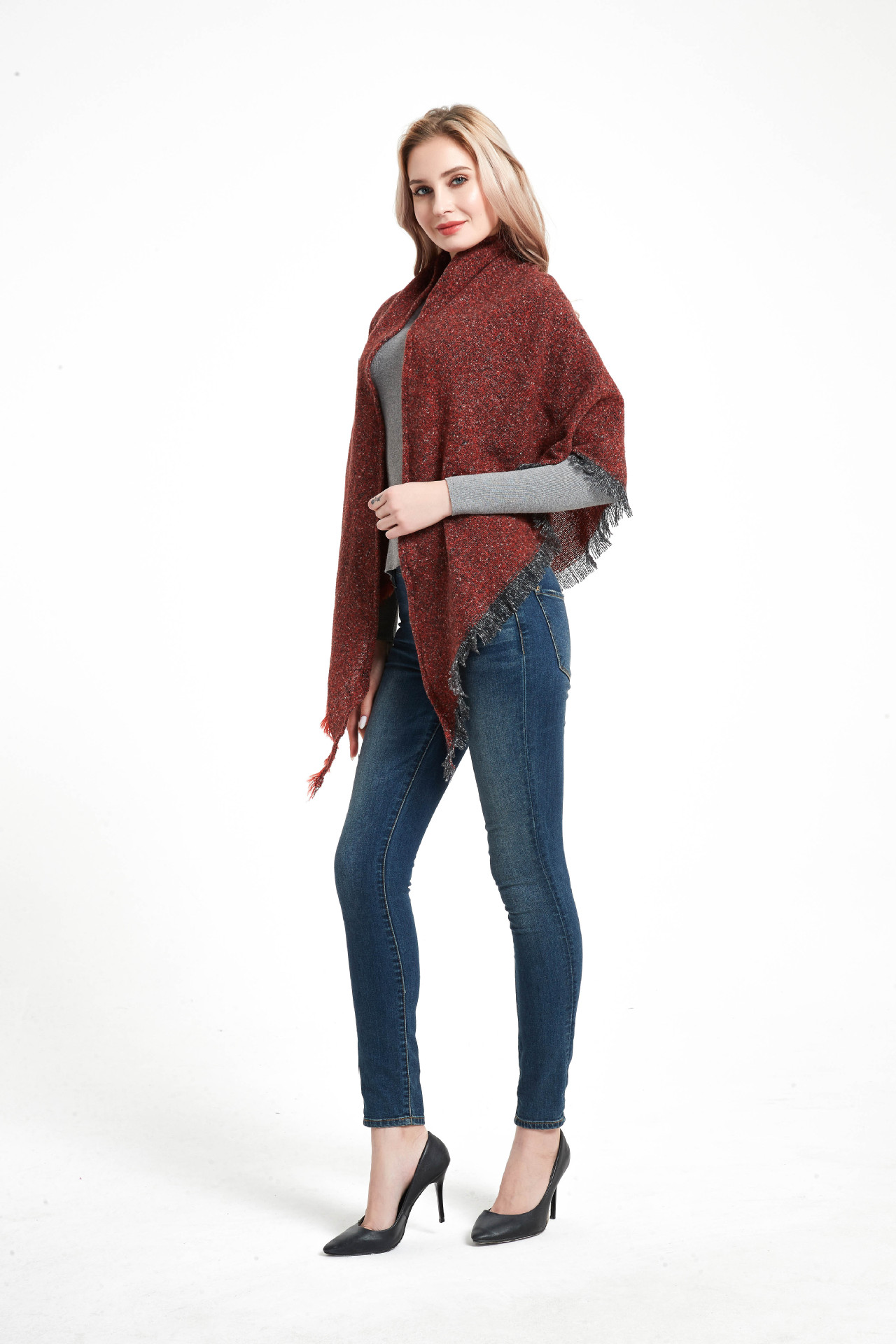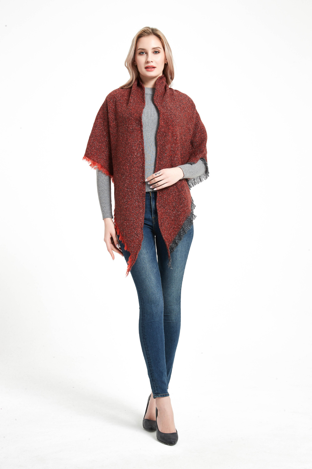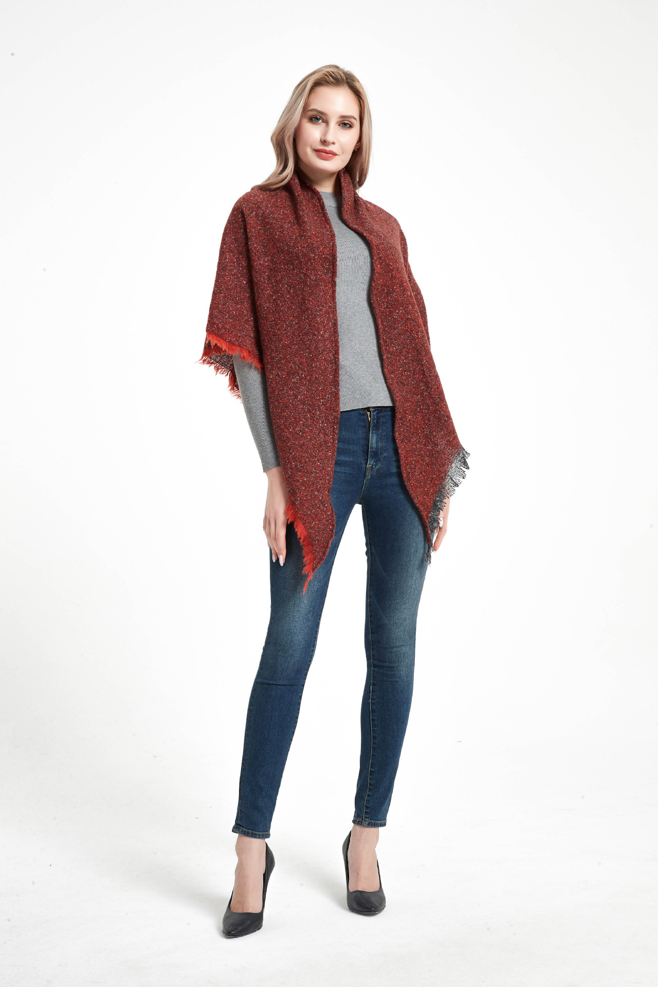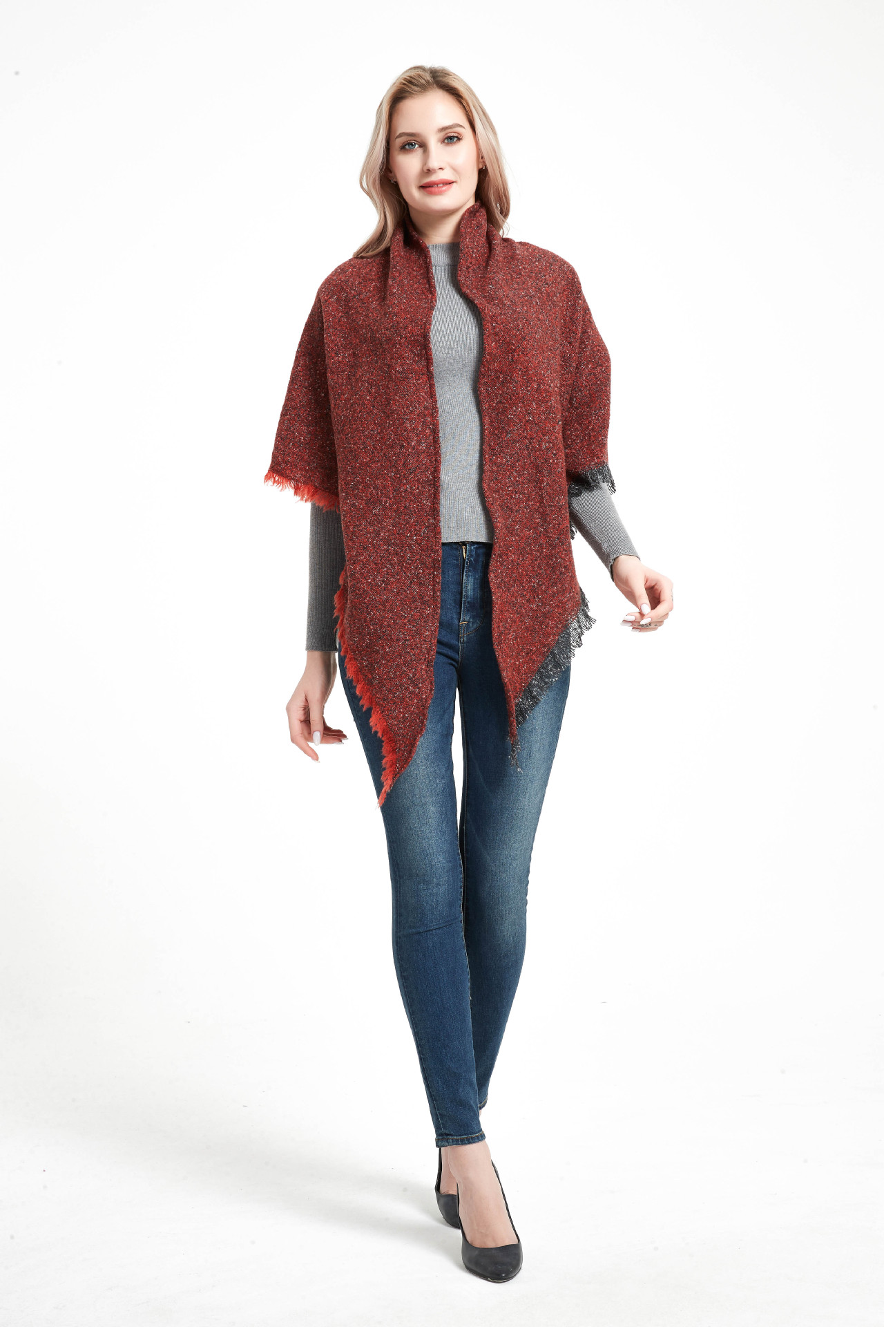 아마존 인기 유럽 및 미국 스타일 봄, 가을, 겨울 여성용 원사 혼방 폴리에스터 플로럴 패턴 삼각 숄 스카프/넥워머 제조업체스토어 가기