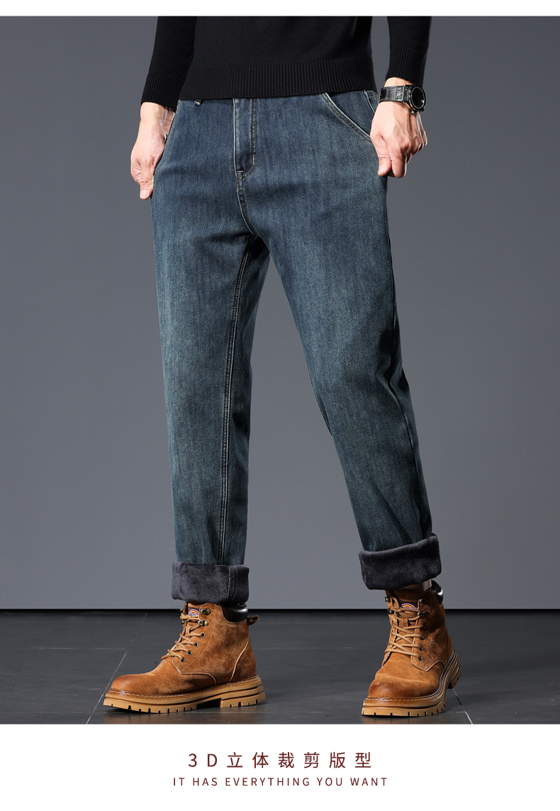 겨울 블루 그레이 기모 두꺼운 청바지 남성용 루즈 스트레이트 바지 중년 가을과 겨울 따뜻한 슈퍼 두꺼운 바지스토어 가기