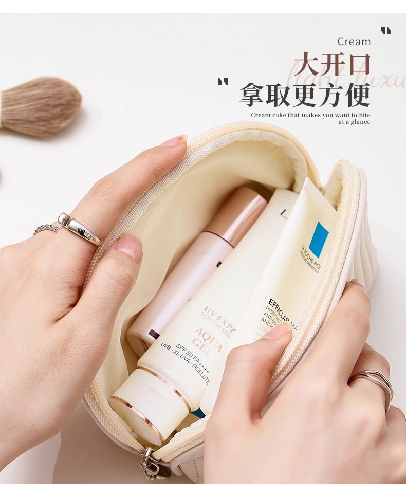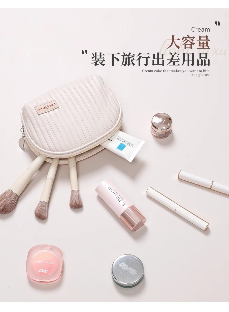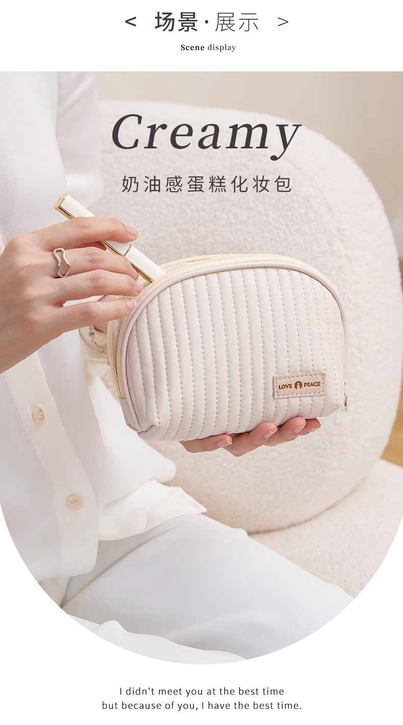 • 밀크 살구 화이트 반원형 화장품 가방