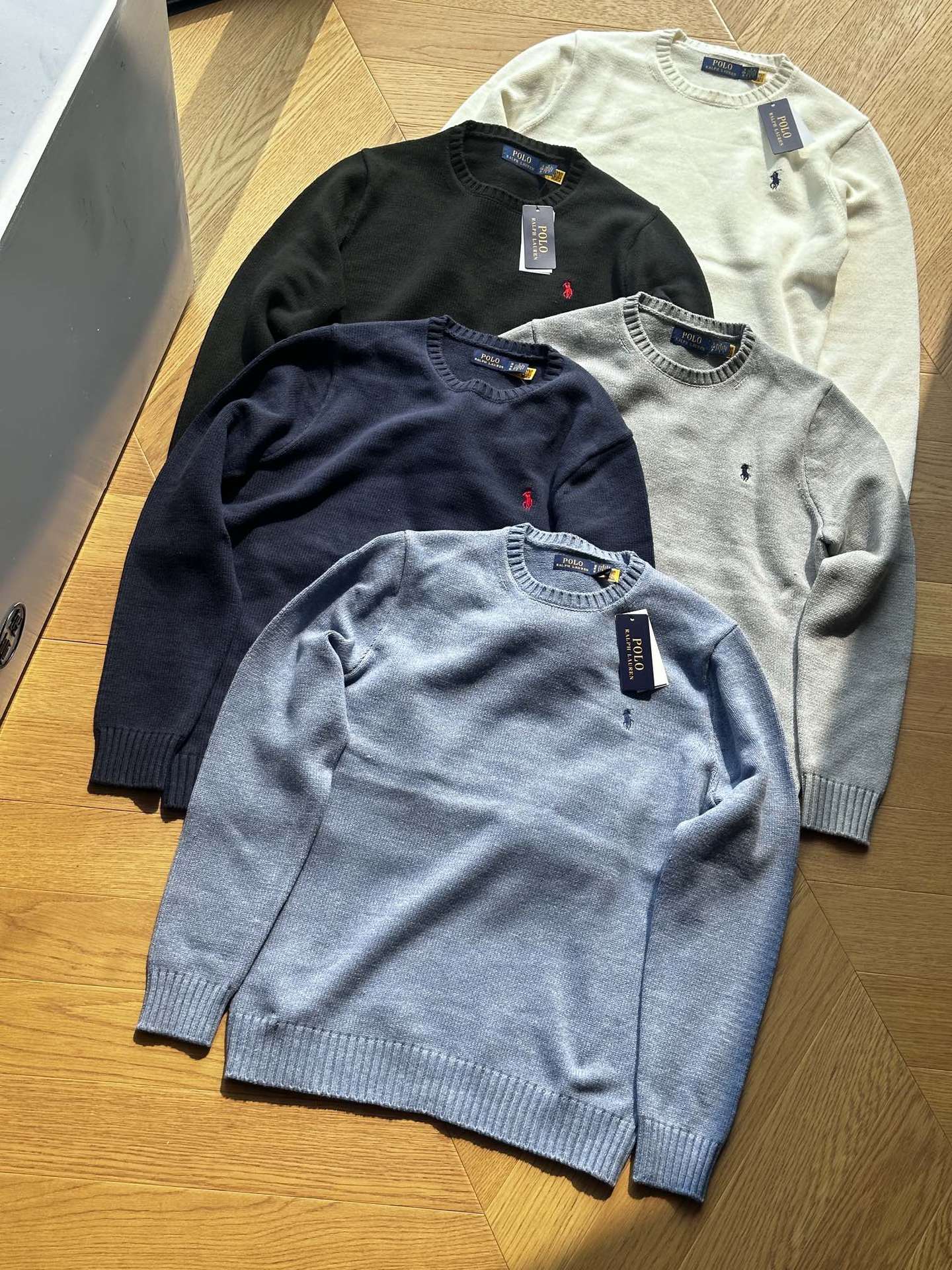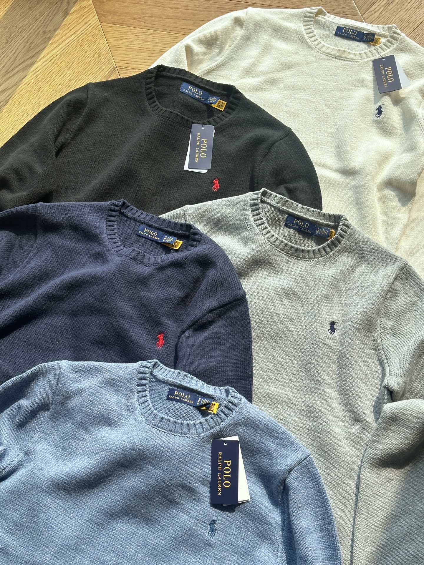 국경 간 공급 RL Raff FW22 솔리드 컬러 로고 자수 라운드 넥 풀오버 긴팔 스웨터 겨울 커플 스타일스토어 가기