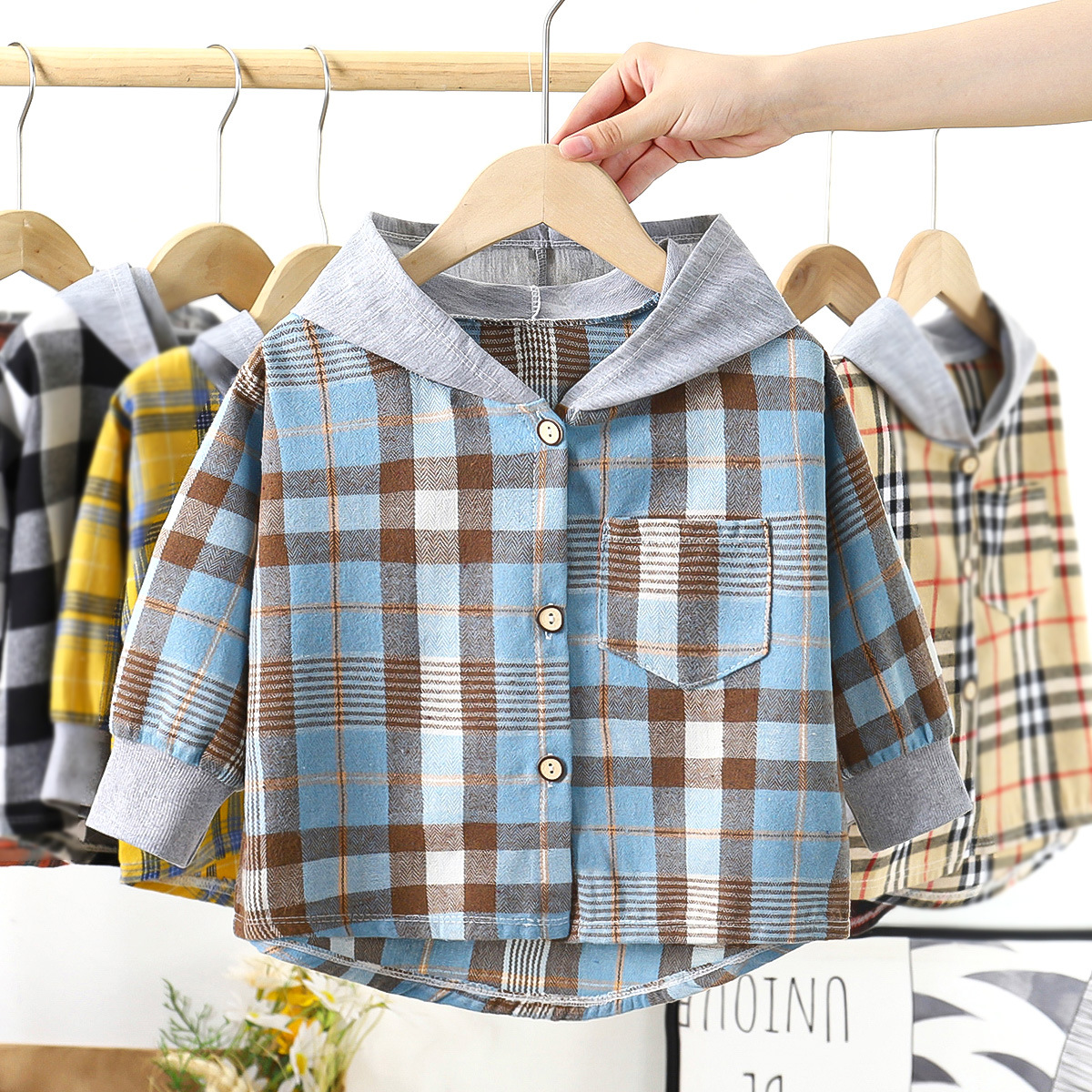 어린이 봄과 가을 셔츠 어린이 의류 소년의 후드 체크 무늬 셔츠 소녀의 아기의 긴 소매 격자 받침대 자켓 탑스토어 가기