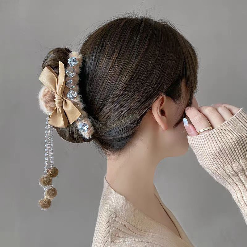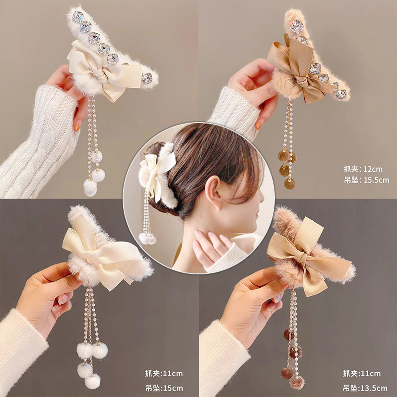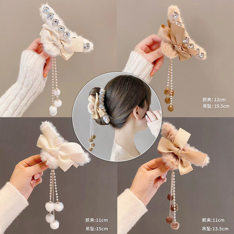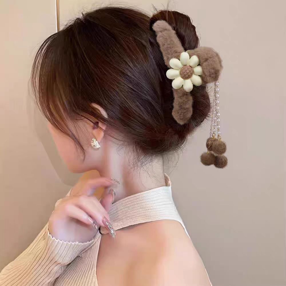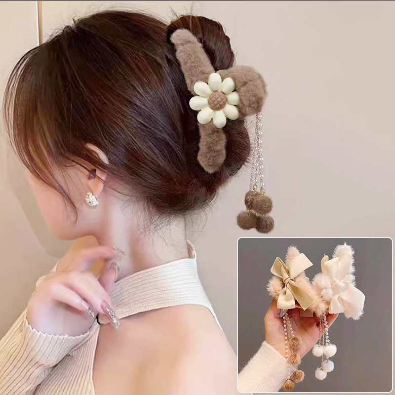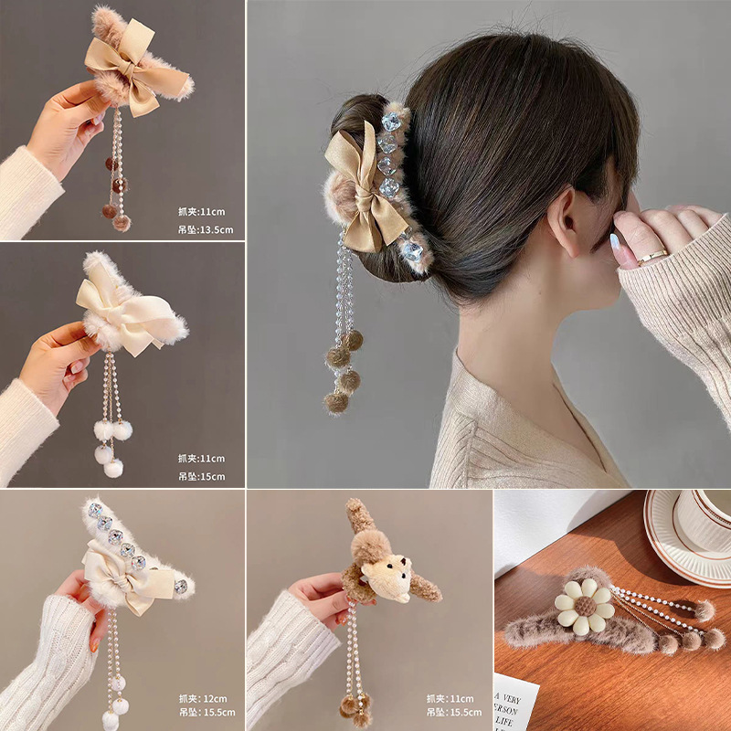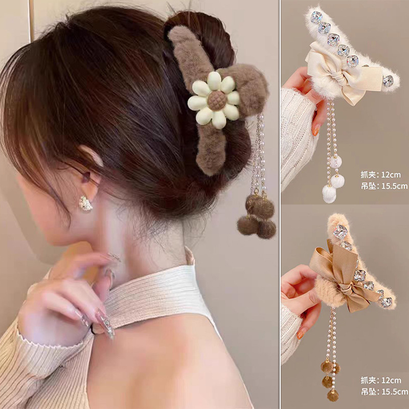 여성 패션 봉제 술 머리 머리 머리 잡아 클립 여성용 머리핀 대형 2024 새로운 도착 클립 헤드웨어스토어 가기