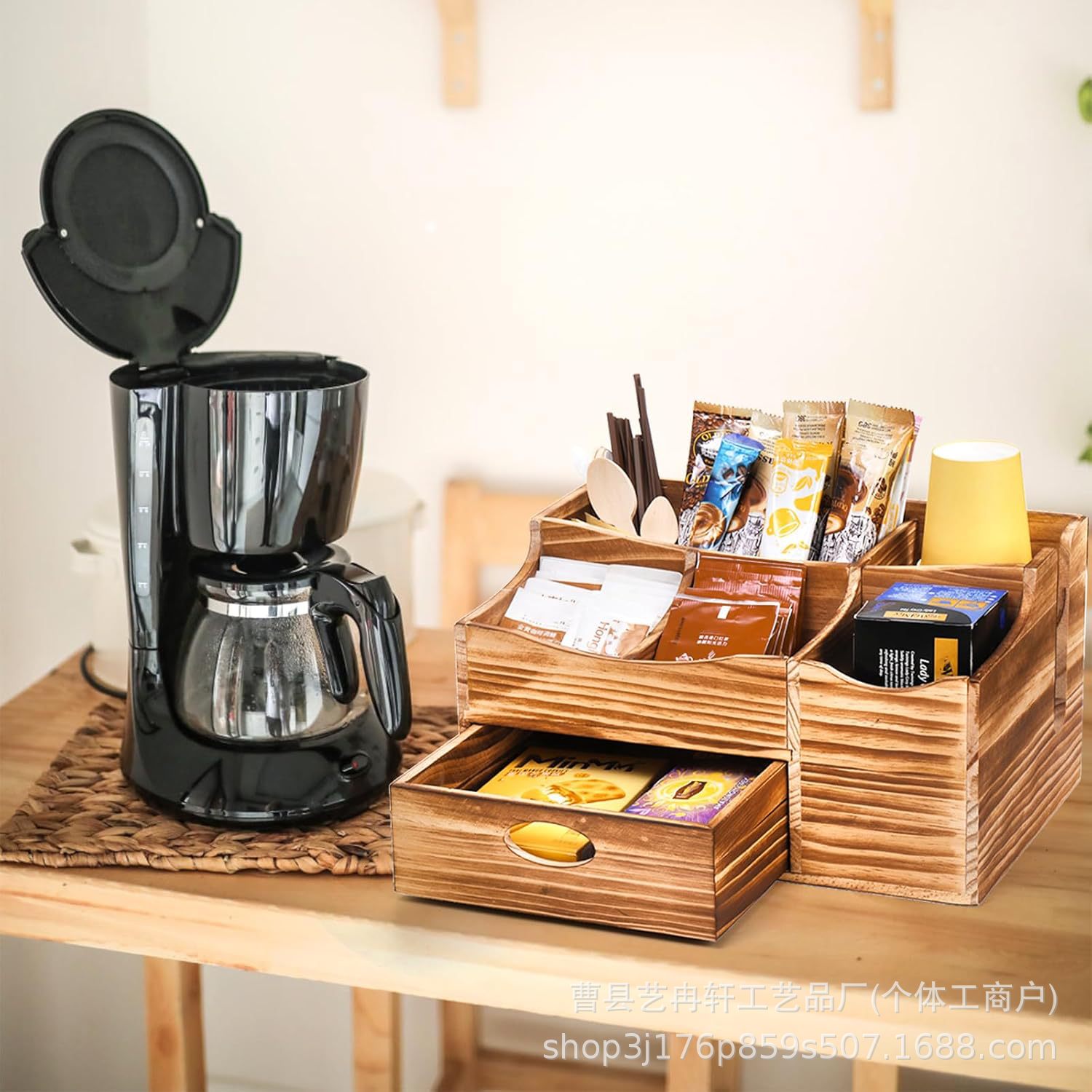 나무 커피 바 액세서리 저장 상자 사이드 보드 사탕 티백 캡슐 홀더 다방 종이컵 디스펜서 보관스토어 가기