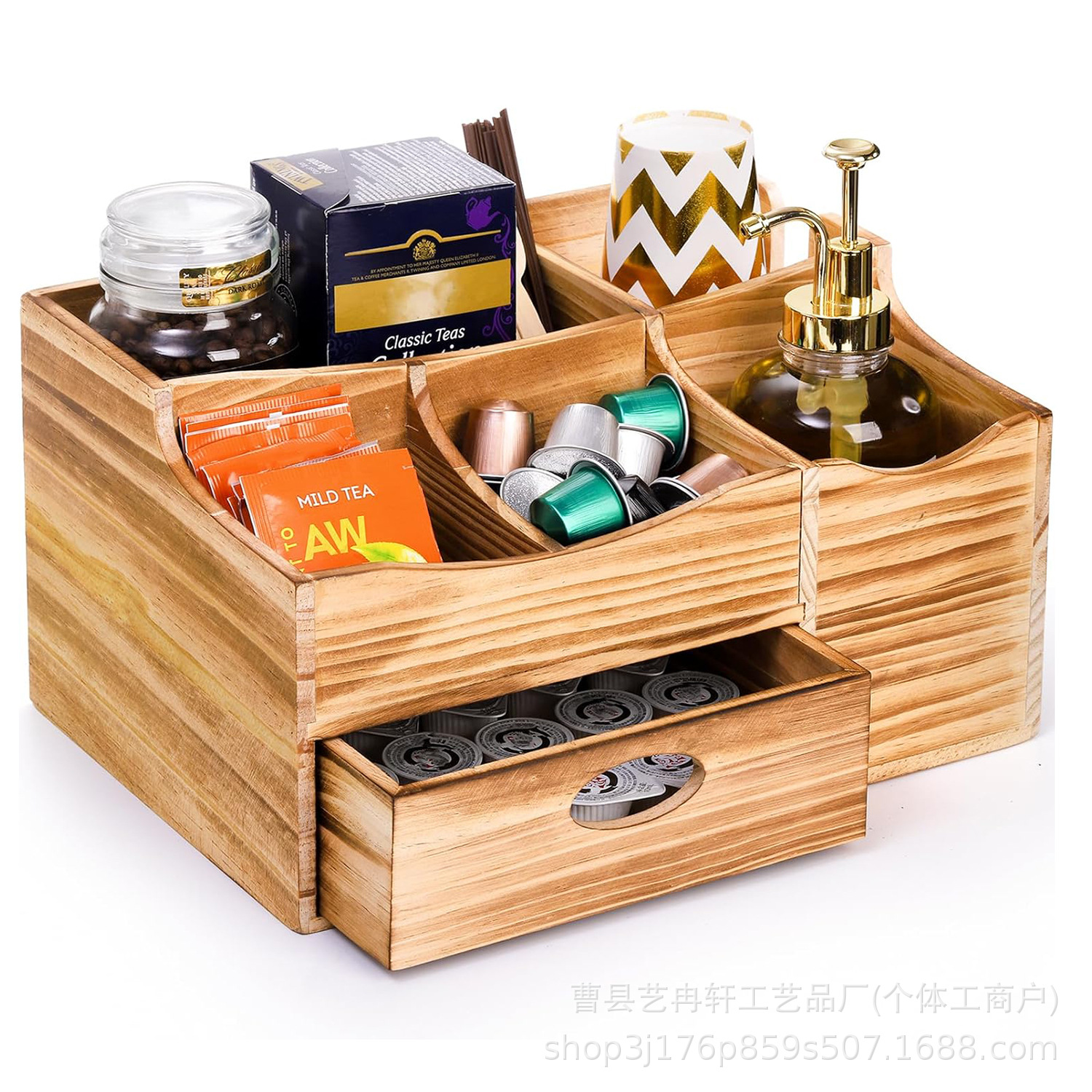 나무 커피 바 액세서리 저장 상자 사이드 보드 사탕 티백 캡슐 홀더 다방 종이컵 디스펜서 보관