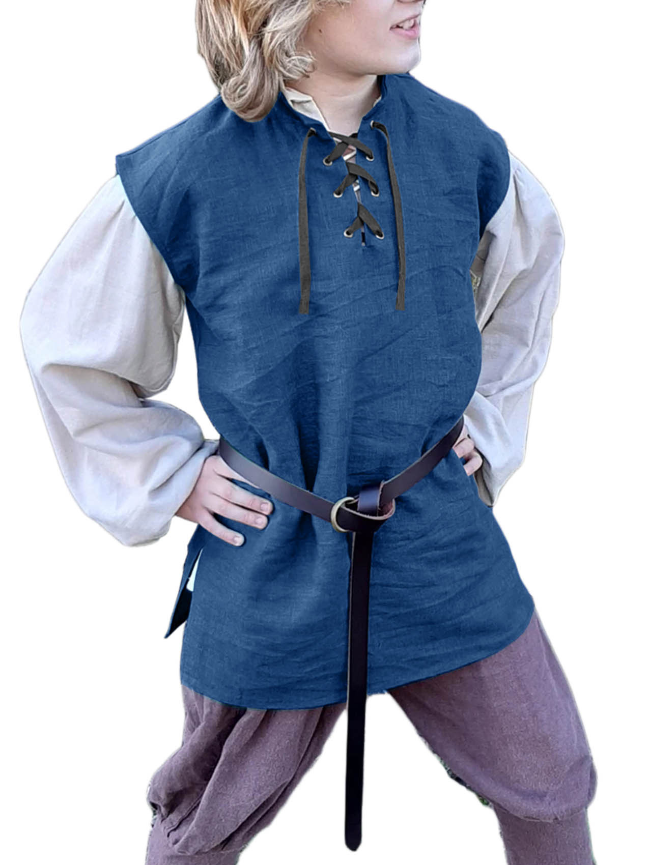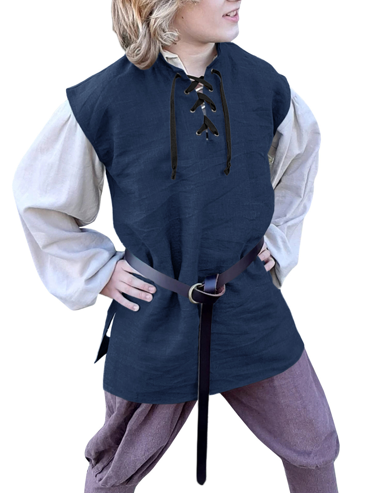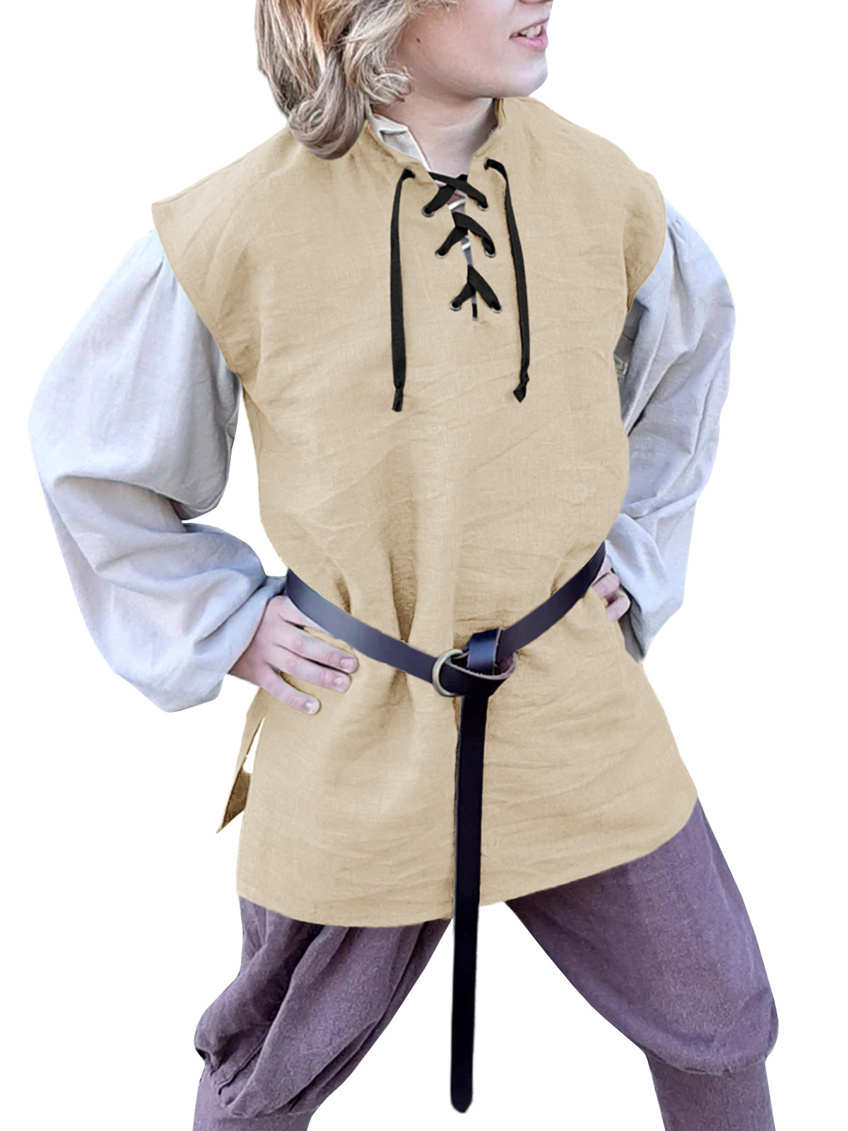 跨境亚马逊新款儿童文艺复兴海盗背心 中世纪苏格兰无袖系带衬衫,重量:165-236克