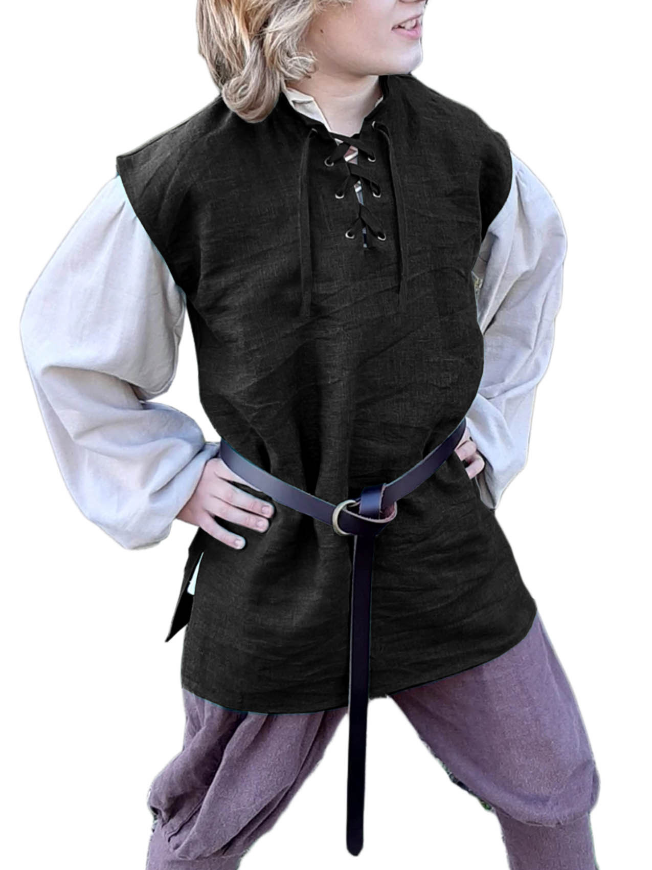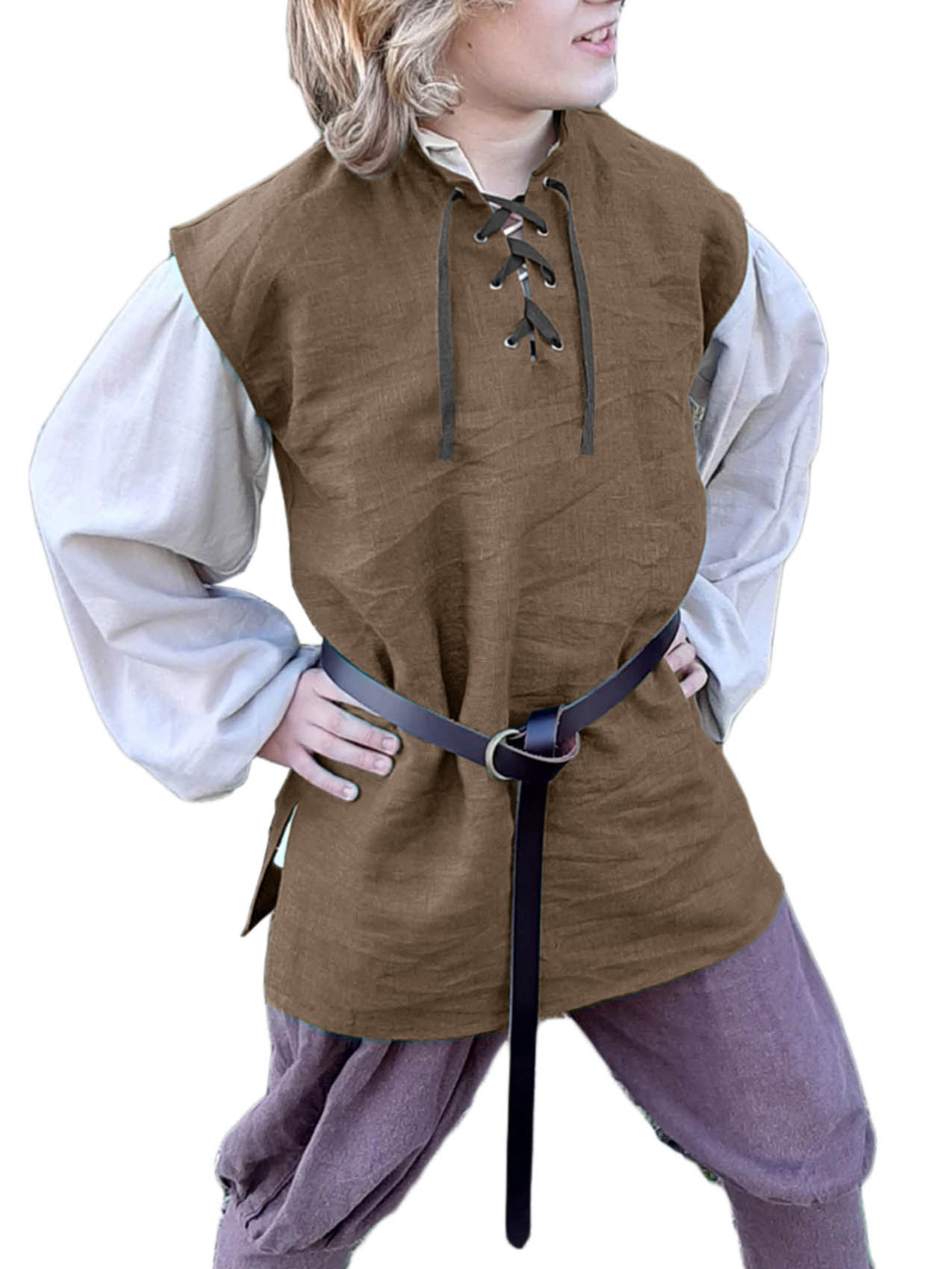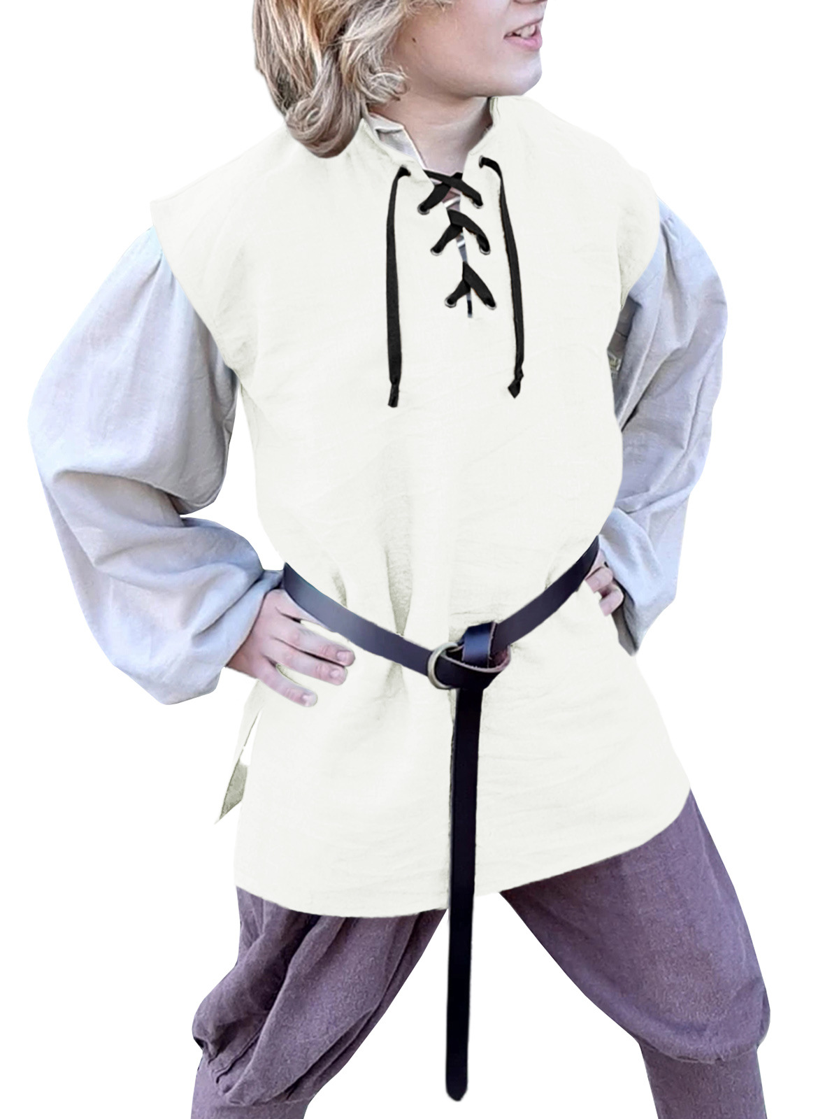 跨境亚马逊新款儿童文艺复兴海盗背心 中世纪苏格兰无袖系带衬衫,重量:165-236克
