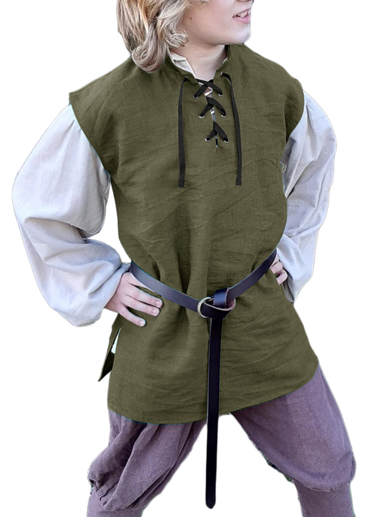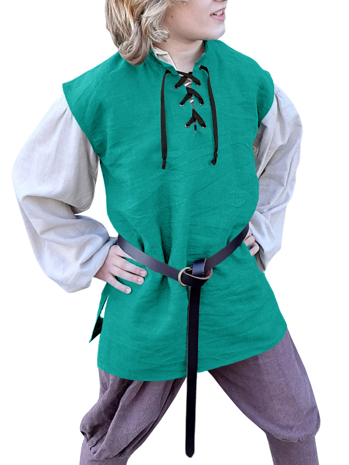 국경 간 아마존 새로운 어린이 르네상스 해적 조끼 중세 스코틀랜드 민소매 레이스 업 셔츠
