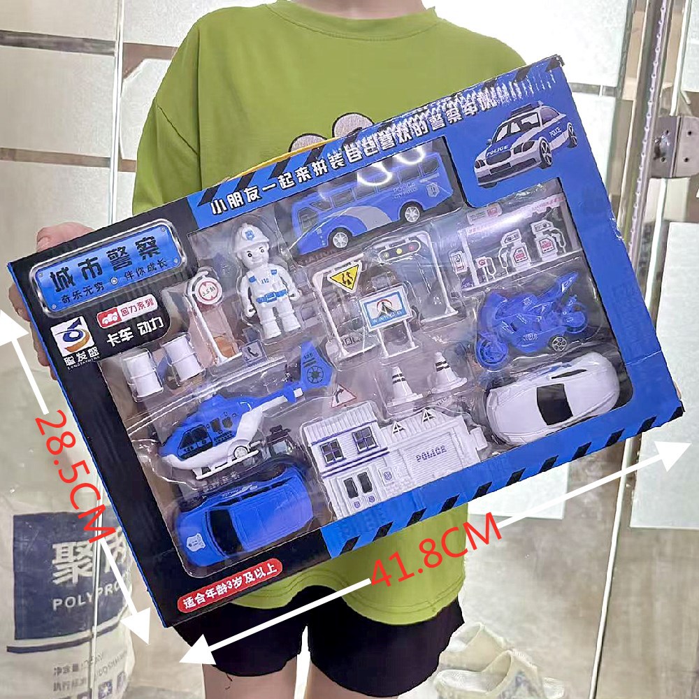 Huili 관성 엔지니어링 차량 선물 상자 세트 굴삭기 소방차 세트 소년 자동차 장난감 마구간 도매