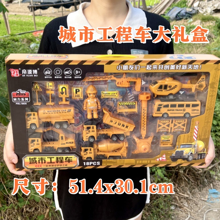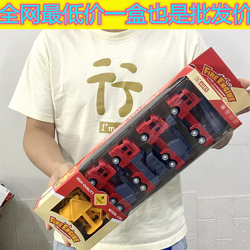 Huili 관성 엔지니어링 차량 선물 상자 세트 굴삭기 소방차 세트 소년 자동차 장난감 마구간 도매스토어 가기