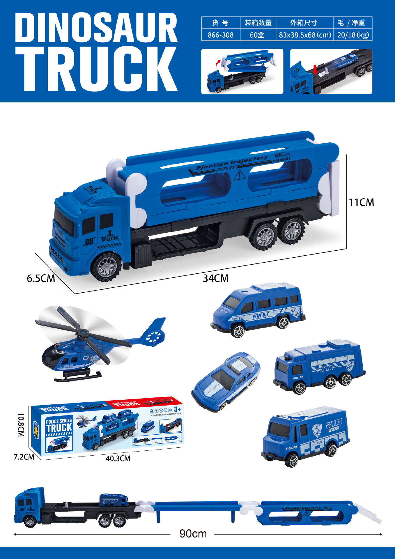 • 308-블루 접이식 슬라이딩 배출 컨테이너 트럭