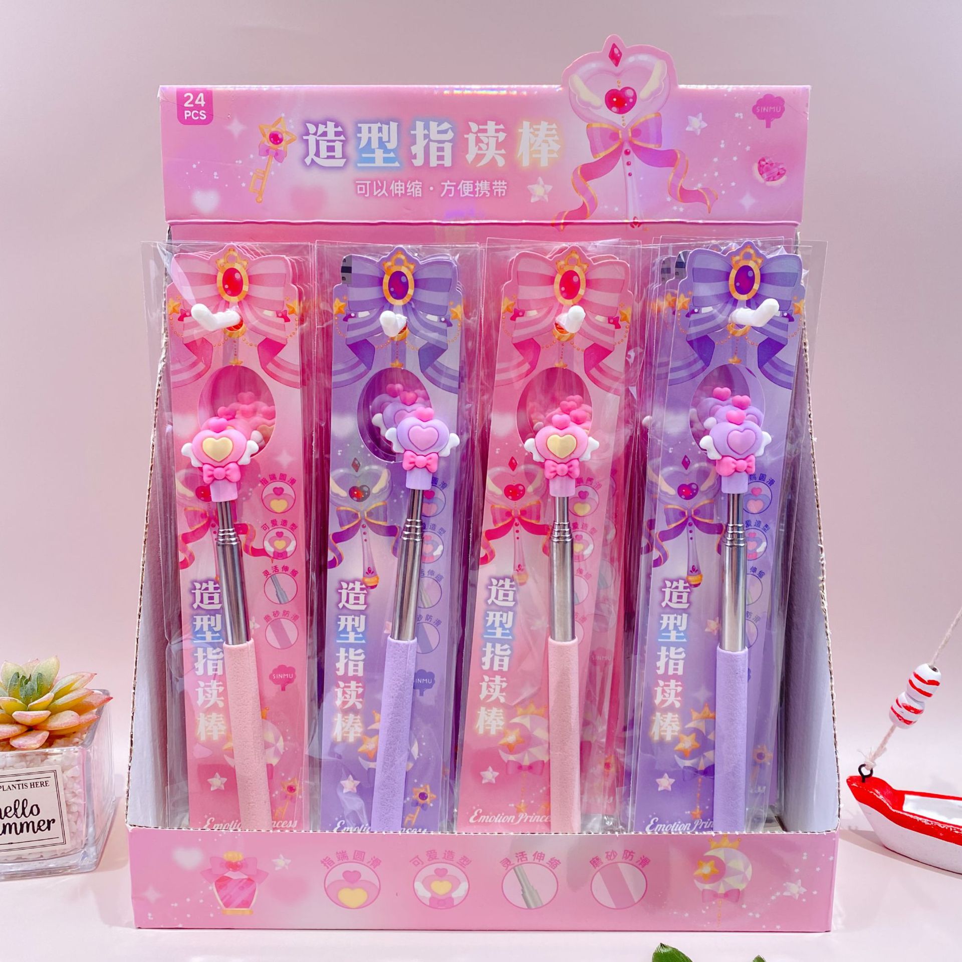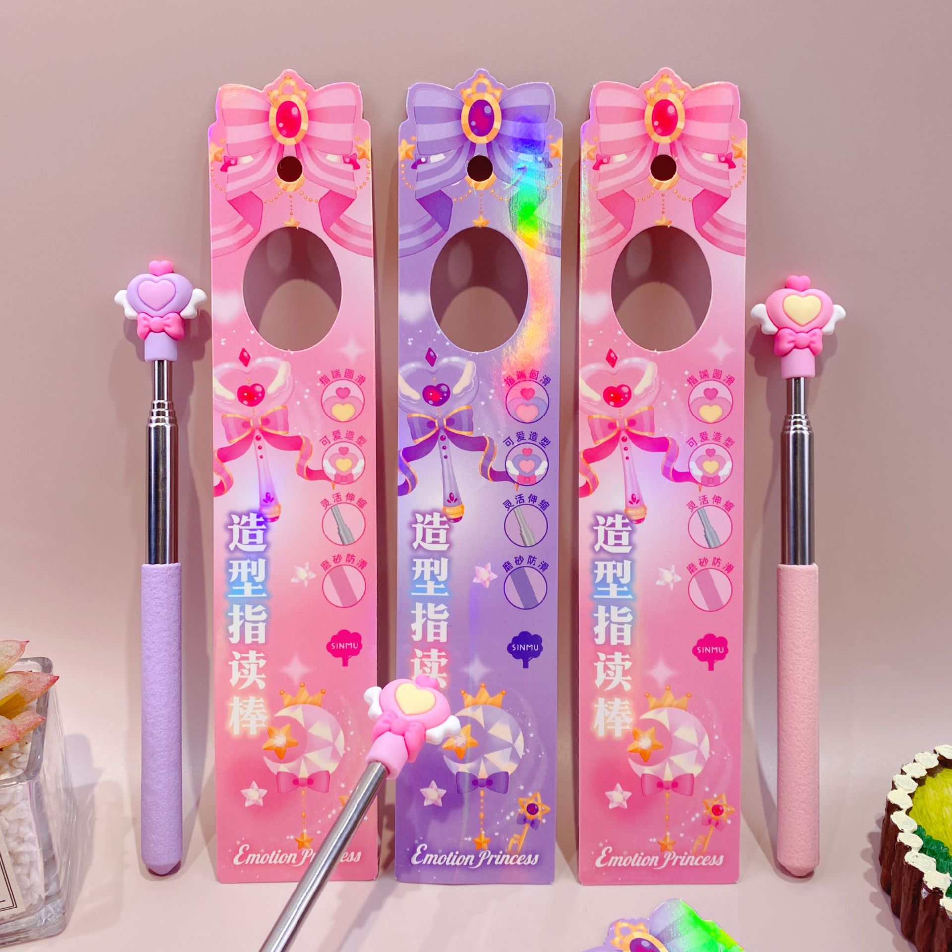 새로운 카피 발라 스트레치 개폐식 손가락 독서 스틱 귀여운 만화 독서 손가락 개폐식 포인트 읽기 스틱 포인터 교육 스틱