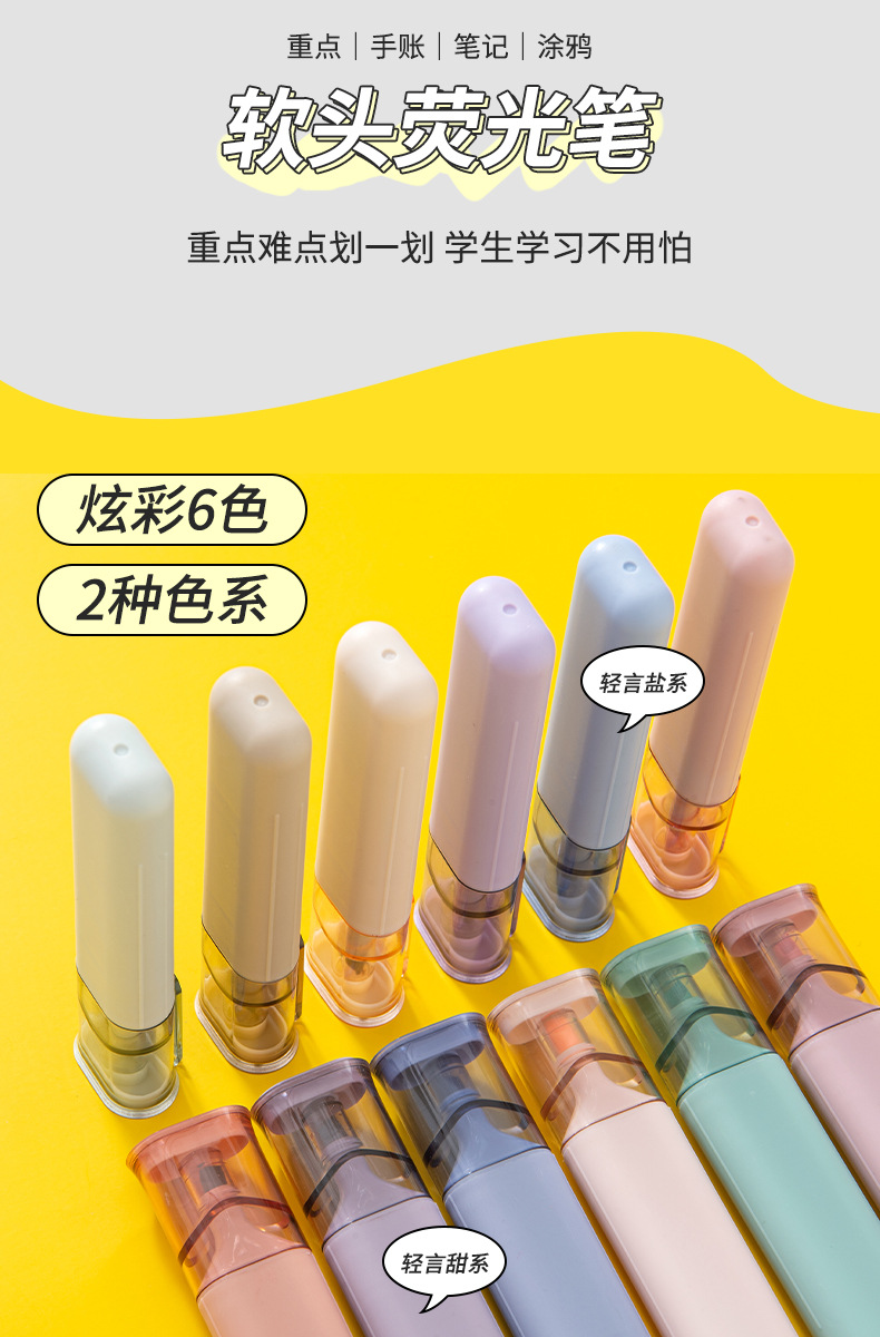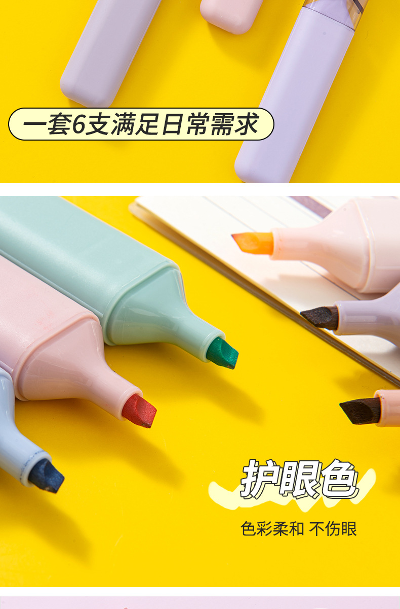 쓰기 마킹 키 마킹 펜 학교 용품 문구가있는 학생들을위한 대용량 마킹 형광펜 6 색 손 쓰기 펜스토어 가기