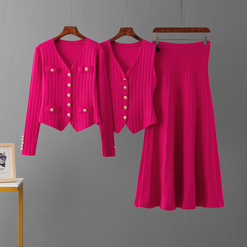 러시아 가을 겨울 신상 니트 가디건 스커트 3종 세트 캐주얼 패션 숏 스커트 골지 세트 여성용
