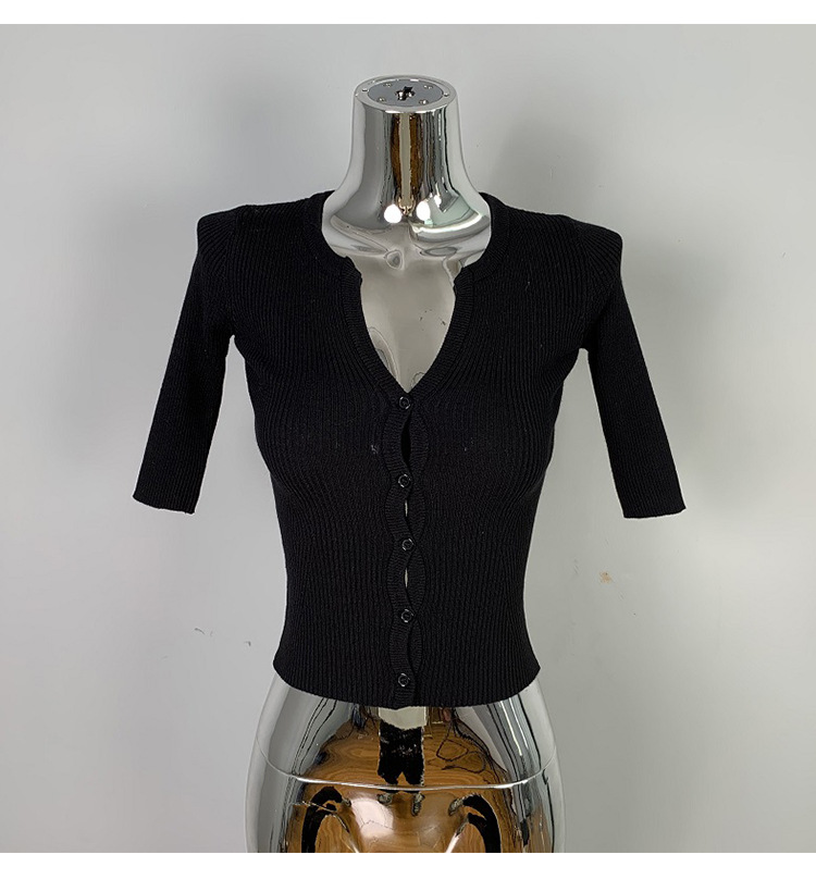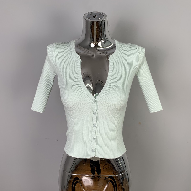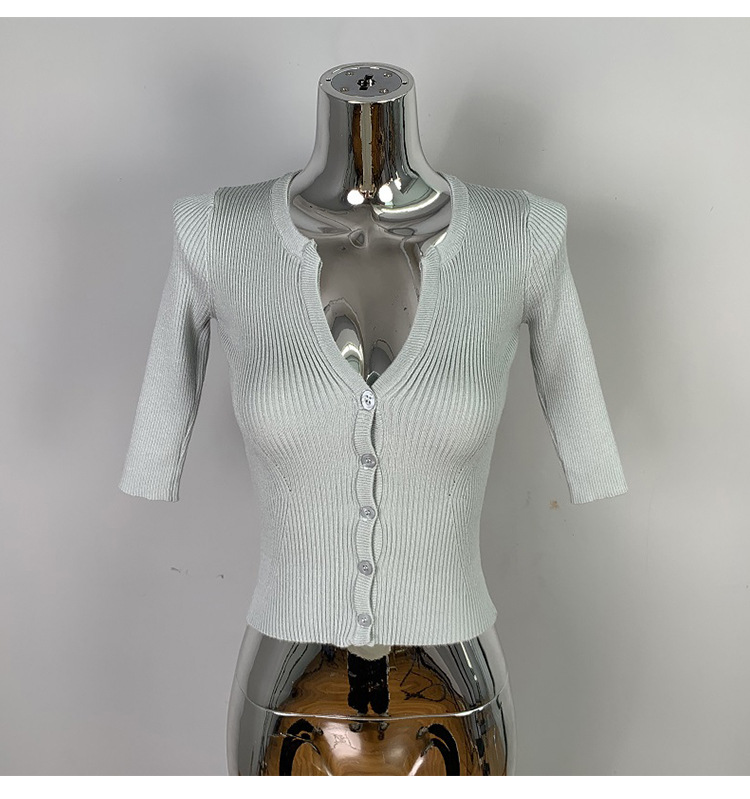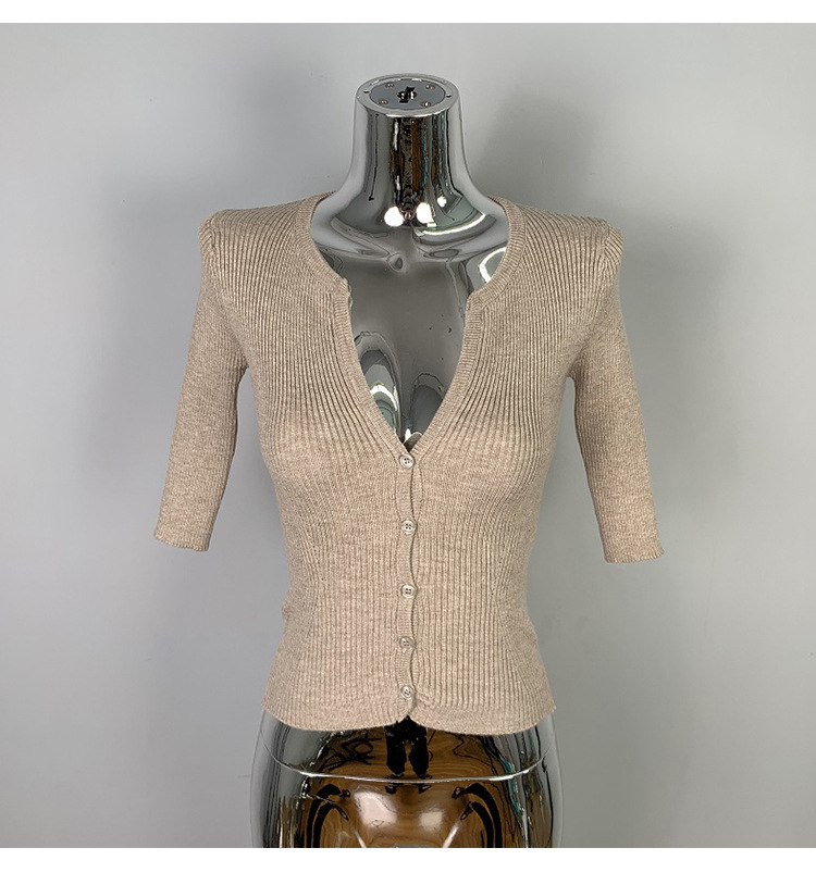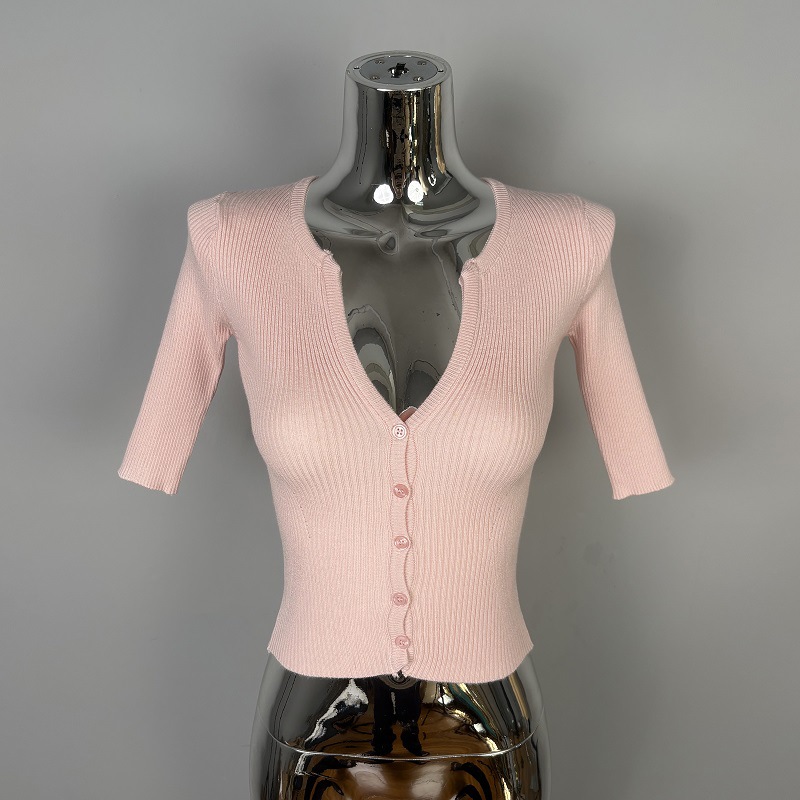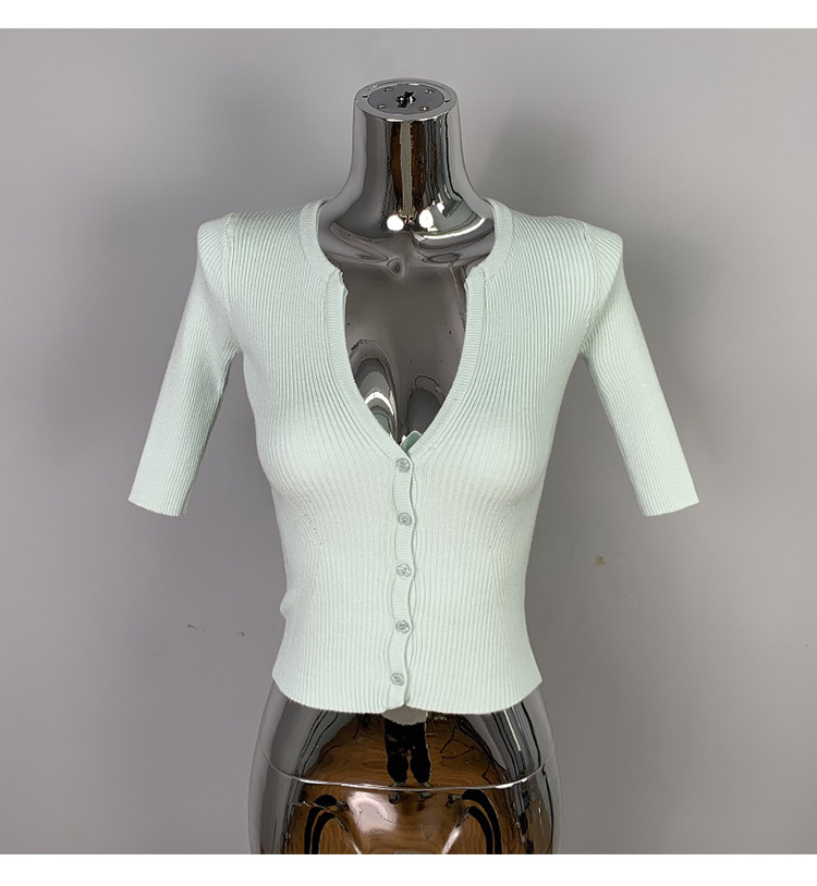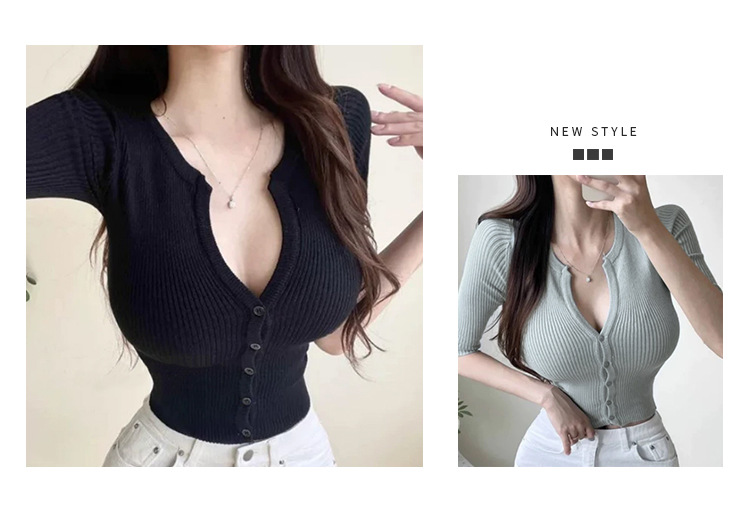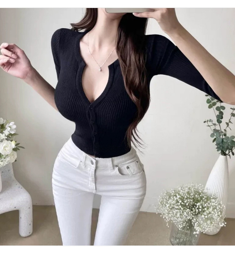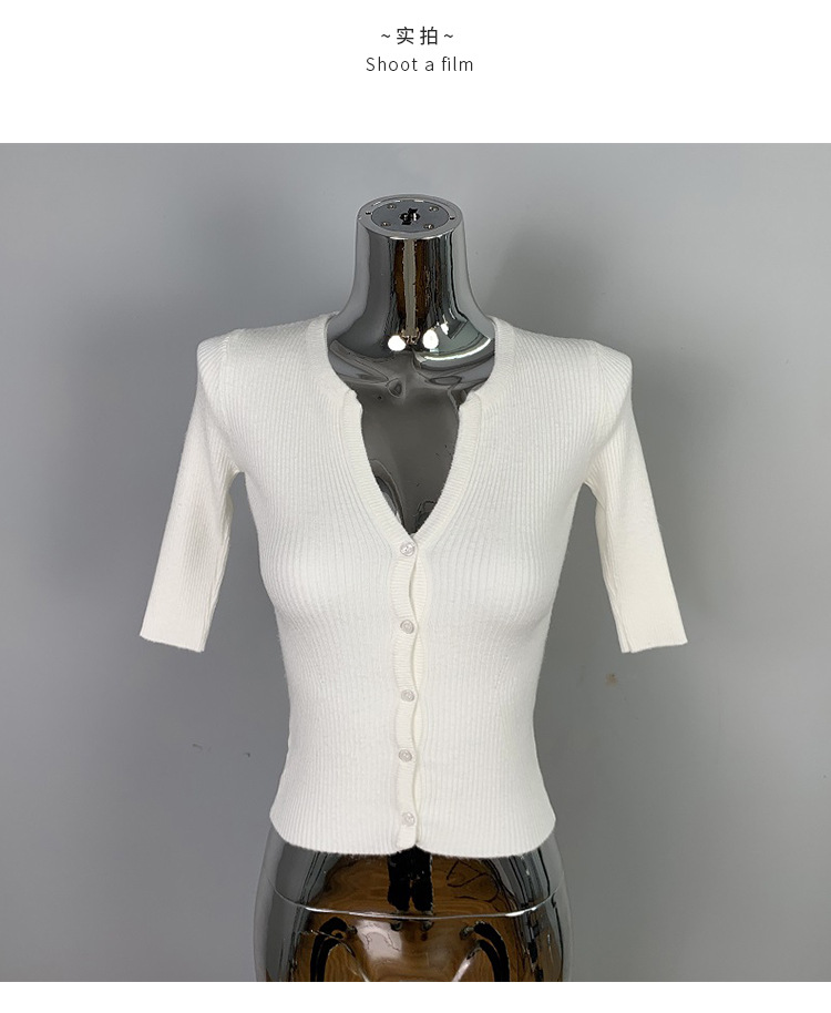 한국 동대문 슬림핏 슬리밍 섹시 페미닌 V넥 피겨 올 매치 하프 슬리브 니트 카디건 탑스토어 가기
