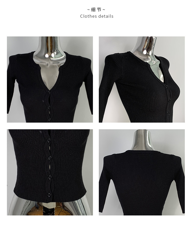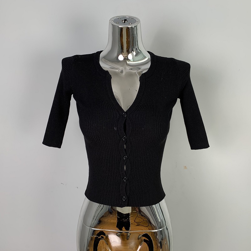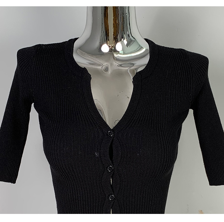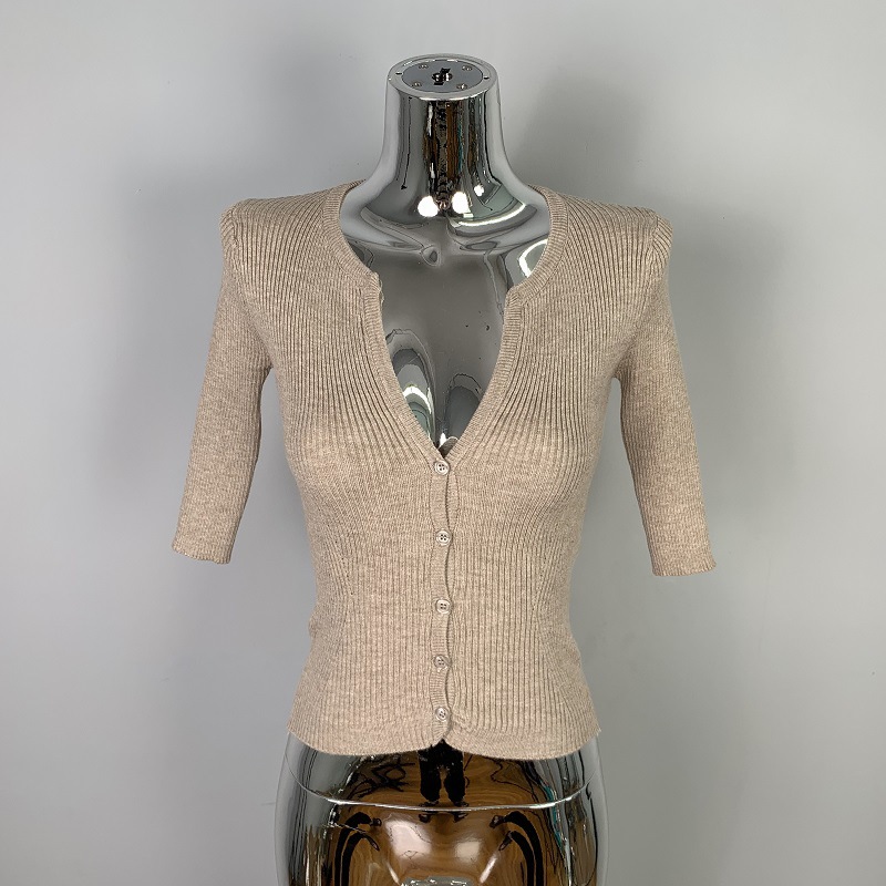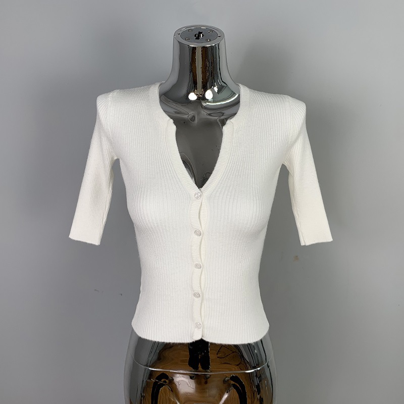 한국 동대문 슬림핏 슬리밍 섹시 페미닌 V넥 피겨 올 매치 하프 슬리브 니트 카디건 탑