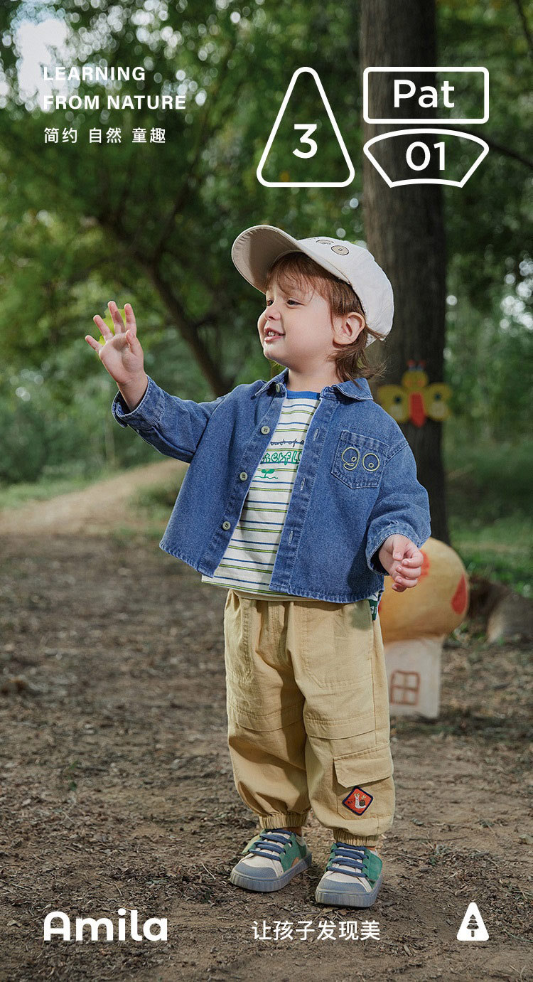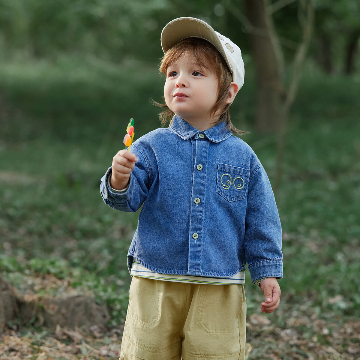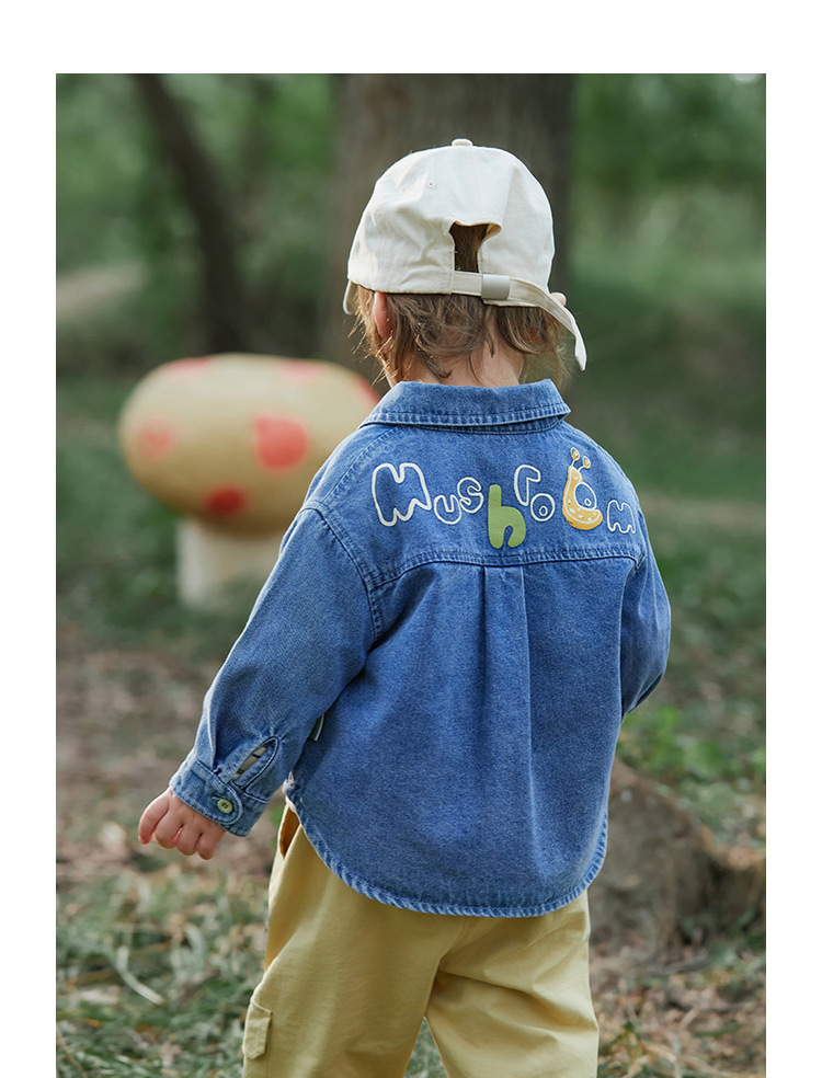 Tongbei 아동복 2025 가을 새 소년 편지 인쇄 세척 소프트 데님 셔츠 캐주얼 다목적 재킷