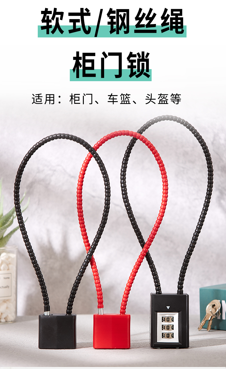 스틸 와이어 자물쇠 조합 잠금 전기 자동차 바구니 캐비닛 도어 키 작은 자물쇠 헬멧 잠금 부드러운 긴 로프 잠금 장치