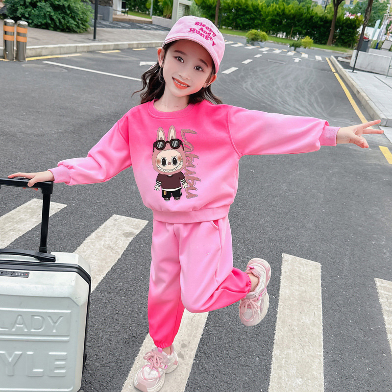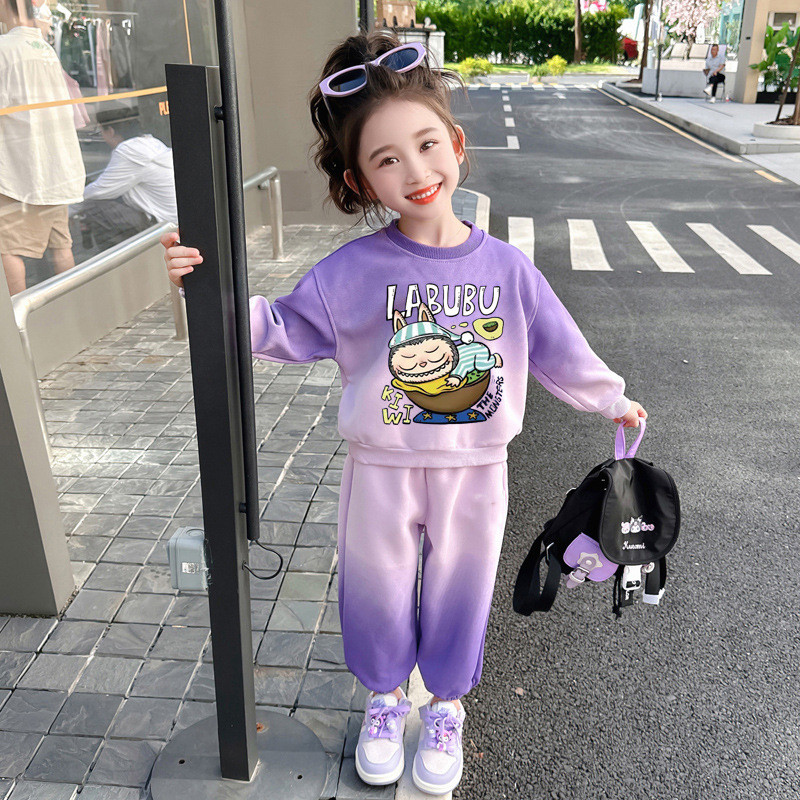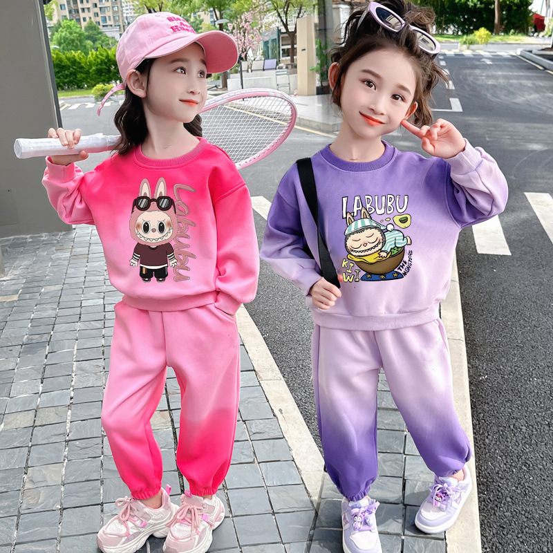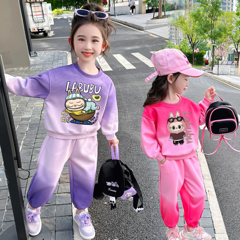 어린이 봄과 가을 새로운 아기 소녀 어린이 세트 두 조각 귀여운 만화 패션 트렌드 그라디언트 스포츠 조수스토어 가기