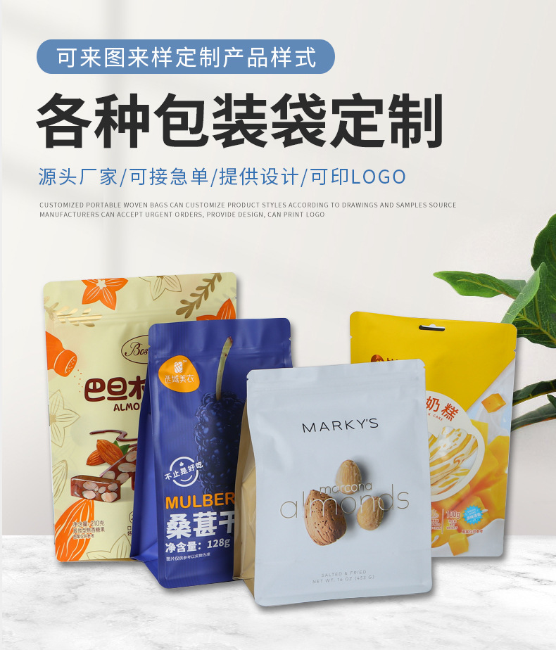 식품 포장 백, 맞춤형 로고, 8면 밀봉 비닐 백, 자립형 지퍼백, 맞춤형 플라스틱 식품 백, 밀봉 백스토어 가기