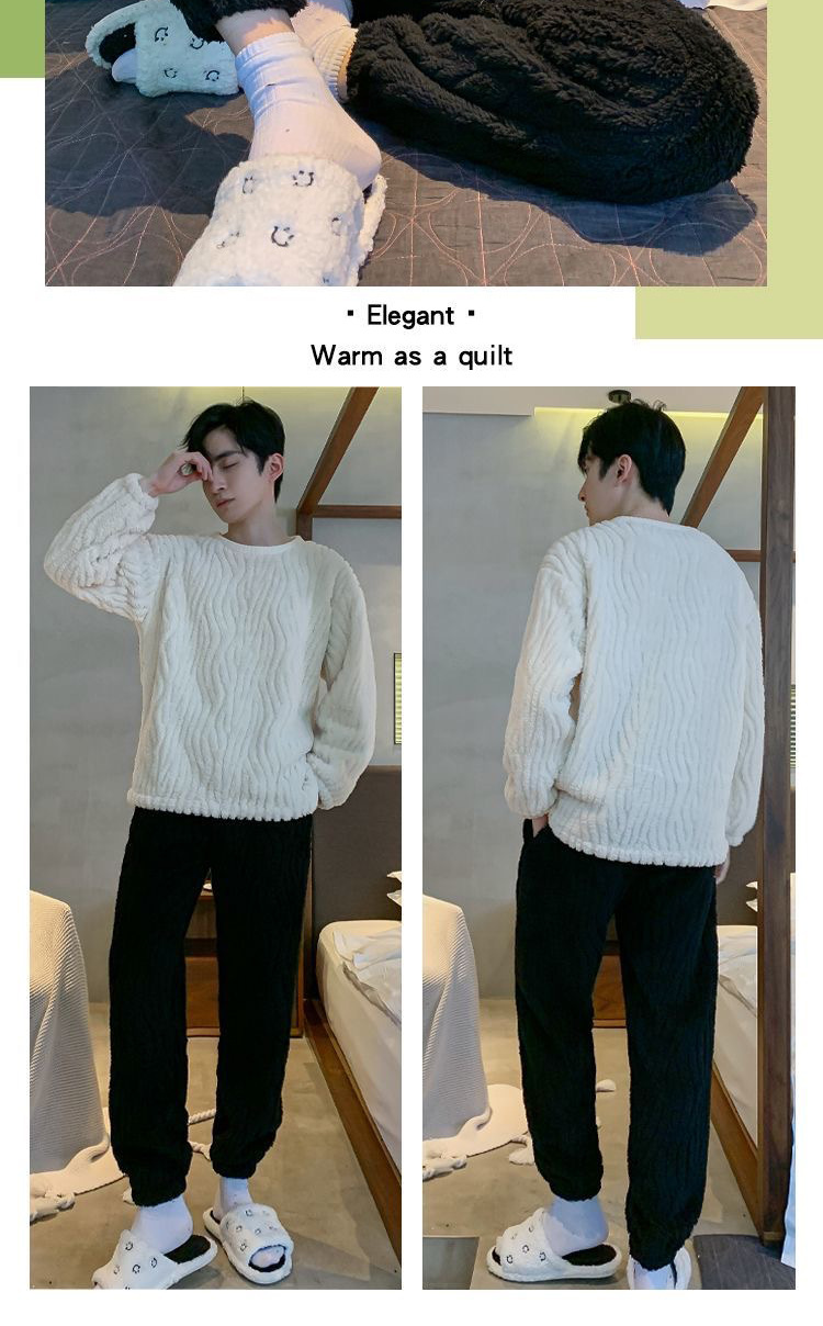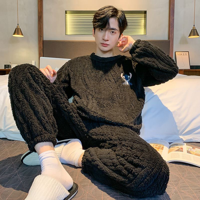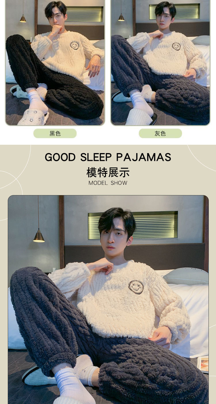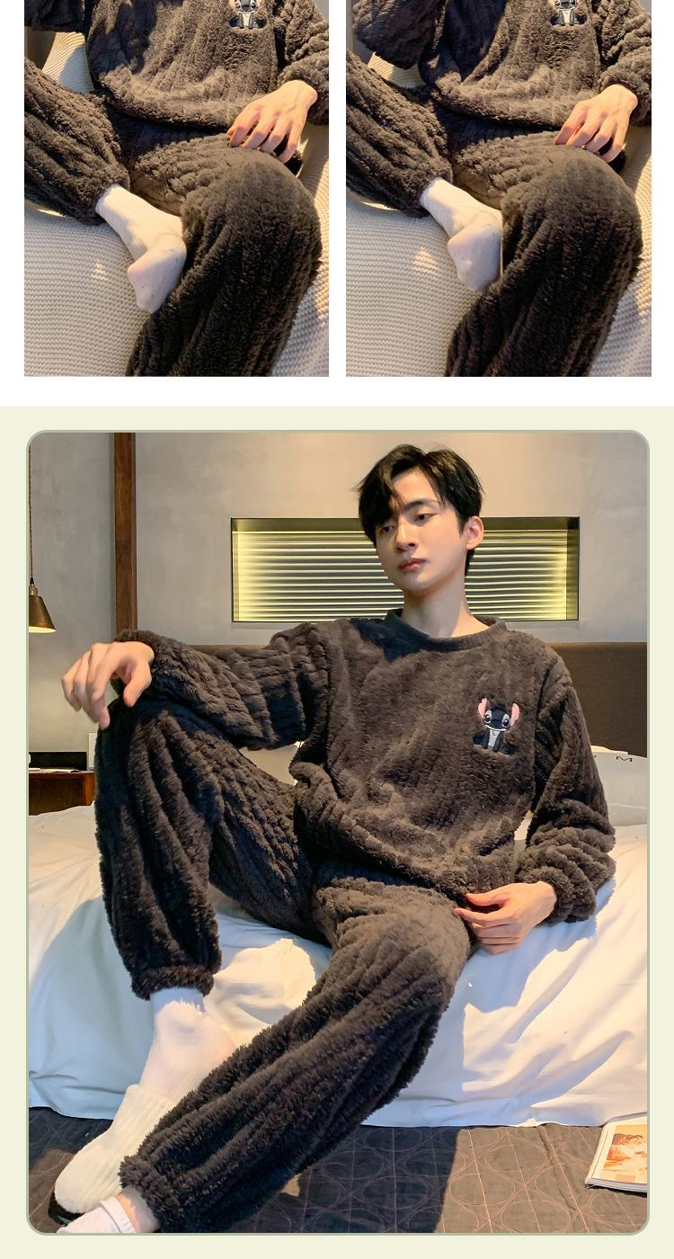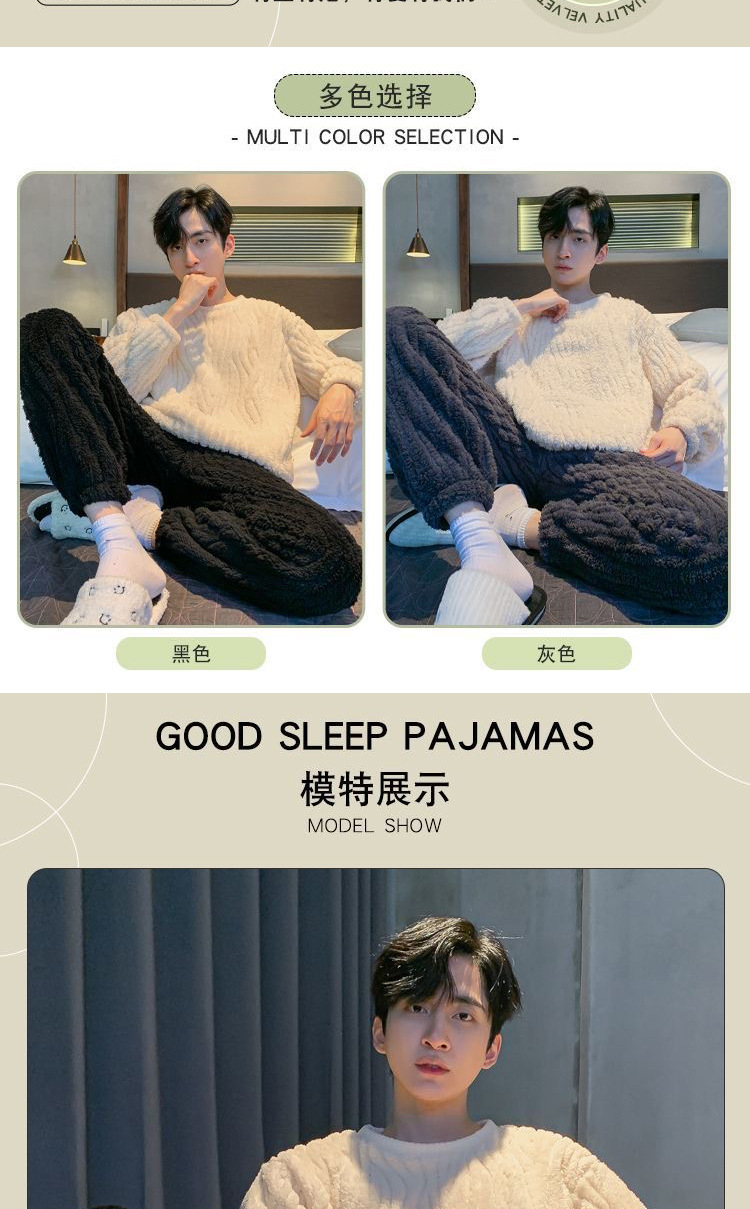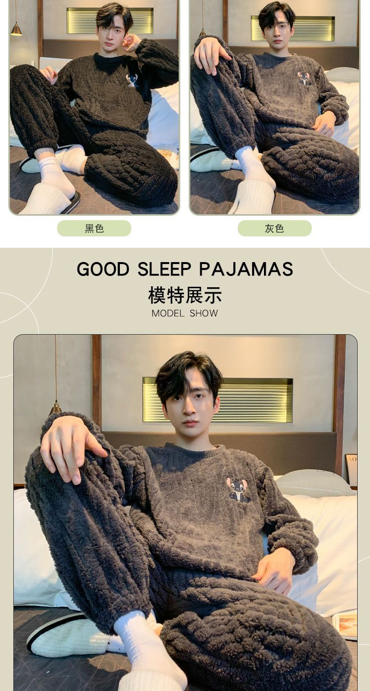 산호 양털 잠옷 남자의 가을과 겨울 기모 두꺼운 따뜻한 세트 플란넬 남자의 겨울 홈 옷