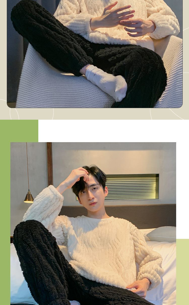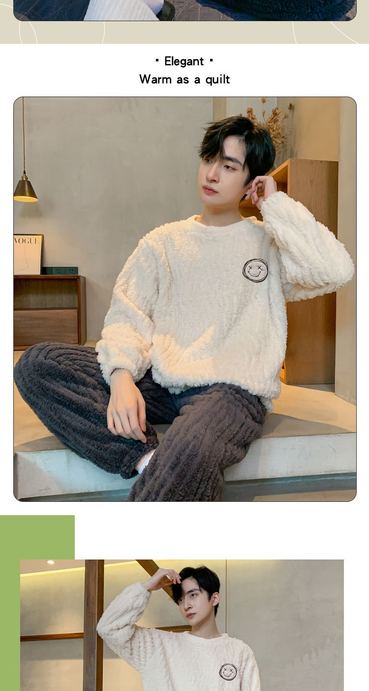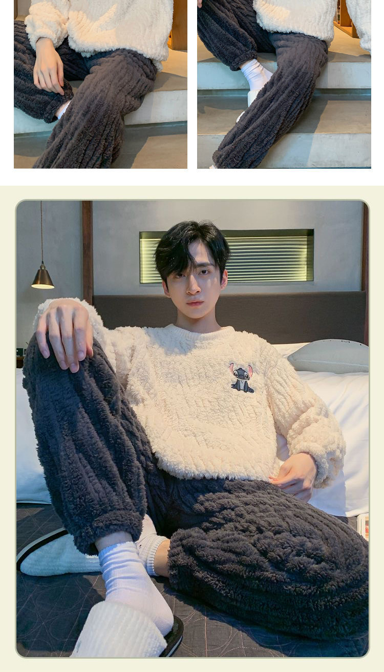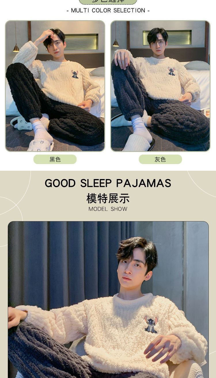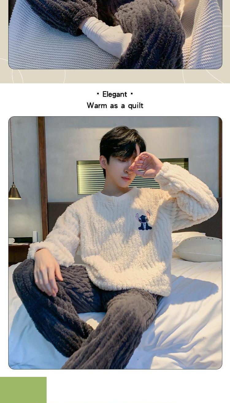 산호 양털 잠옷 남자의 가을과 겨울 기모 두꺼운 따뜻한 세트 플란넬 남자의 겨울 홈 옷