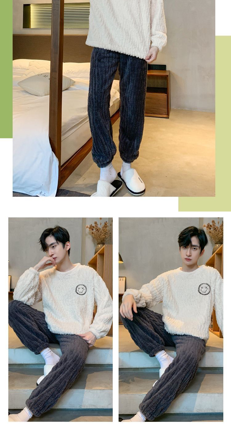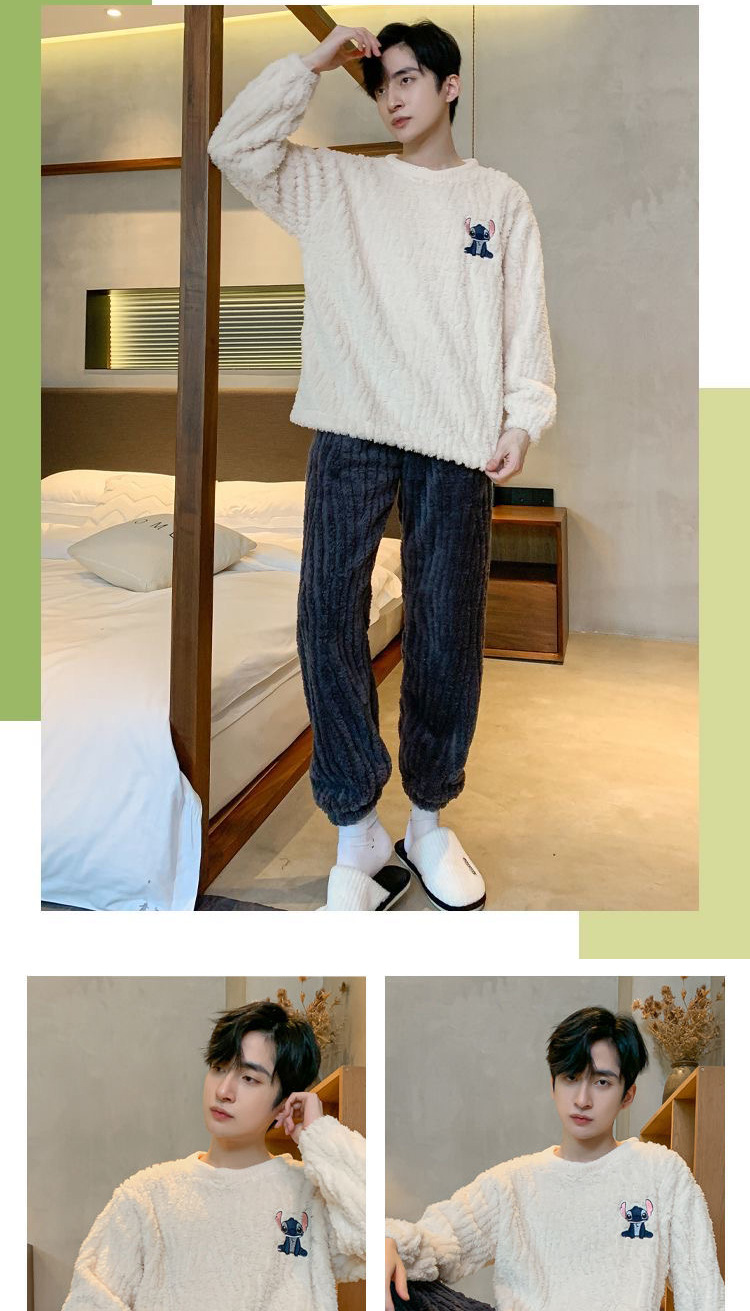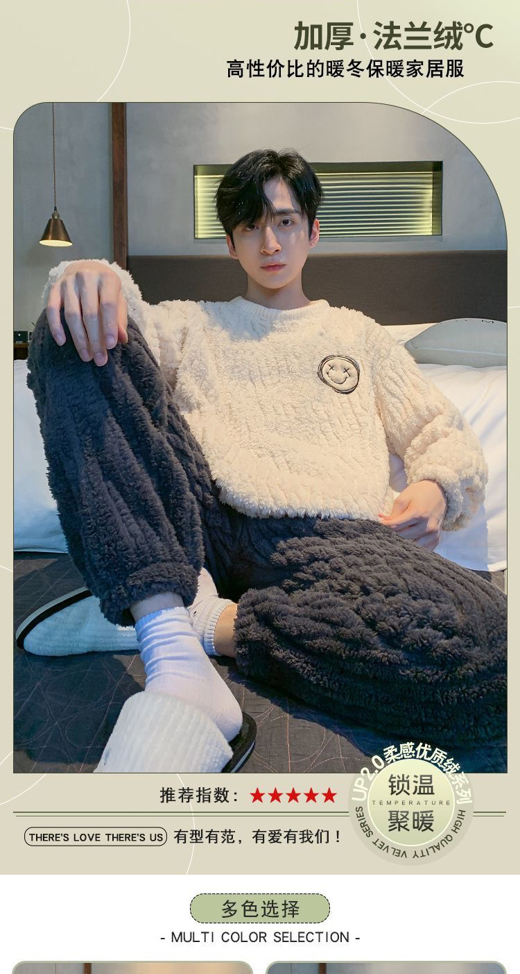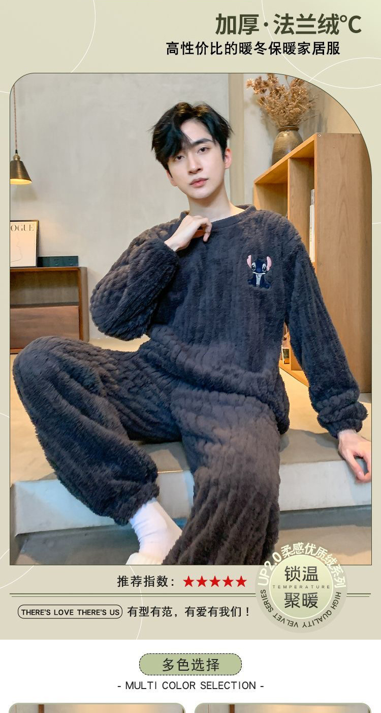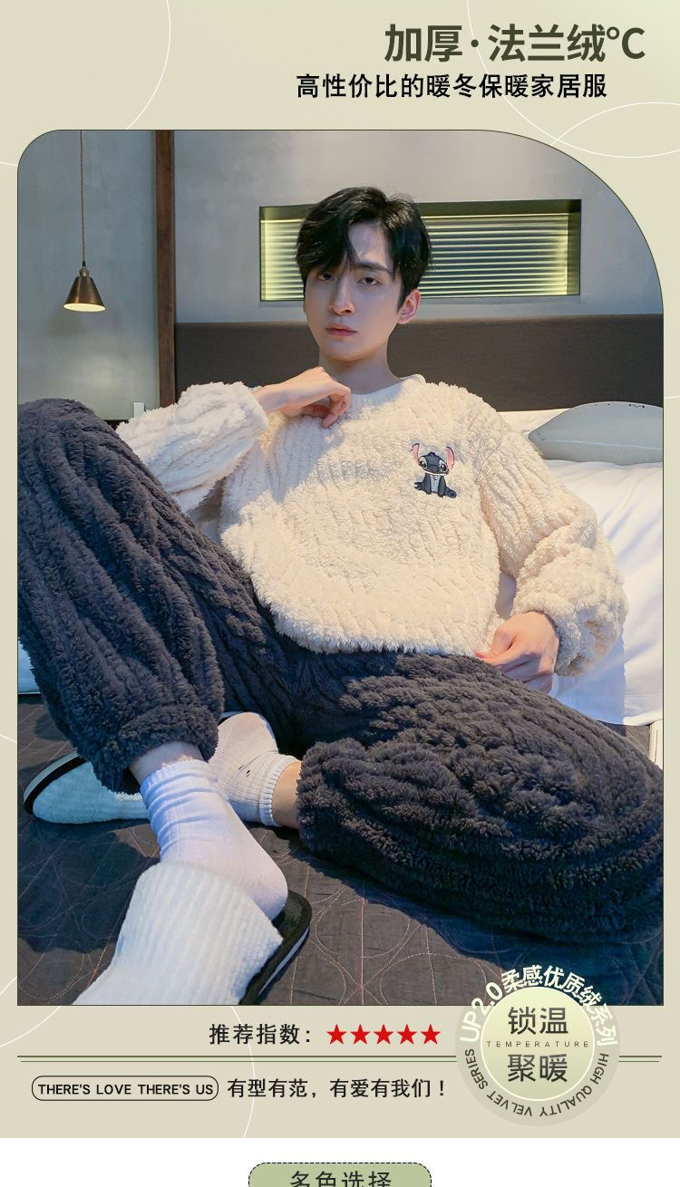산호 양털 잠옷 남자의 가을과 겨울 기모 두꺼운 따뜻한 세트 플란넬 남자의 겨울 홈 옷스토어 가기