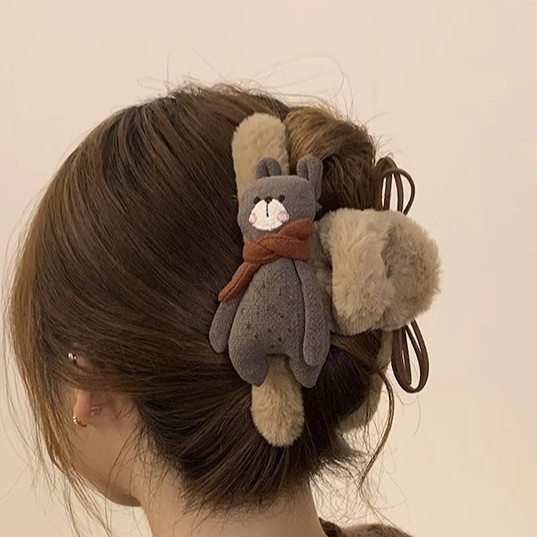 스카프 베어 봉제 클립 여성용 가을과 겨울 부드러운 복고풍 기질 고급 감각 헤어 멀티 사이즈 상어 클립 헤어 액세서리스토어 가기