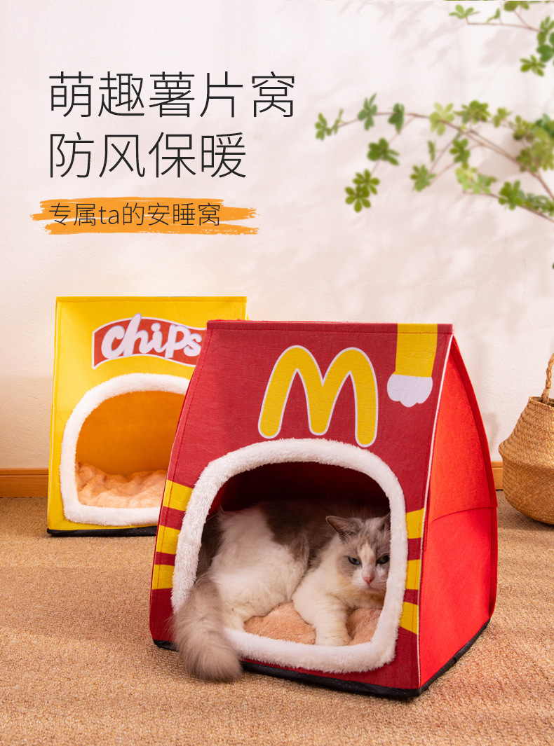 애완 고양이 집 겨울철 따뜻한 접이식 감자칩 모양 집 소형견용 반폐쇄형 애완동물 용품