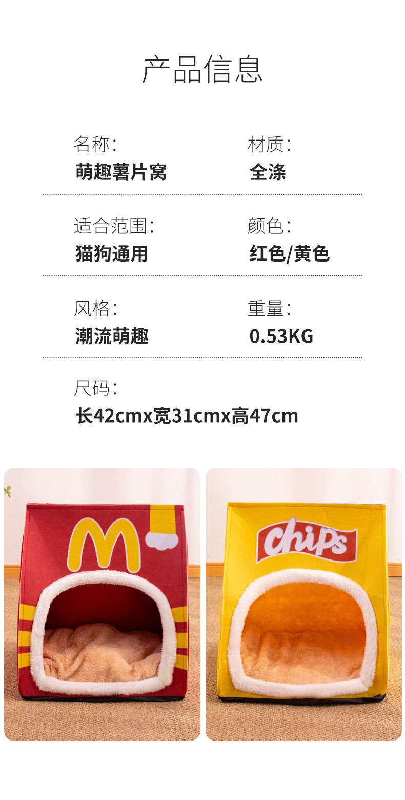 애완 고양이 집 겨울철 따뜻한 접이식 감자칩 모양 집 소형견용 반폐쇄형 애완동물 용품스토어 가기