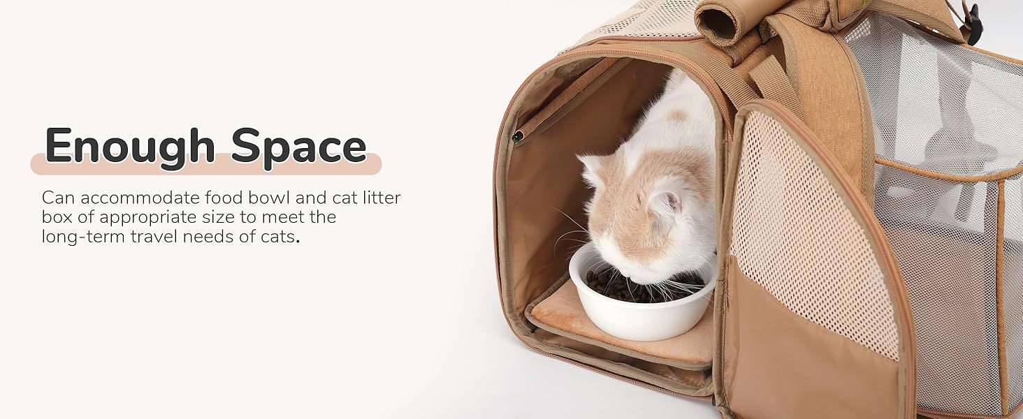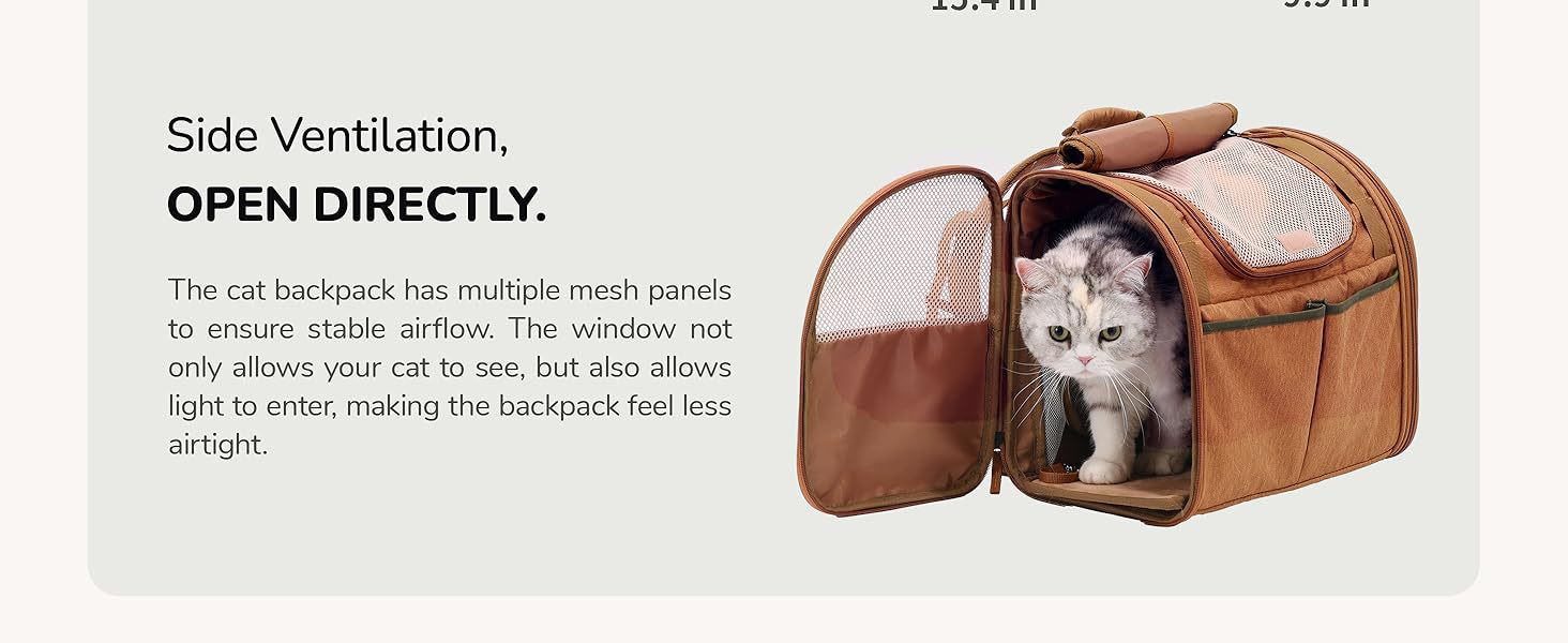 可扩展设计——背包的外部尺寸为15.4英寸x 12.5英寸x 9.3英寸,可扩展部分为11.6英寸x 9英寸x 9英寸,为宠物提供了更多的休息空间,并确保您的猫可以舒适地转身。