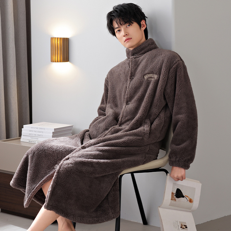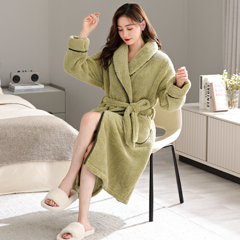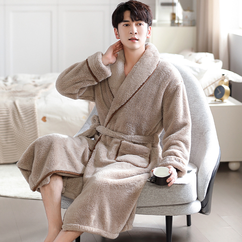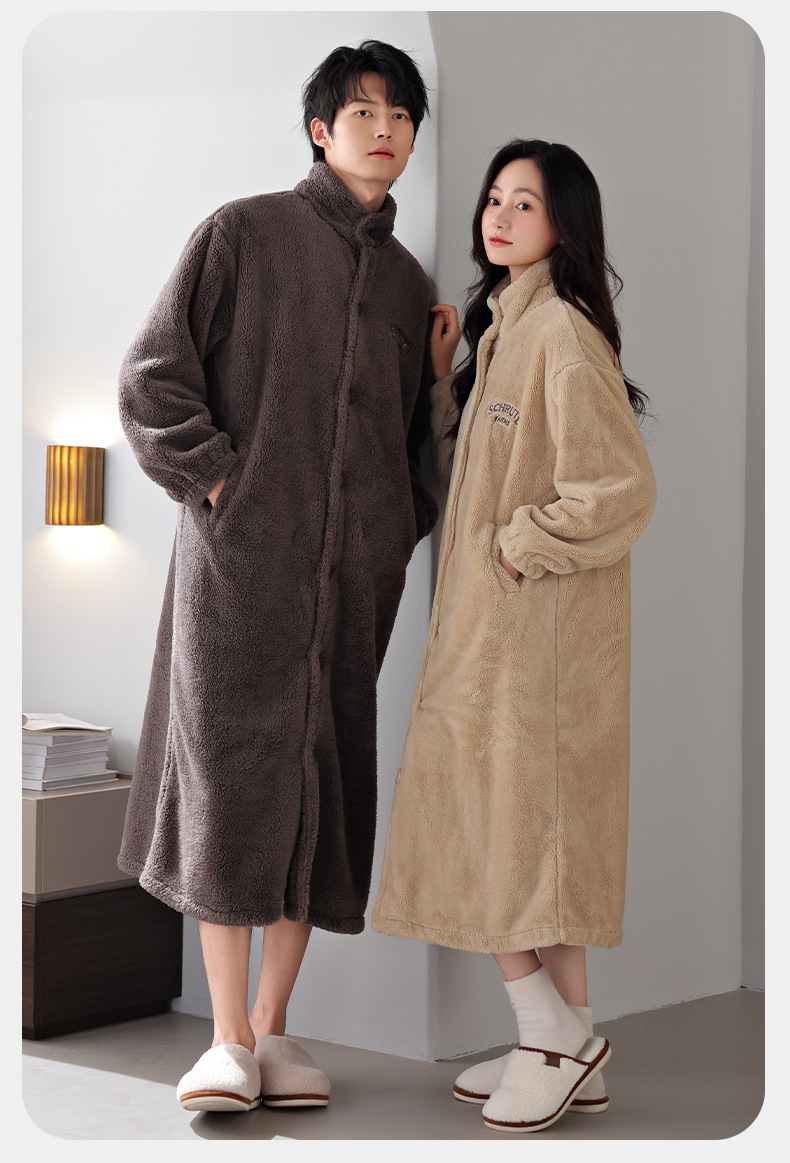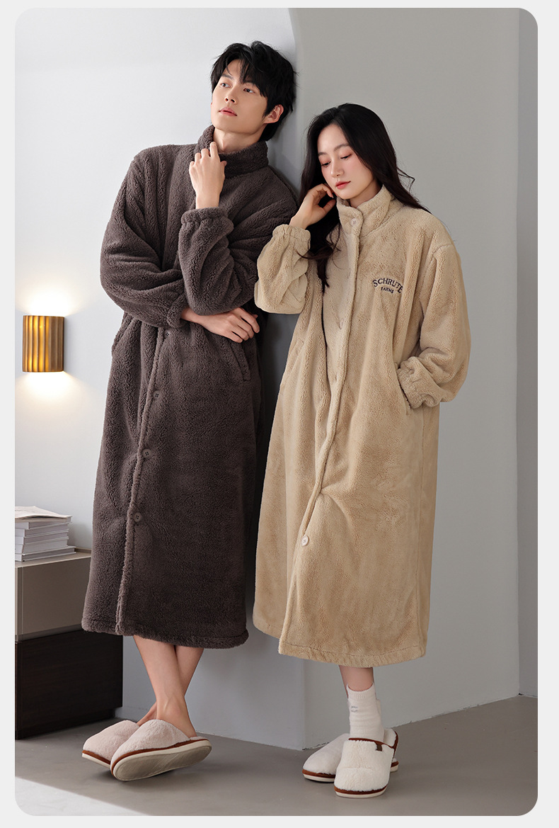 커플 잠옷 겨울 산호 양털 목욕 가운 기모 두꺼운 남자와 여자의 겨울 긴 잠옷 따뜻한 집 옷스토어 가기