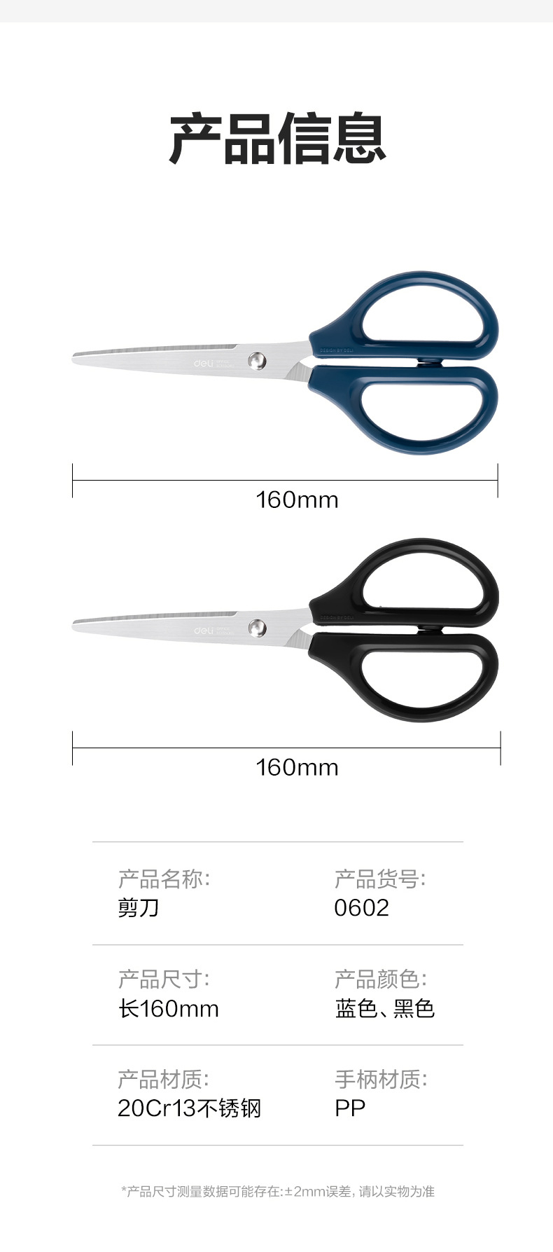 델리 0602 사무실 문구 가위 홈 오피스 고정 방지 수제 가위 블랙 스테인레스 스틸 종이 커터스토어 가기