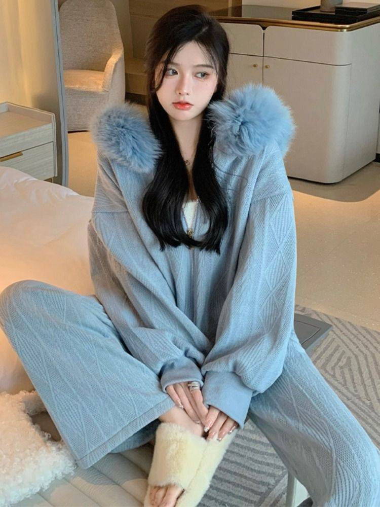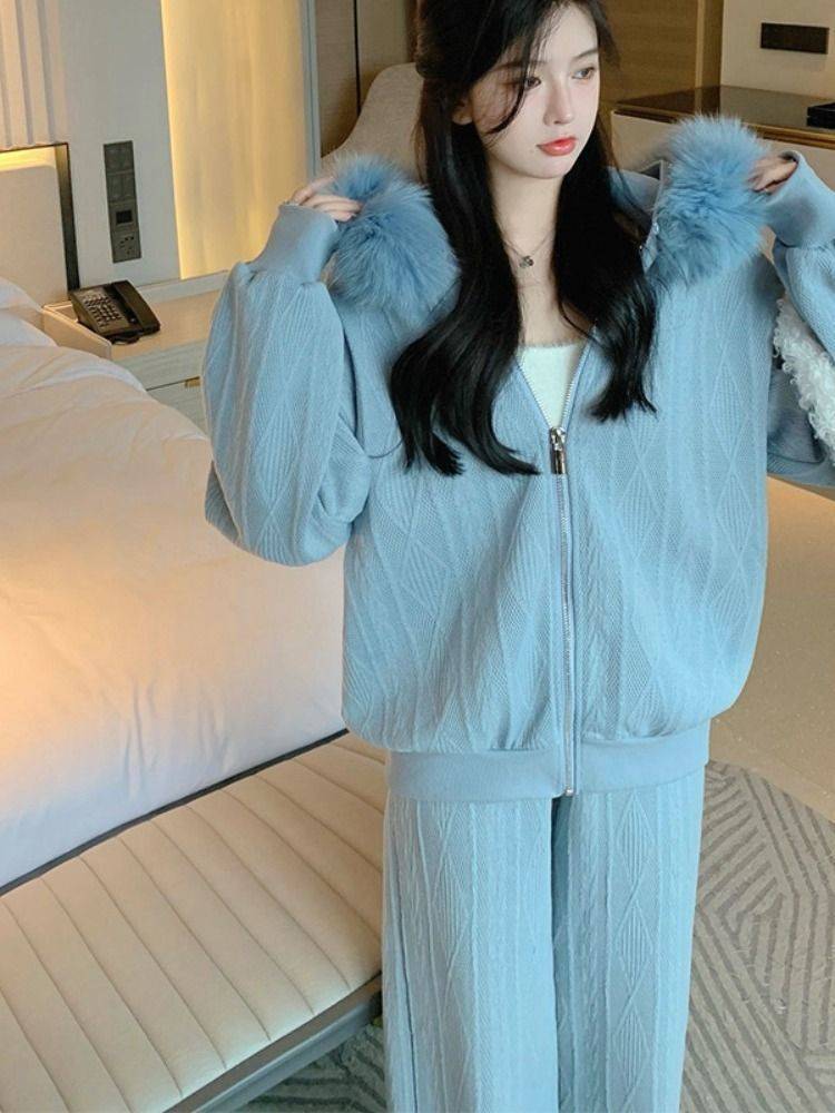 작은 향기로운 스타일 폭발 디자인 센스 새로운 여성 세트 패션 서양식 인터넷 인기있는 작은 후드 땀 투피스 유행 세트스토어 가기