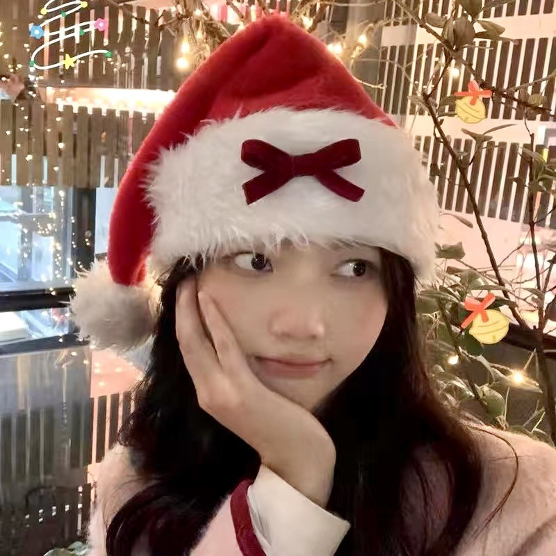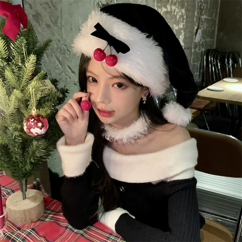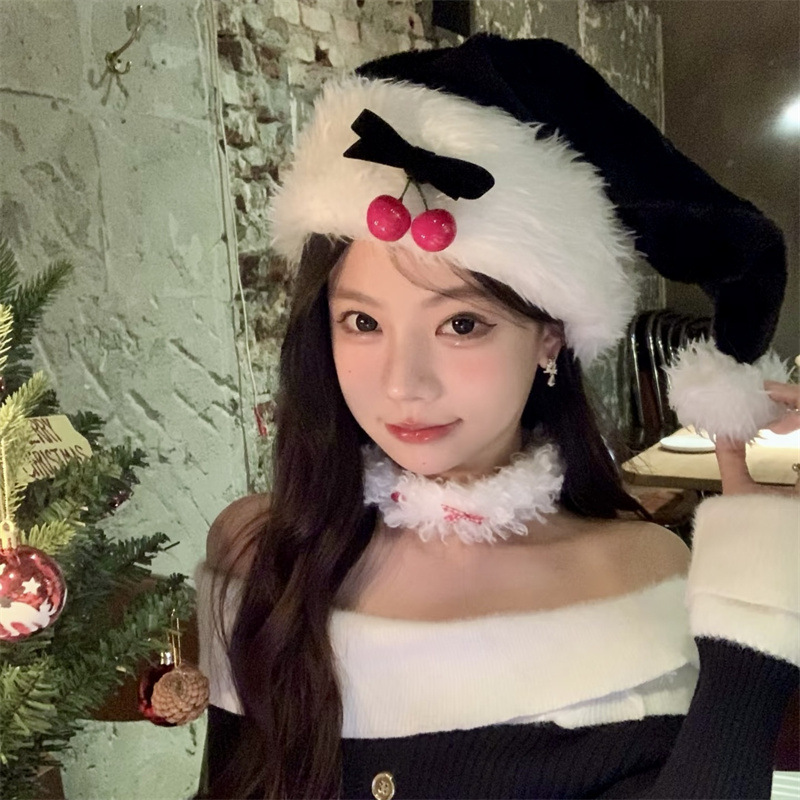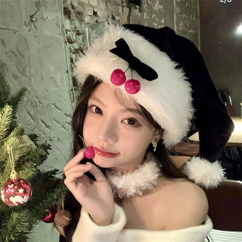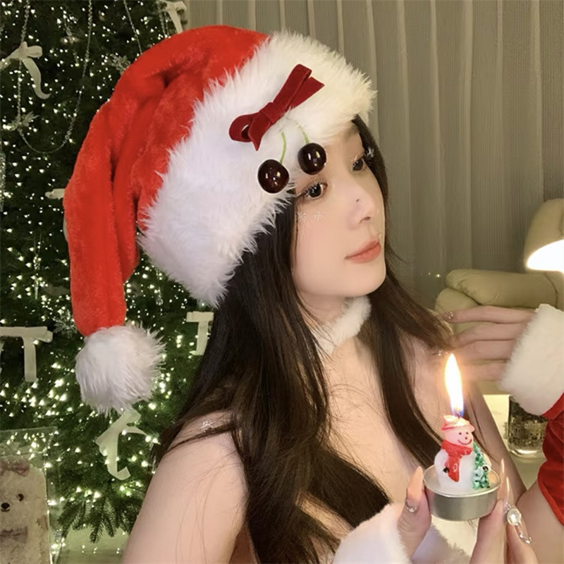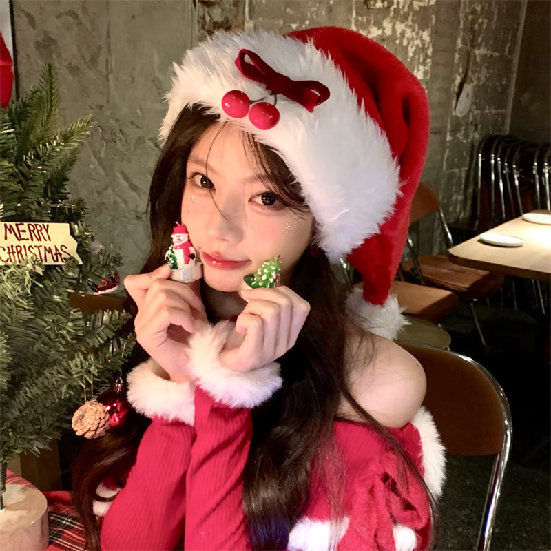 2024 체리 크리스마스 모자 장식 활 크리스마스 선물 레드 롱 벨벳 인터넷 연예인 크리스마스 선물 준비스토어 가기