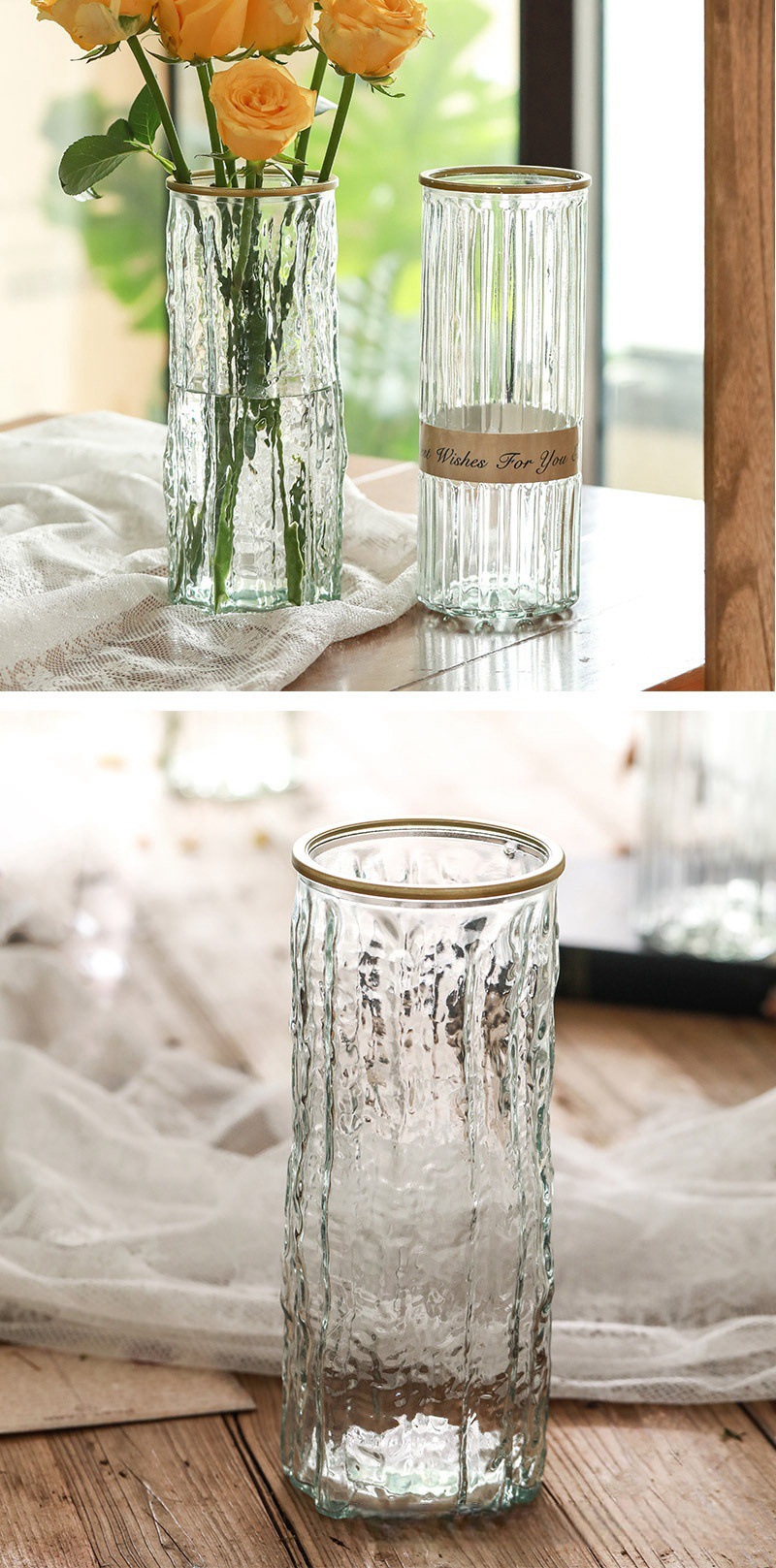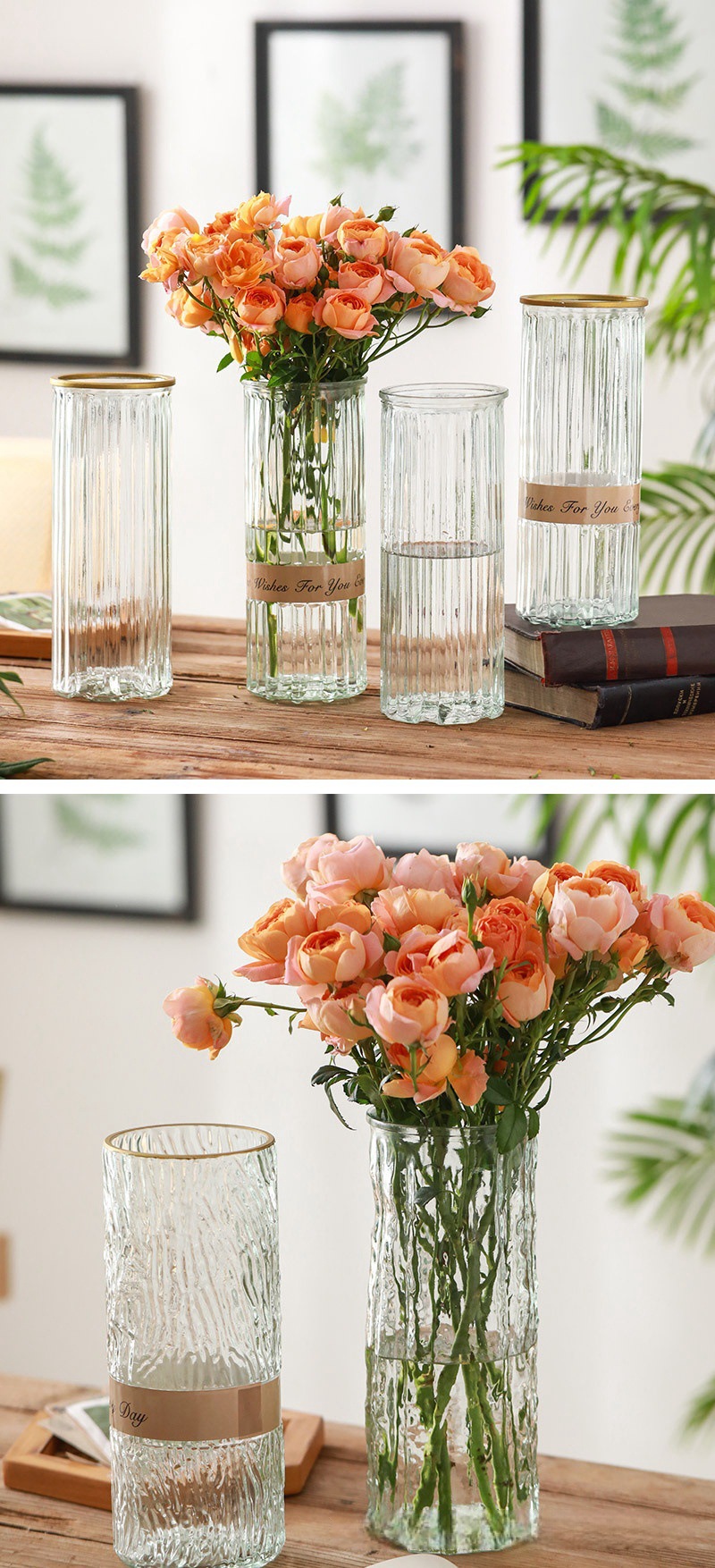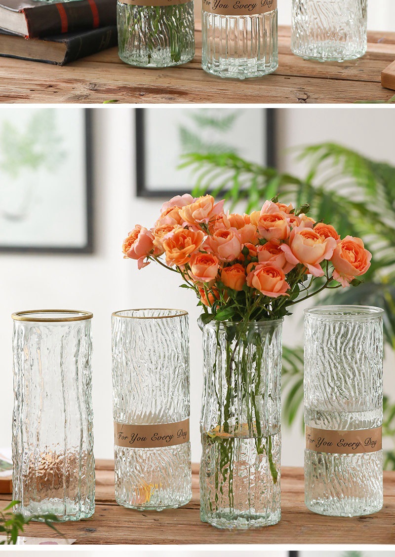 투명 유리 꽃병 창조적 인 구호 빙하 패턴 거실 식탁 장식품 물 제기 꽃 시뮬레이션 꽃 꽃스토어 가기