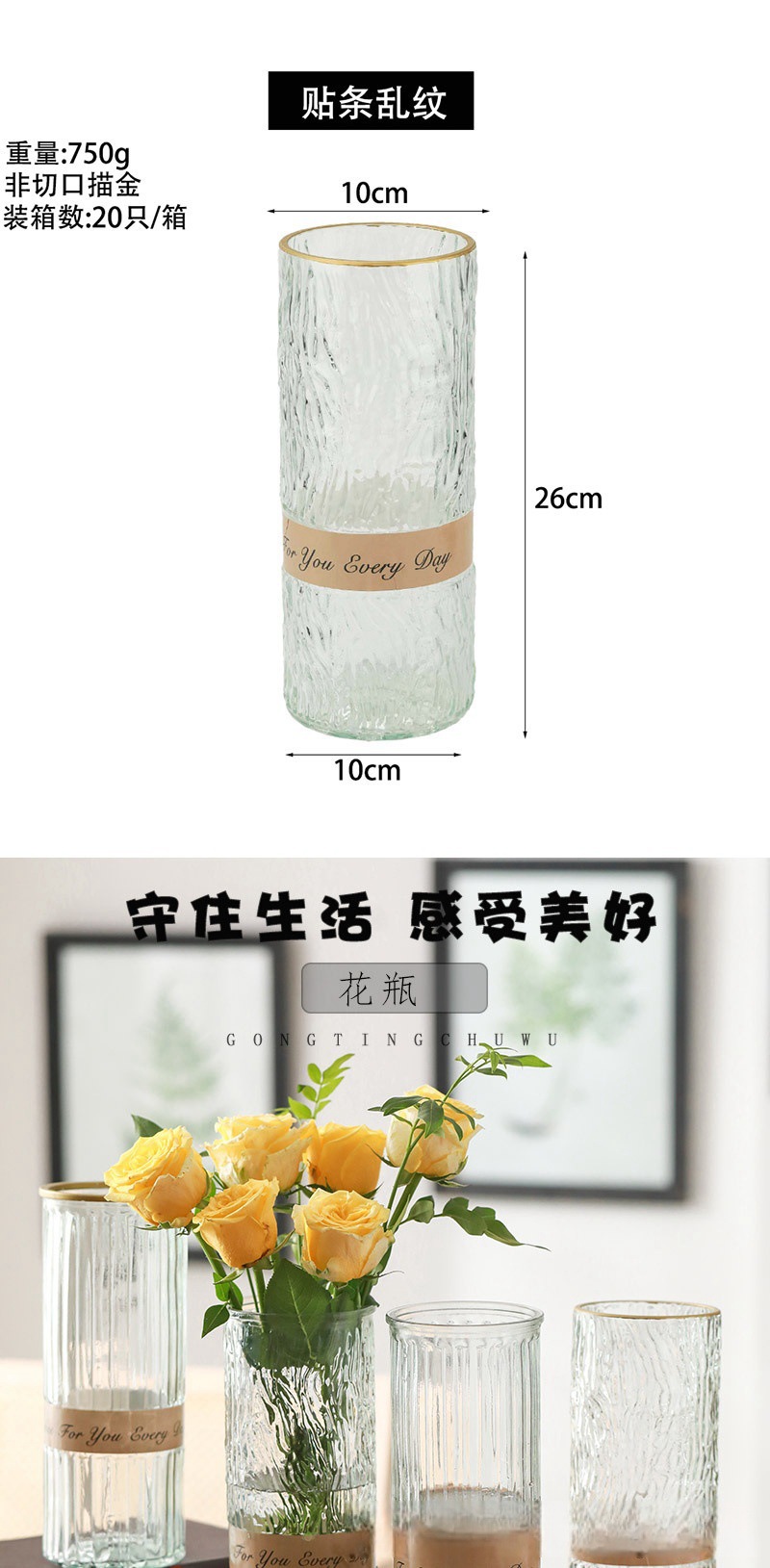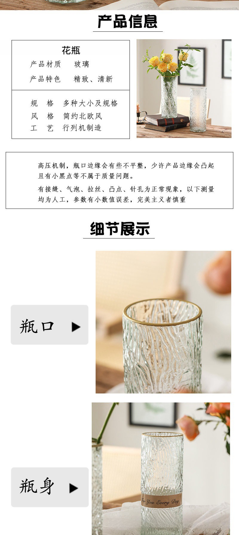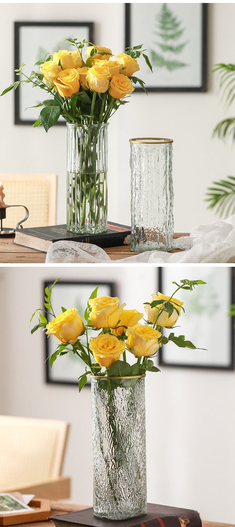 투명 유리 꽃병 창조적 인 구호 빙하 패턴 거실 식탁 장식품 물 제기 꽃 시뮬레이션 꽃 꽃스토어 가기