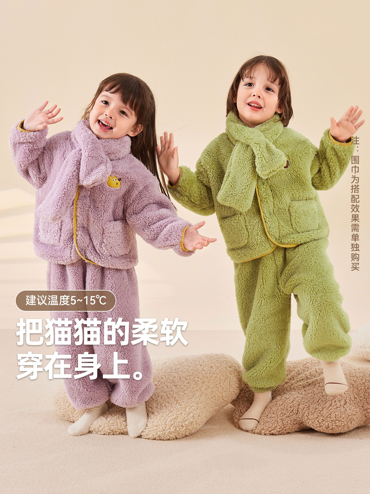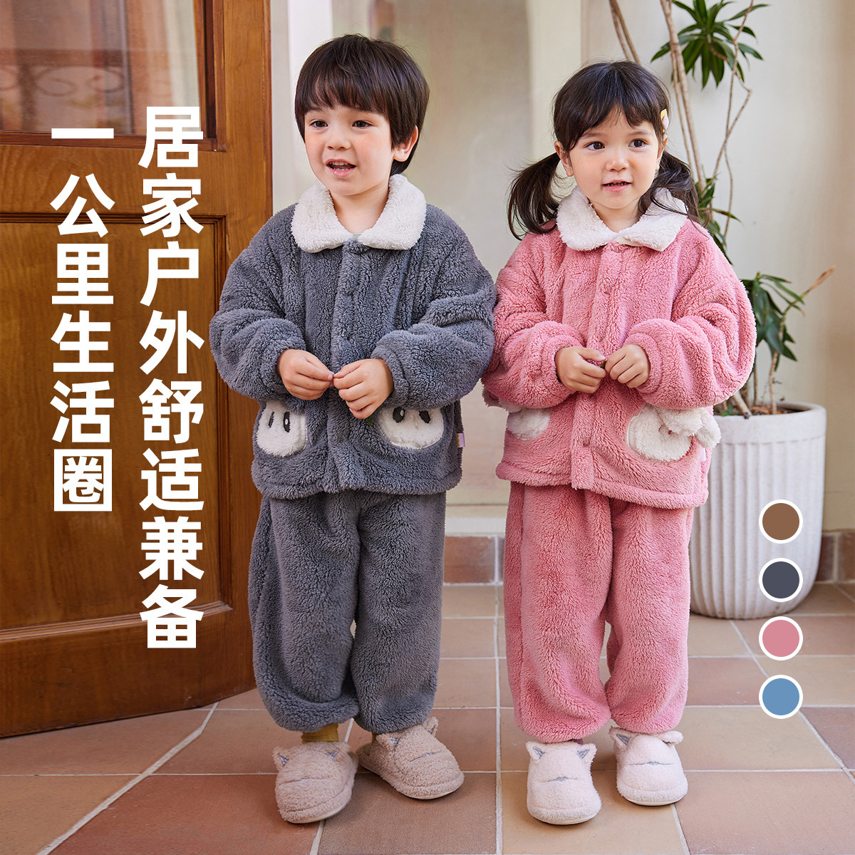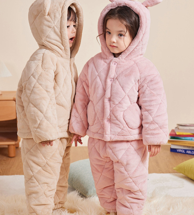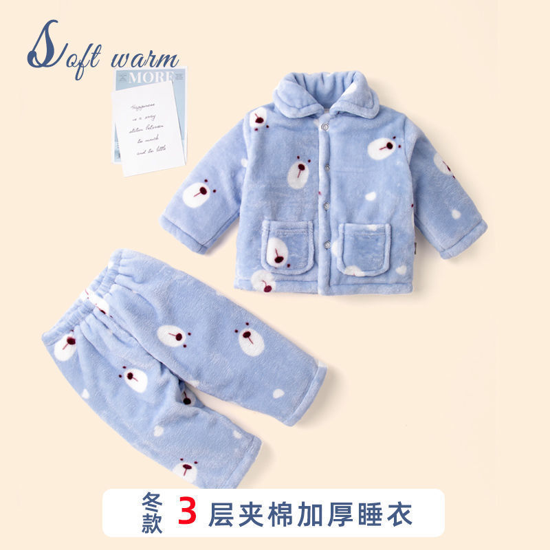 [두꺼운 홈 의류 컬렉션 2] 낙서 소년 두꺼운 파자마 겨울 여자 홈 옷 투피스 아동복